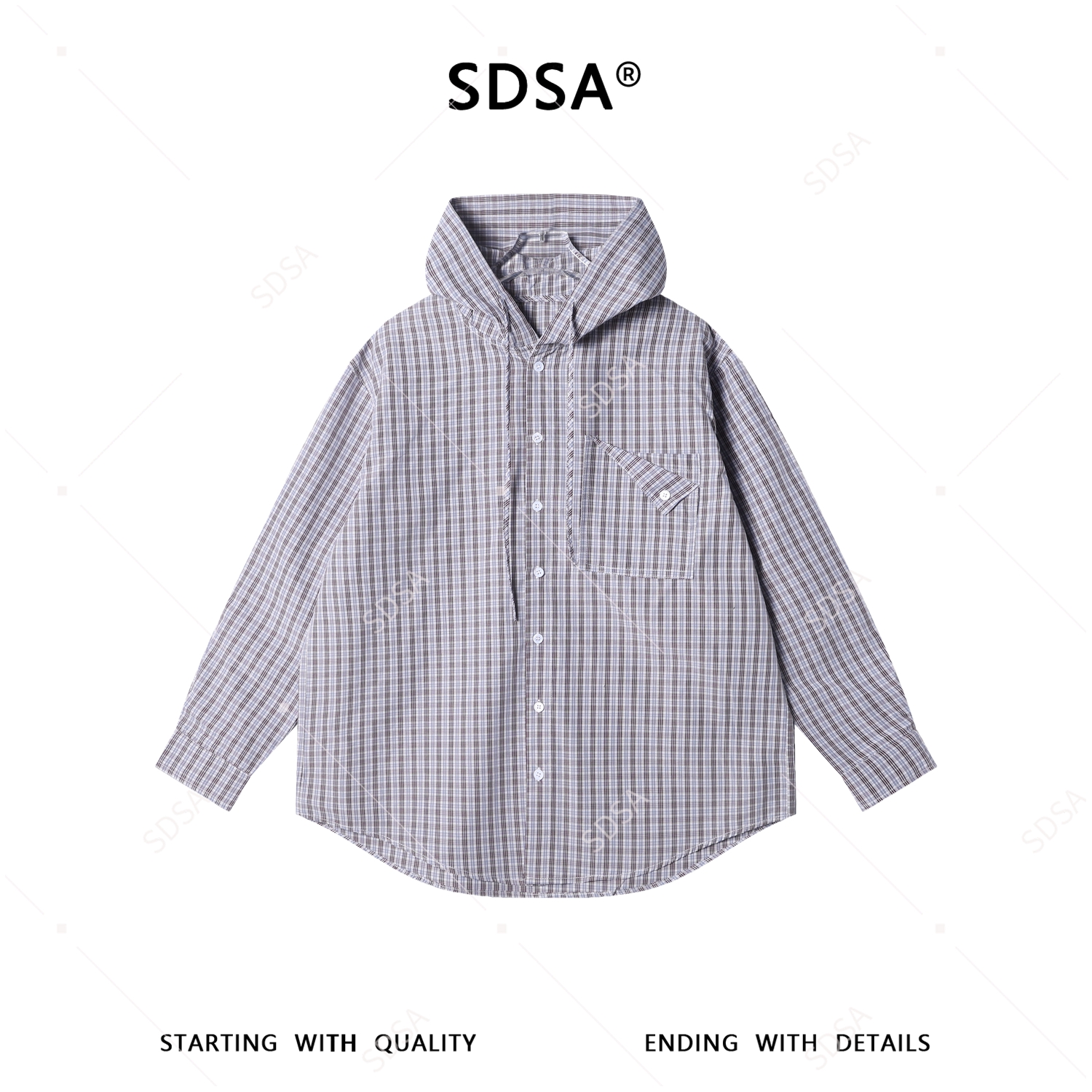 B8031SDSA男士秋冬新款痞帅男装美式复古格子连帽长袖衬衫百搭开衫衬衣