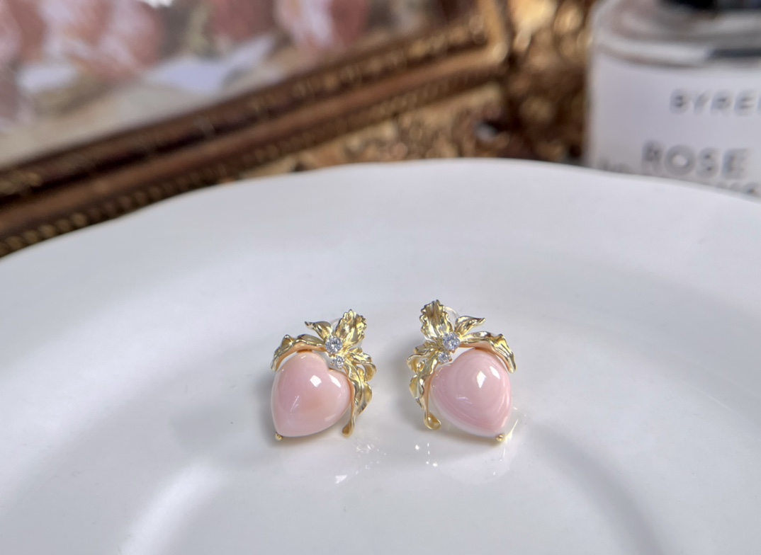 7DAYS粉黛系列蜜桃海螺贝珠耳钉项链套装