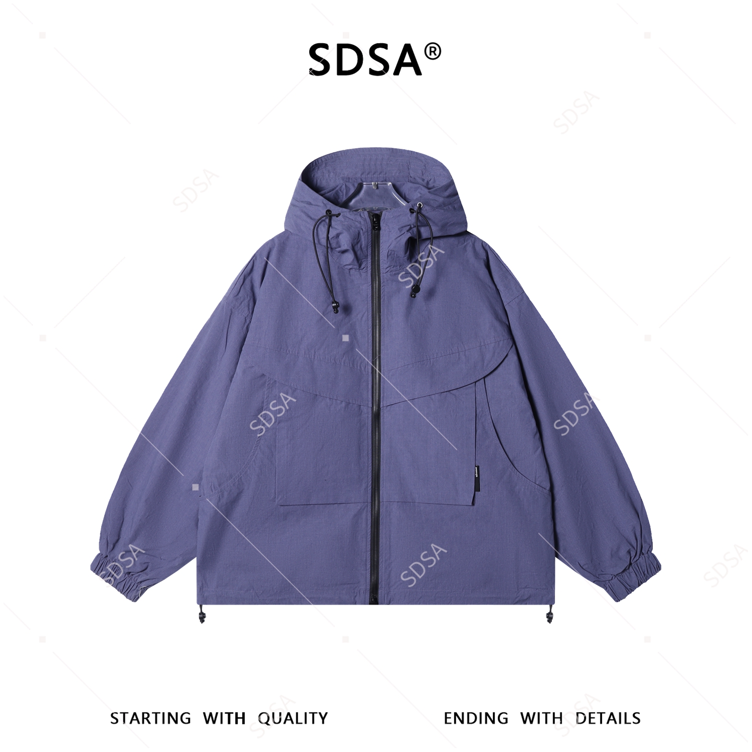 W0520SDSA春夏新款痞帅男装潮牌拼接设计拉链立领连帽夹克外套百搭工装
