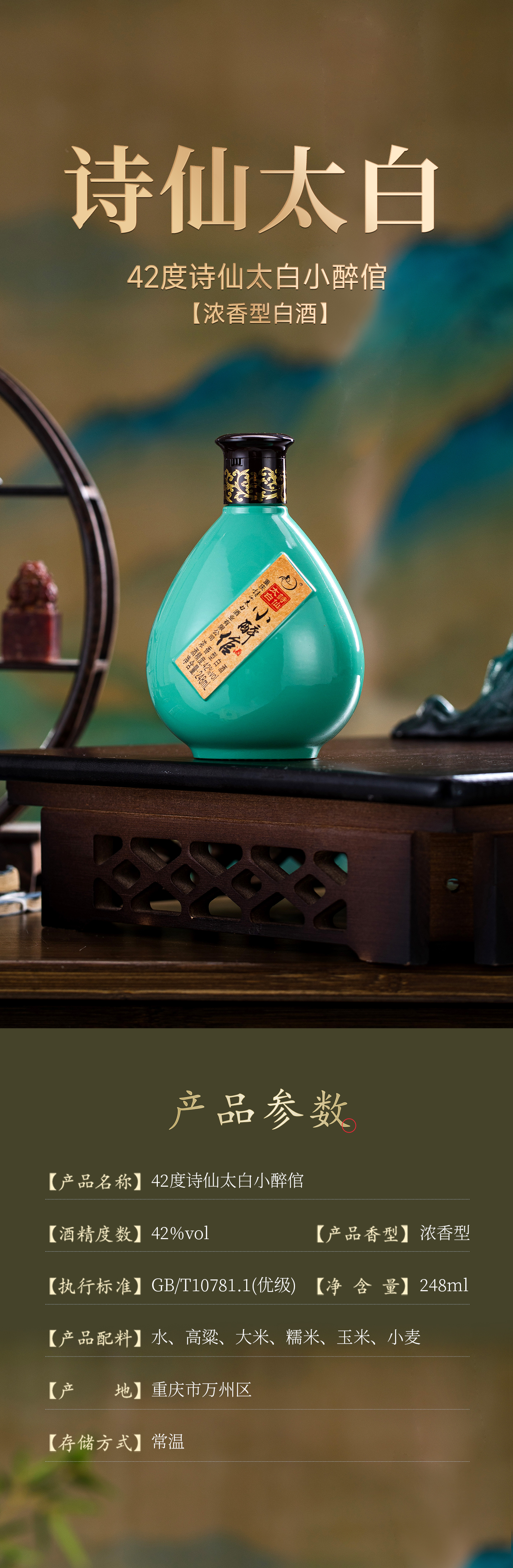 42度诗仙太白小醉倌248ml*18瓶
