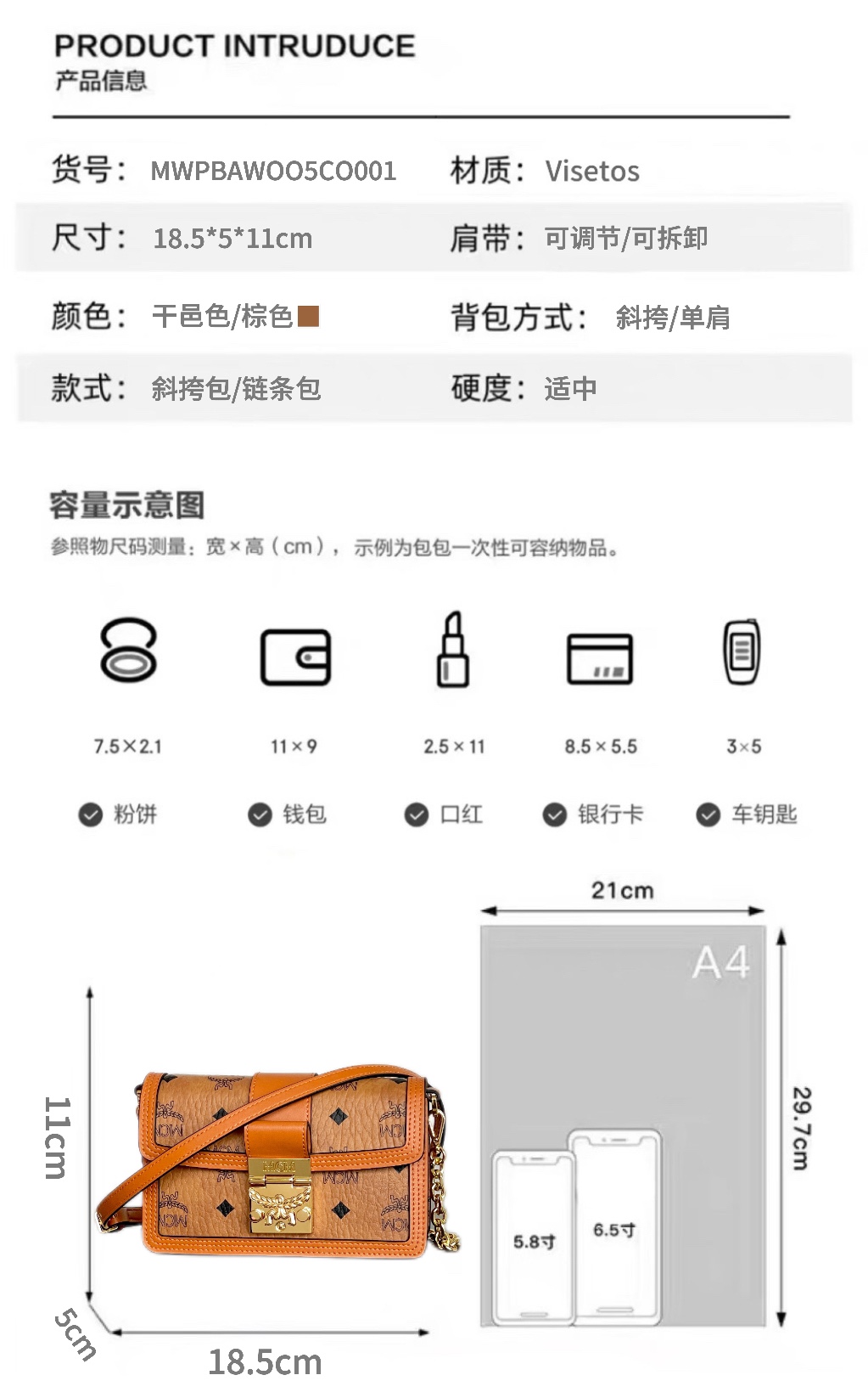 这款Tracy斜挎包采用Visetos制成,并以Vachetta皮革勾勒轮廓,质朴的内部设计有卡槽及一个用于存放贵重物品的拉链口袋。您可搭配随附的轻质皮革链条混搭肩带,实现免提功能。