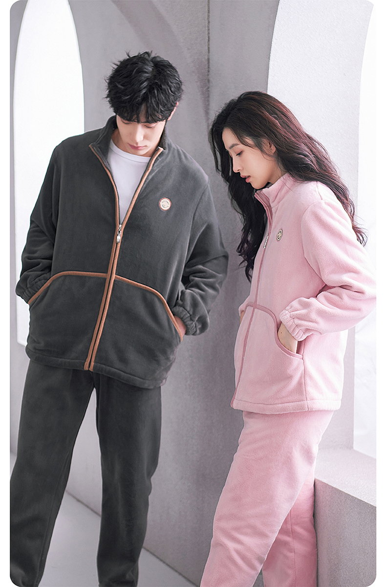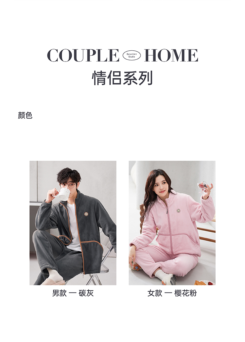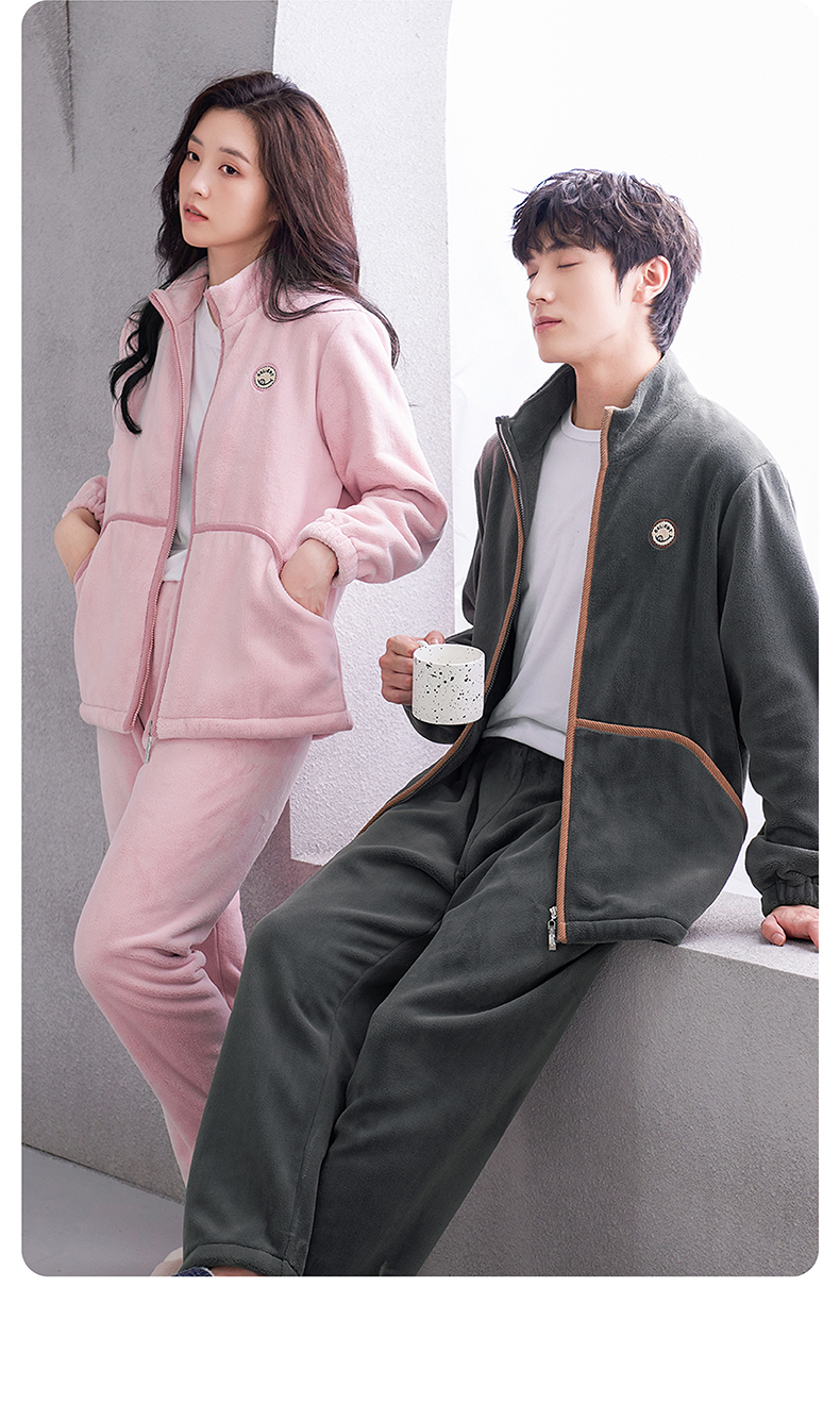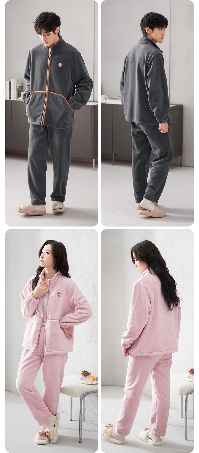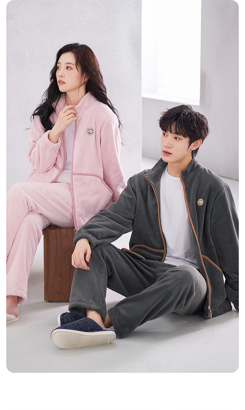 芬腾秋冬季情侣睡衣珊瑚绒加绒加厚女睡衣双面绒柔暖舒适家居服男