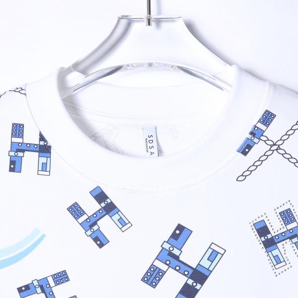 T4018夏季高级感新款男士韩系满印字母烫钻设计短袖T恤休闲简约上衣潮