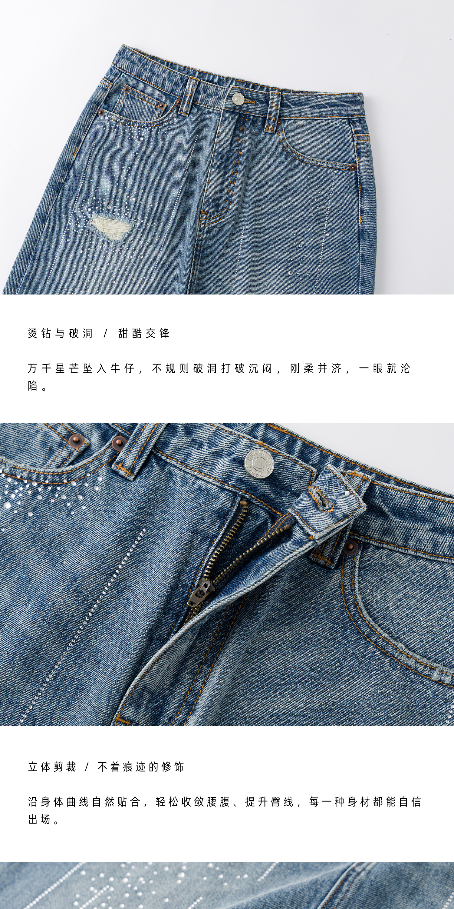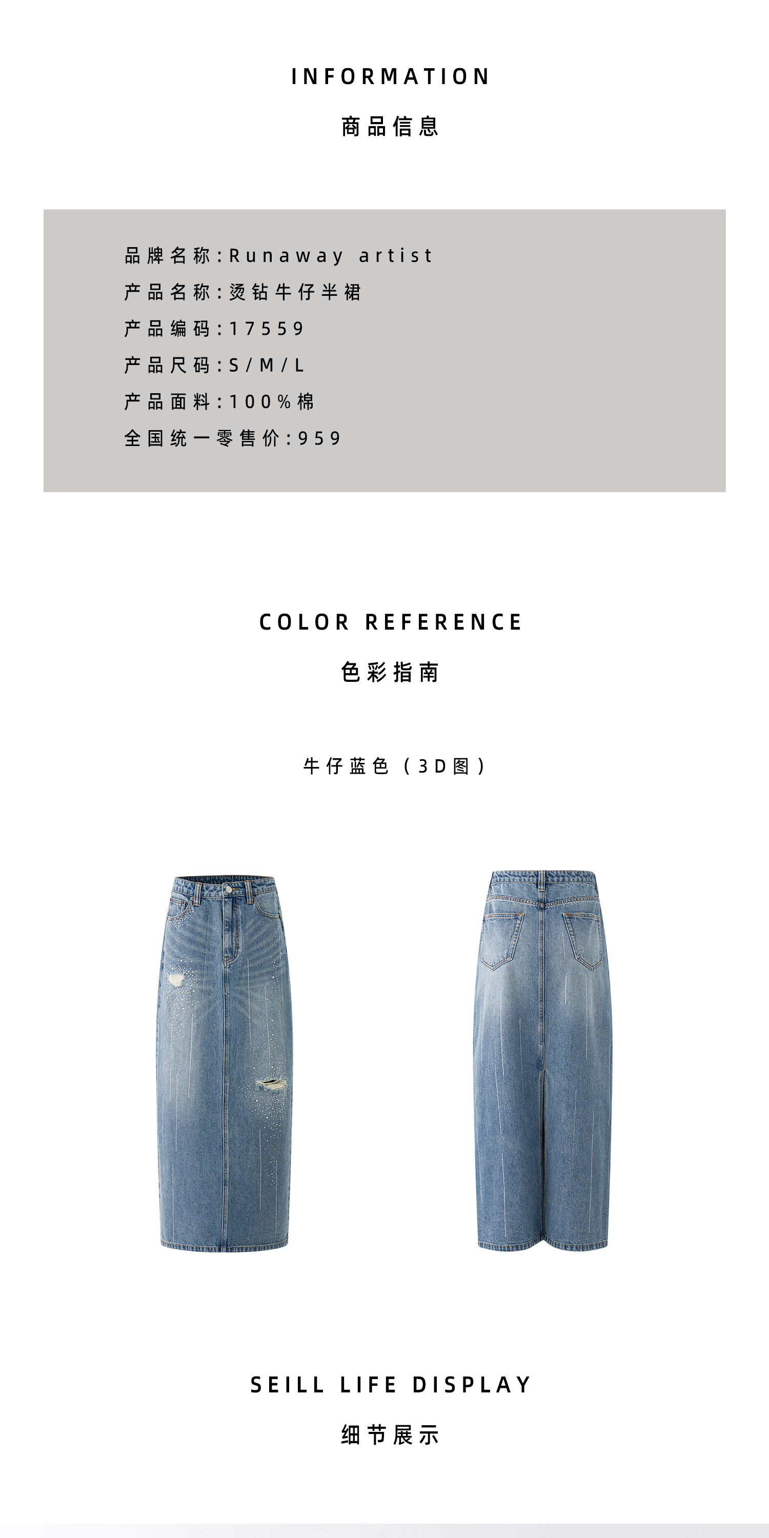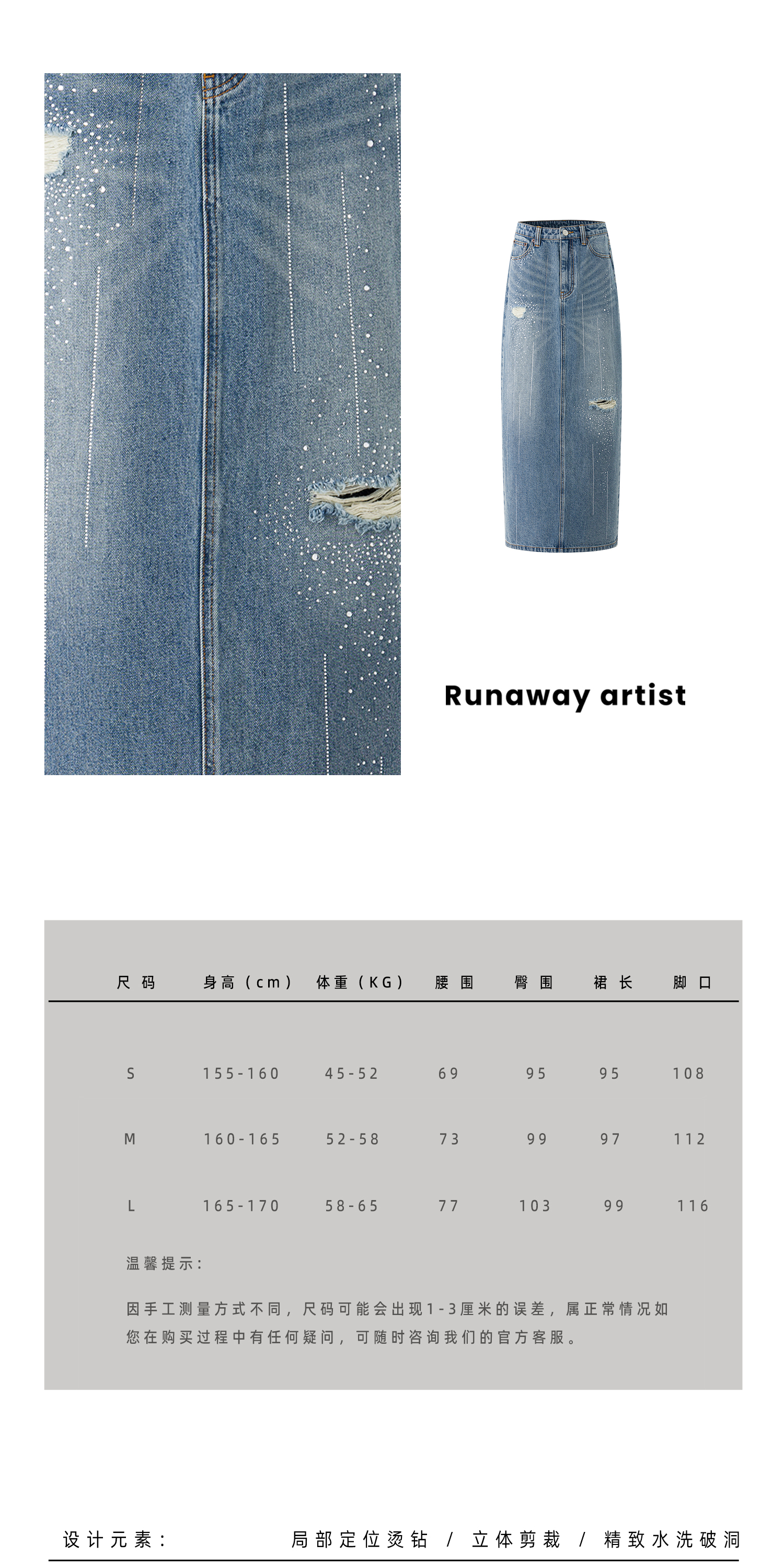 Runaway artist 原创设计重工系列-26春季新品烫钻牛仔半裙