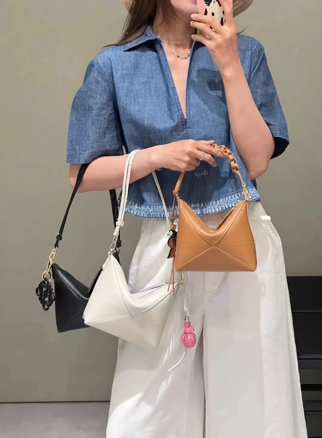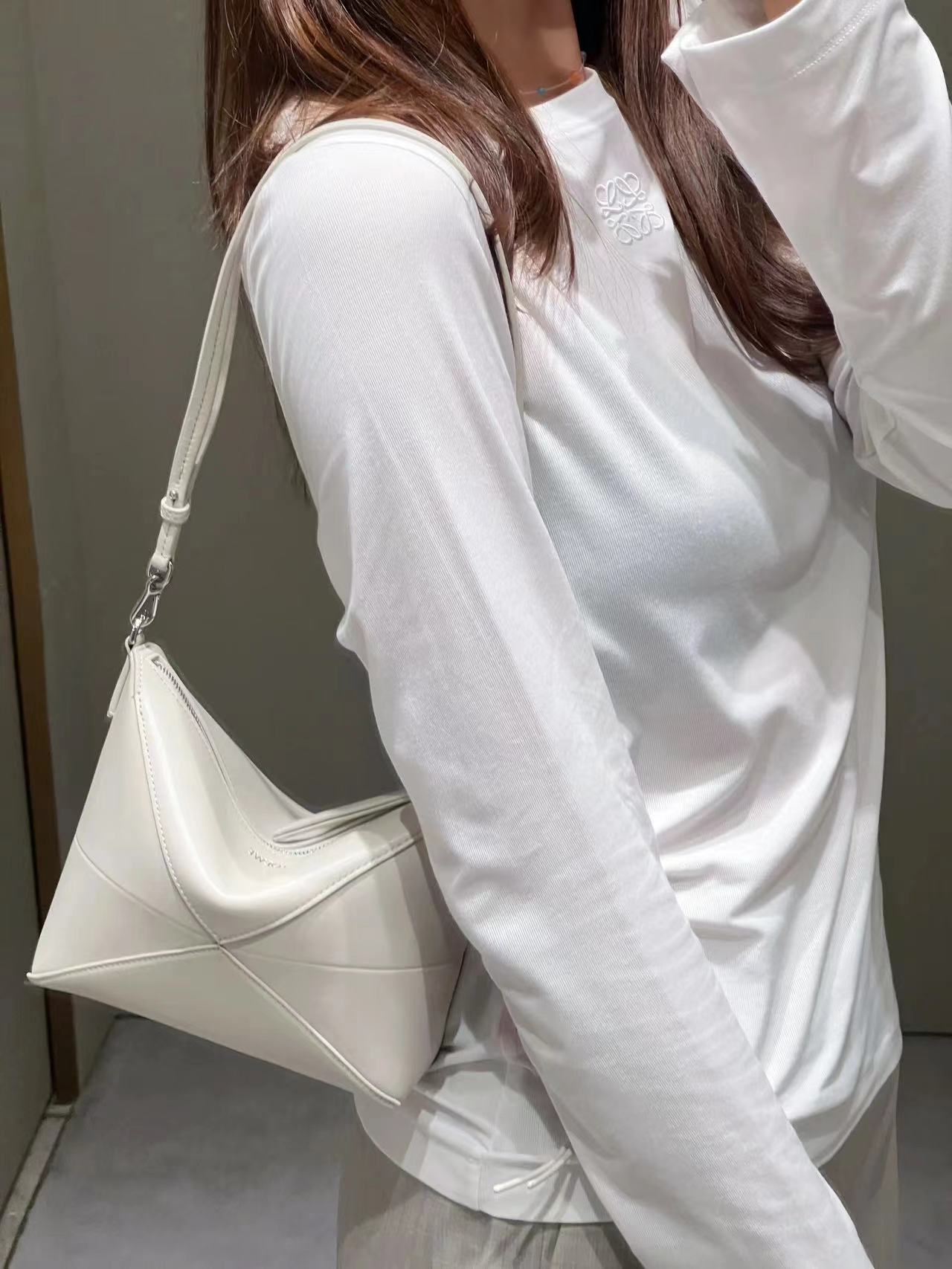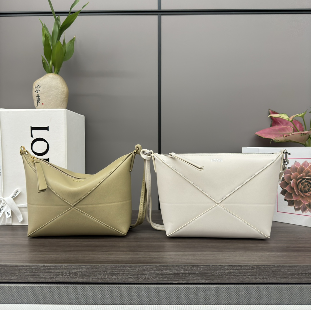 Loewe 新款🆕Puzzle Fold pouch手袋重新演绎实用百搭手拿包 ,从品牌经典手袋系列的几何线条汲取灵感🆕以富含几何建筑美感的镶片重新诠释,此款手袋采用亮面纳帕牛皮革制成。可肩背、斜背或放在其他手提内-*可拆卸可调整肩带 *拉链开合*绒面革衬里L⊚℮w℮烫金。