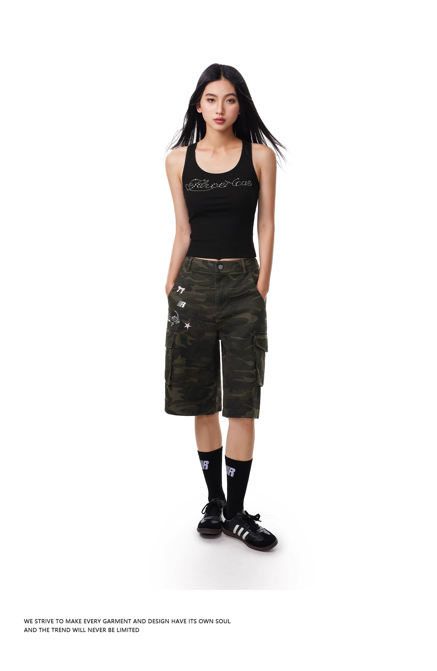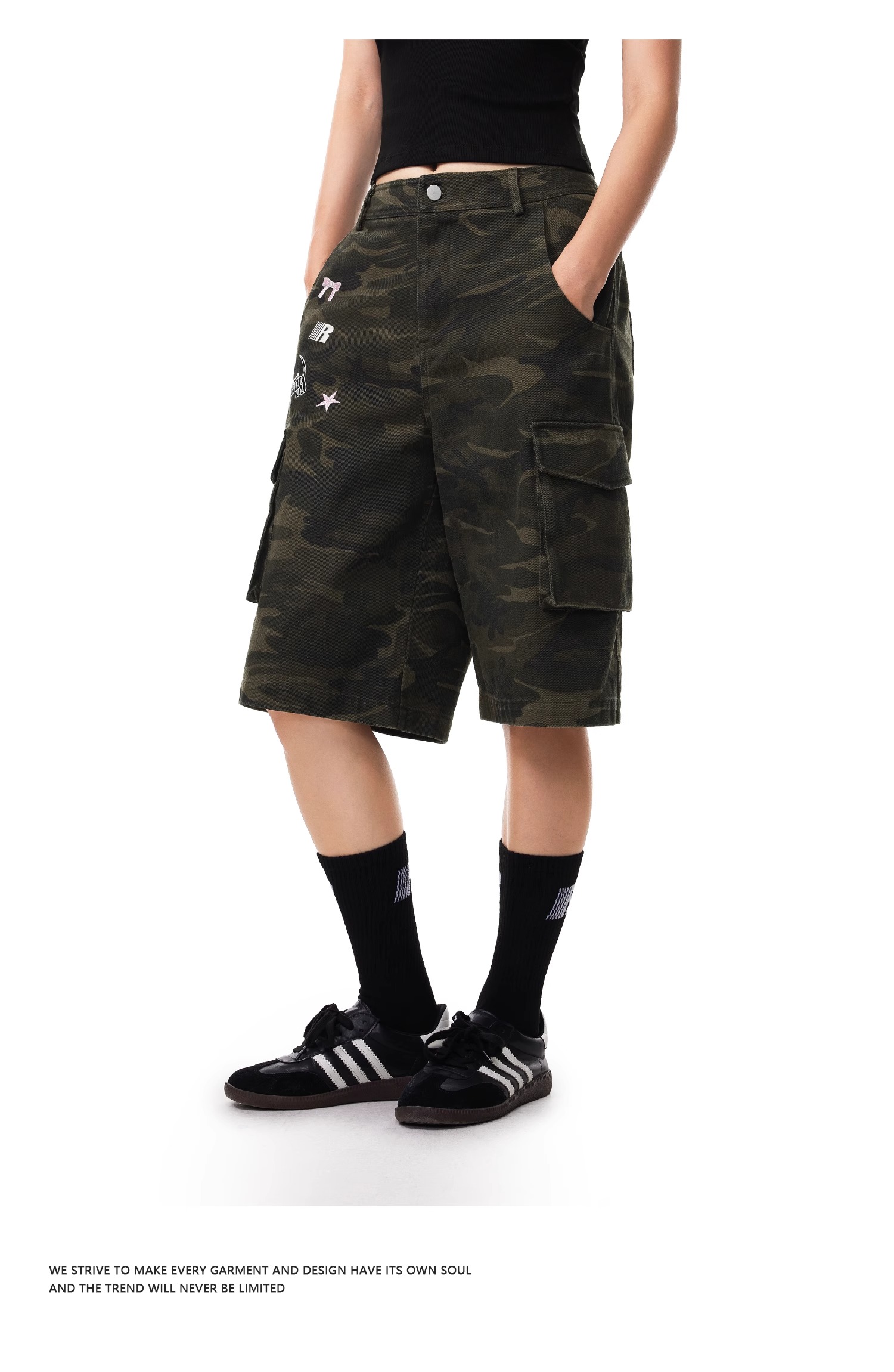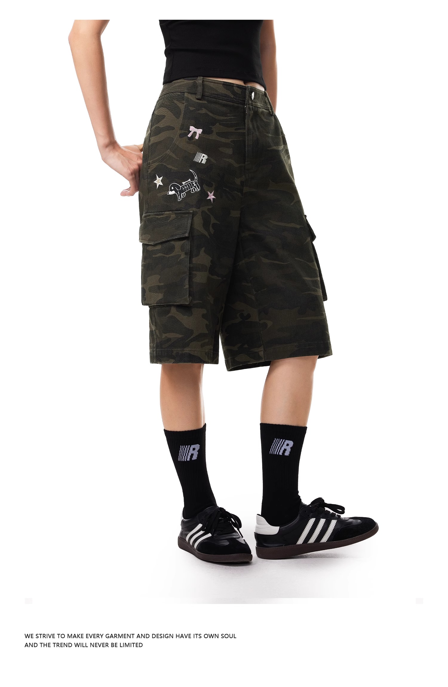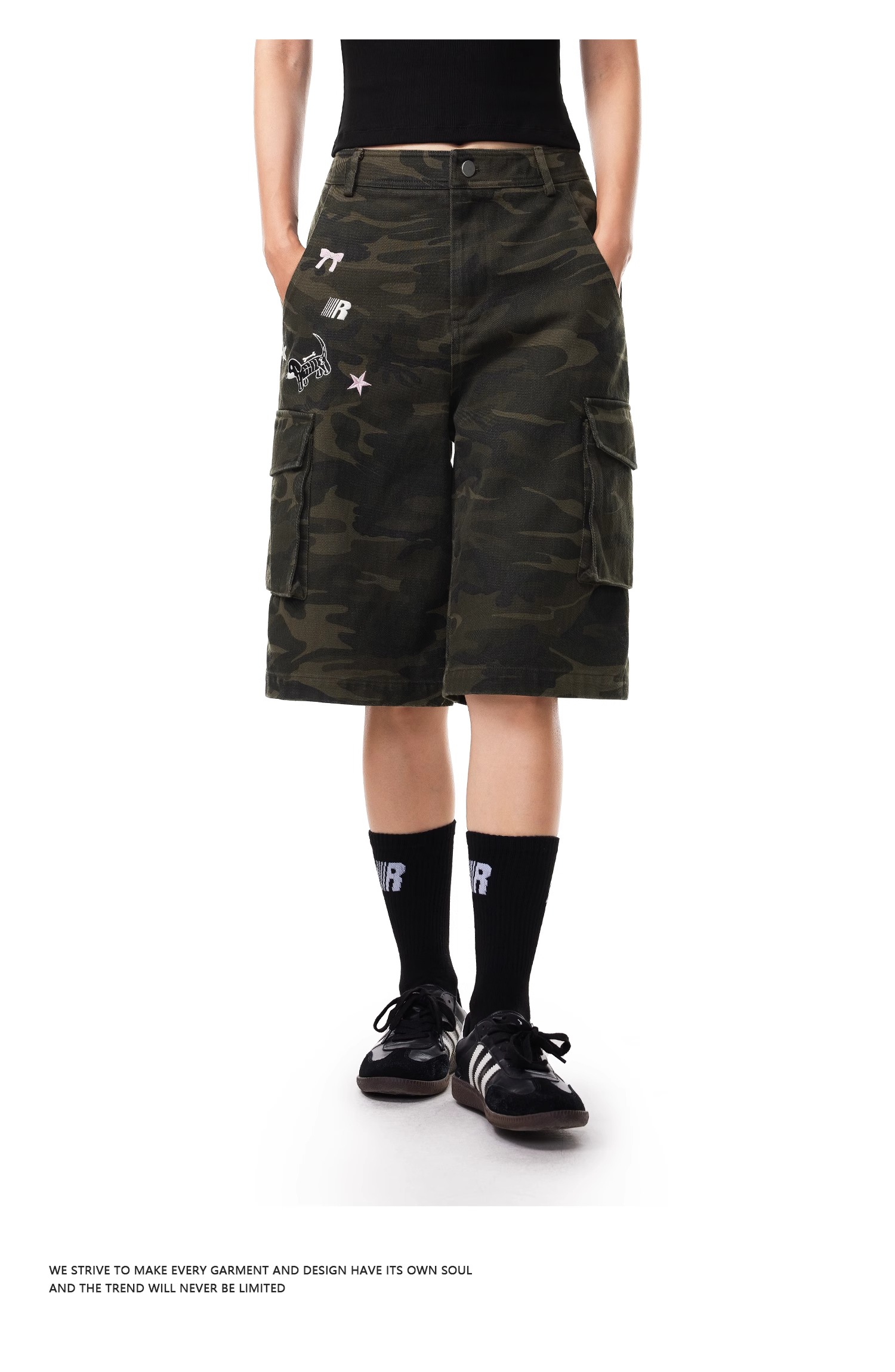 FDR官方店 撞色刺绣美式复古迷彩裤男女夏季休闲工装裤情侣中裤子