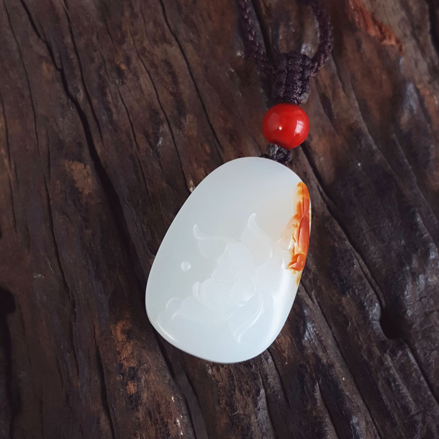 名称 | 天然新疆籽料细腻一级白油润度佳莲莲如意和田玉吊坠项链 |