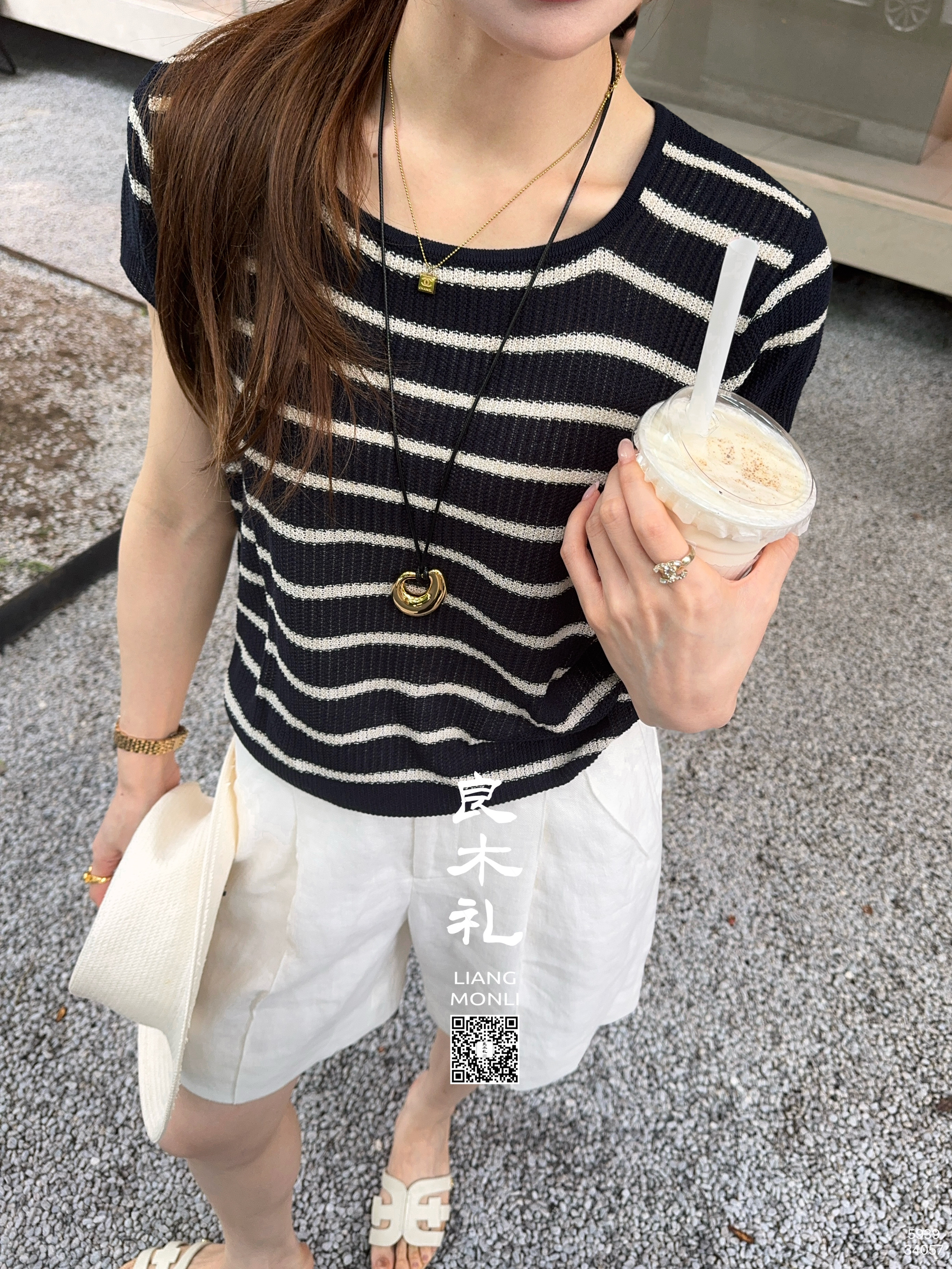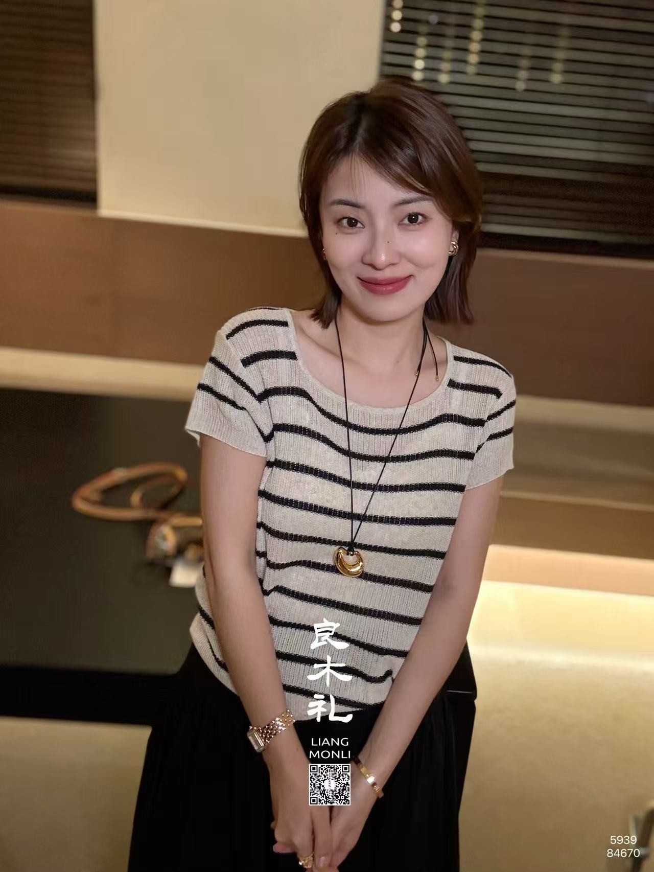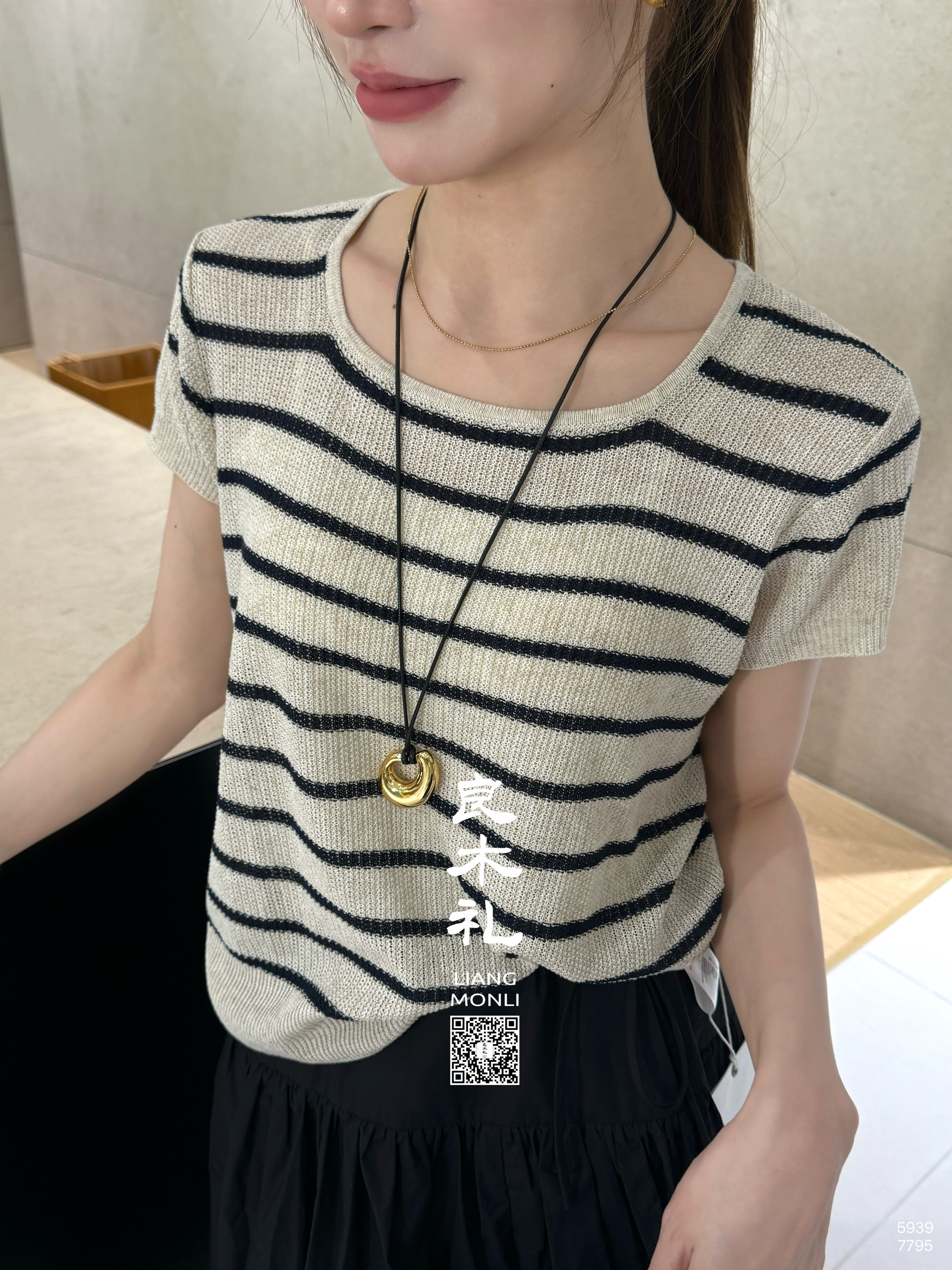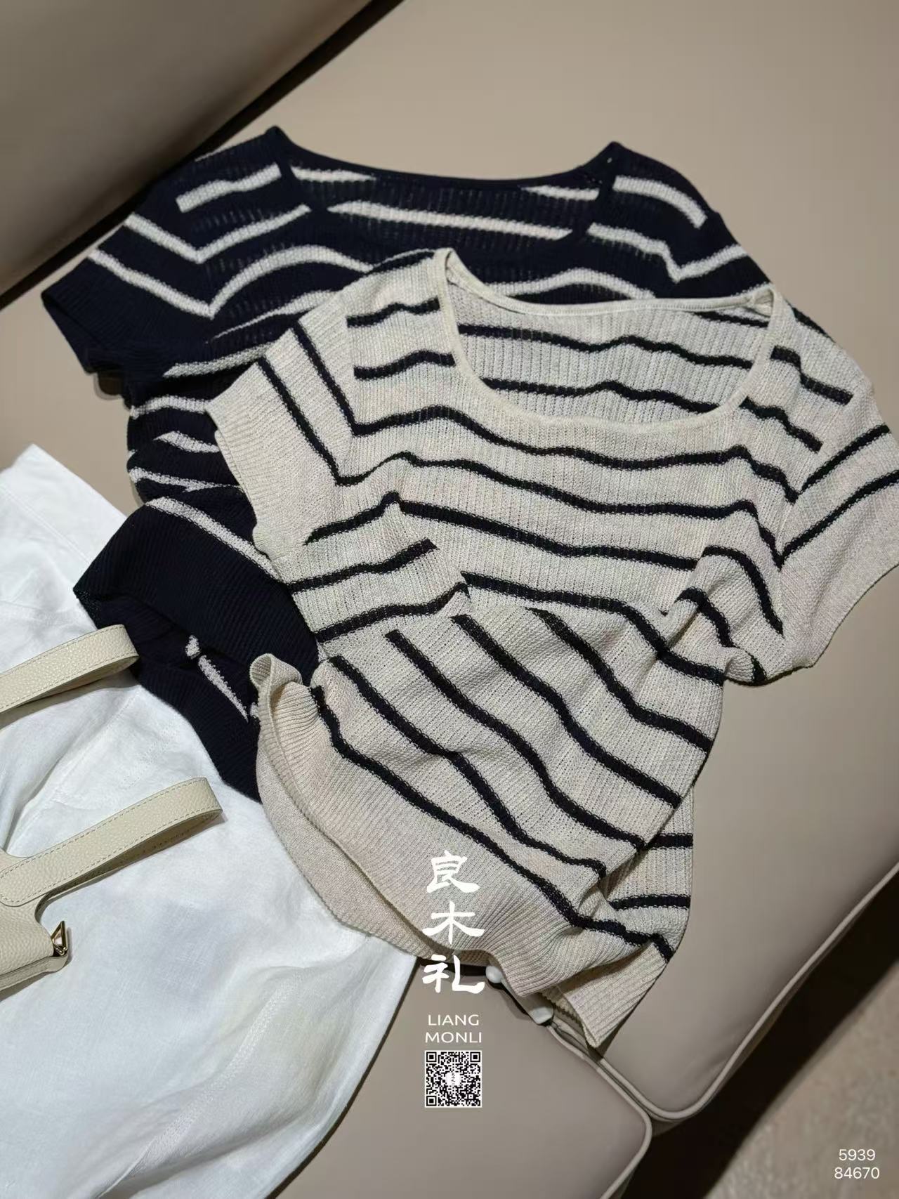 【预售7天】良木礼亚麻条纹短袖(5939)