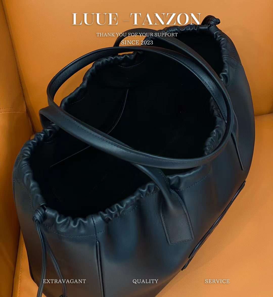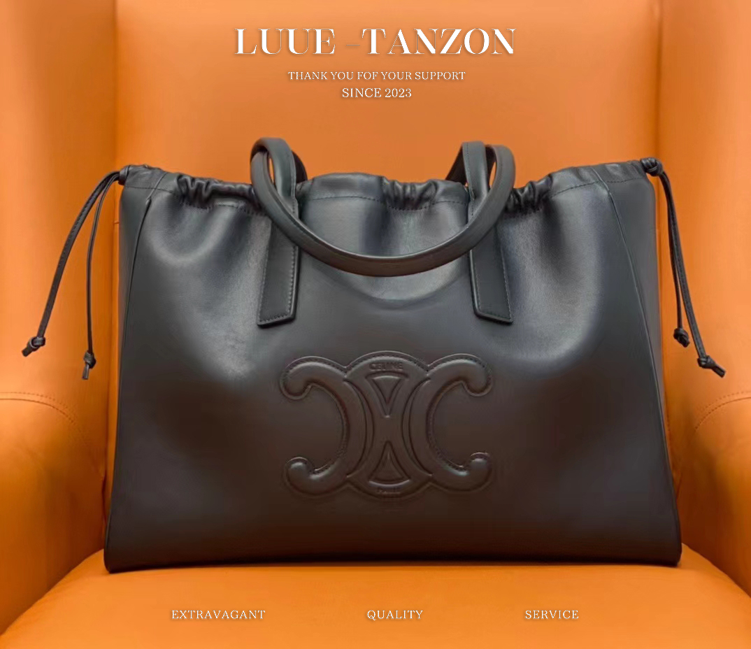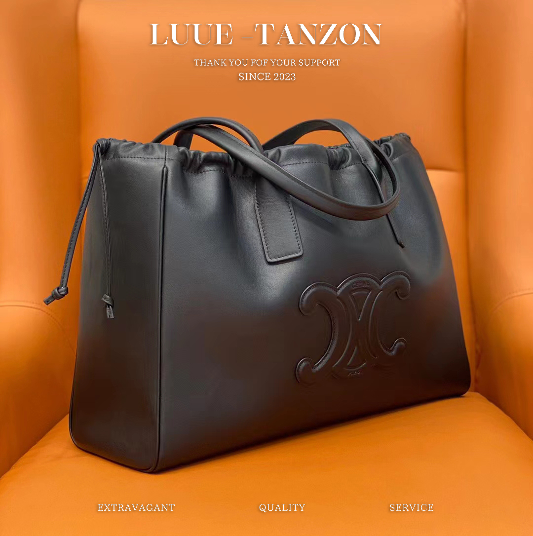 CABAC TRIOMPHE光滑牛皮革抽绳购物袋