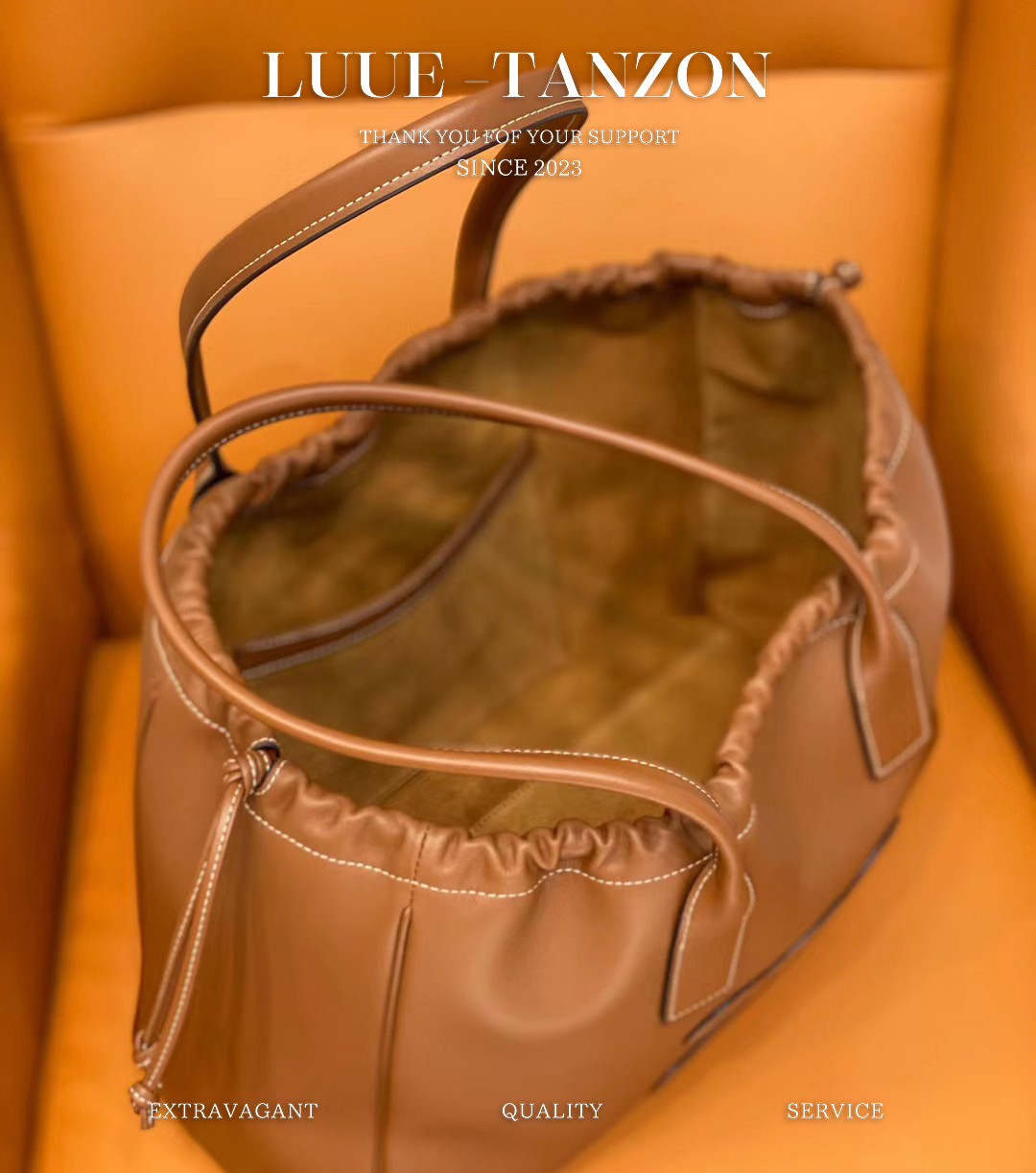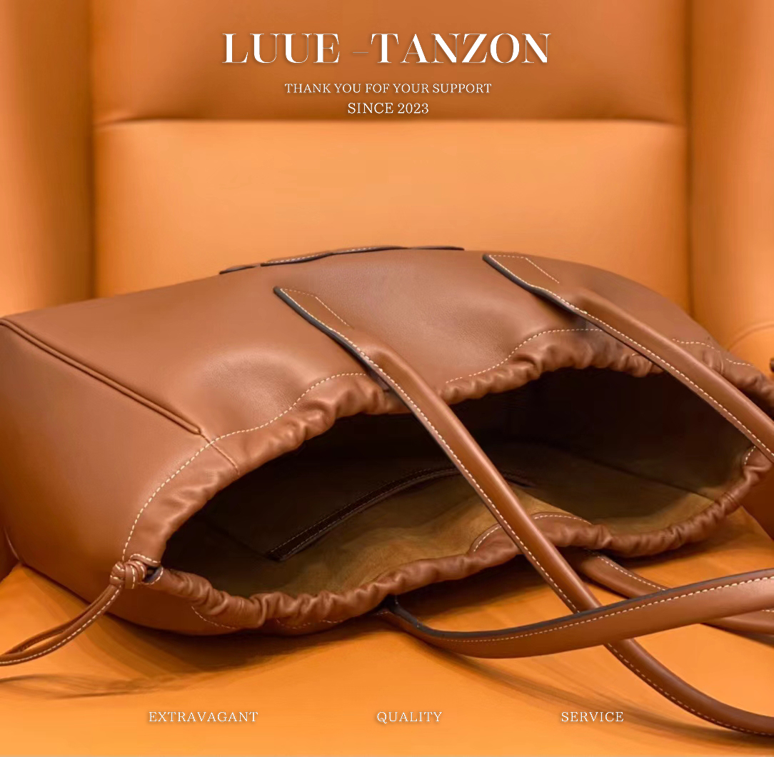 199973_棕色 采用牛皮革 翻毛牛皮革衬里 肩背/装饰性抽绳 1个主隔层 内侧扁平口袋 皮革手挽长11英寸(27厘米)