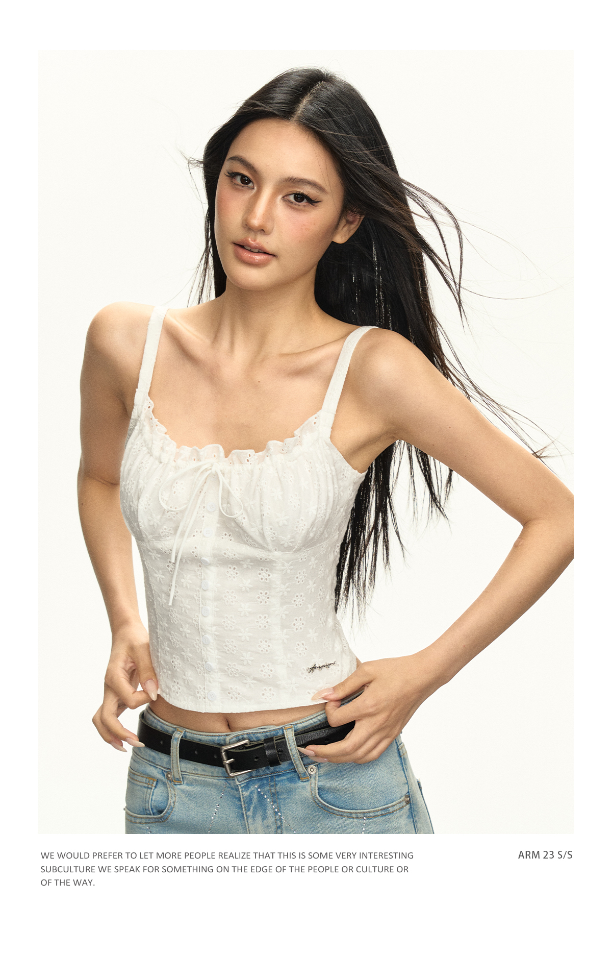 Ariseism 美式辣妹白色蕾丝提花吊带背心女2025夏季新款显瘦上衣