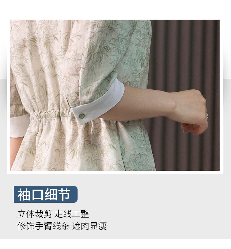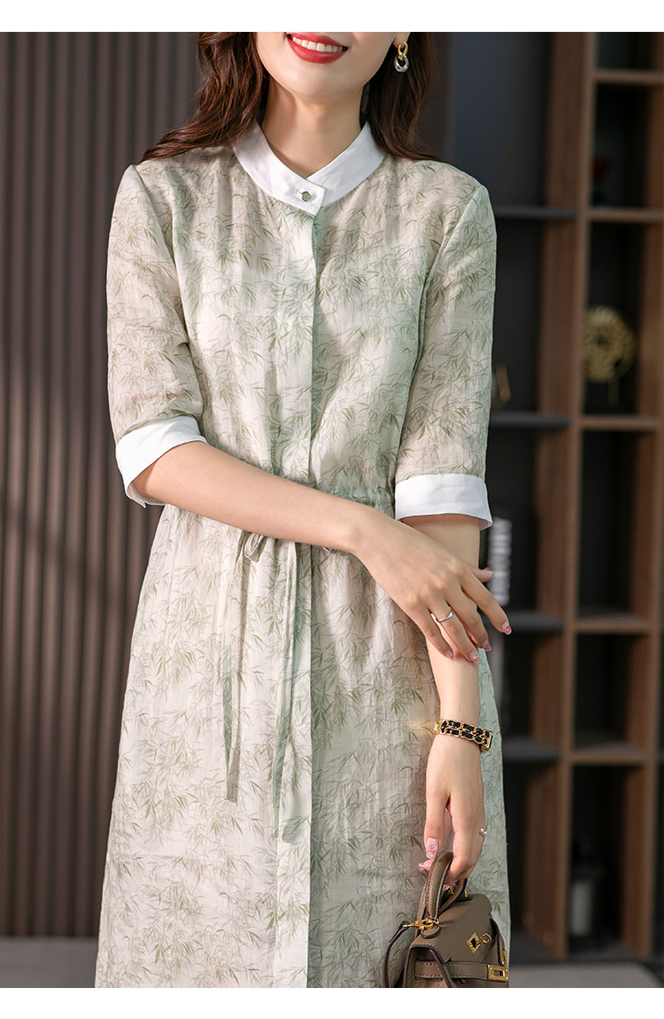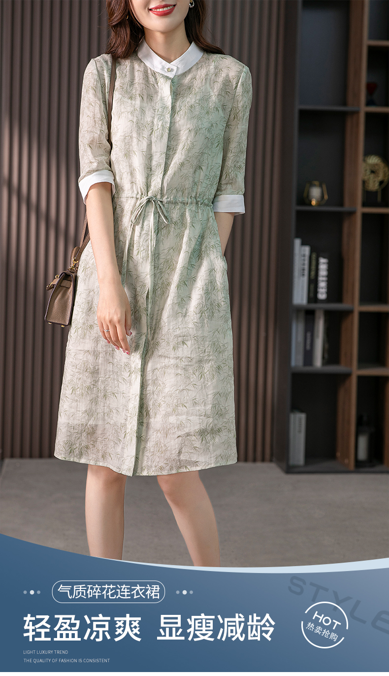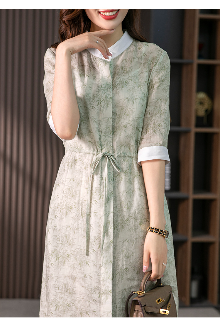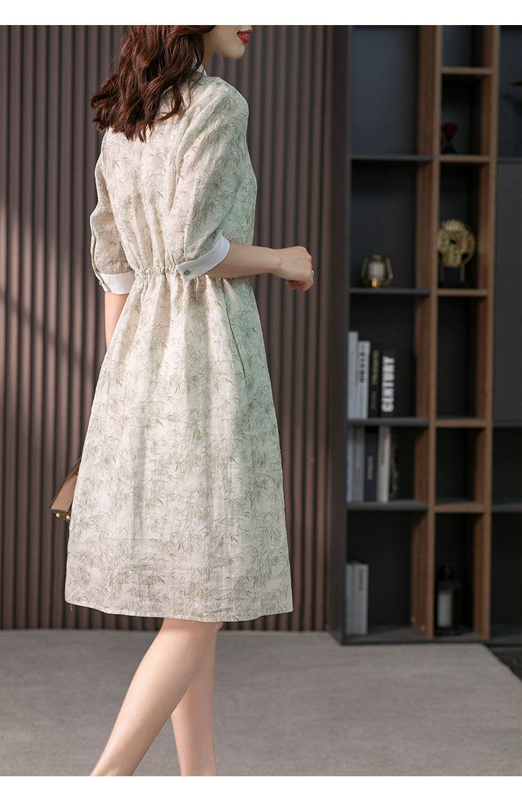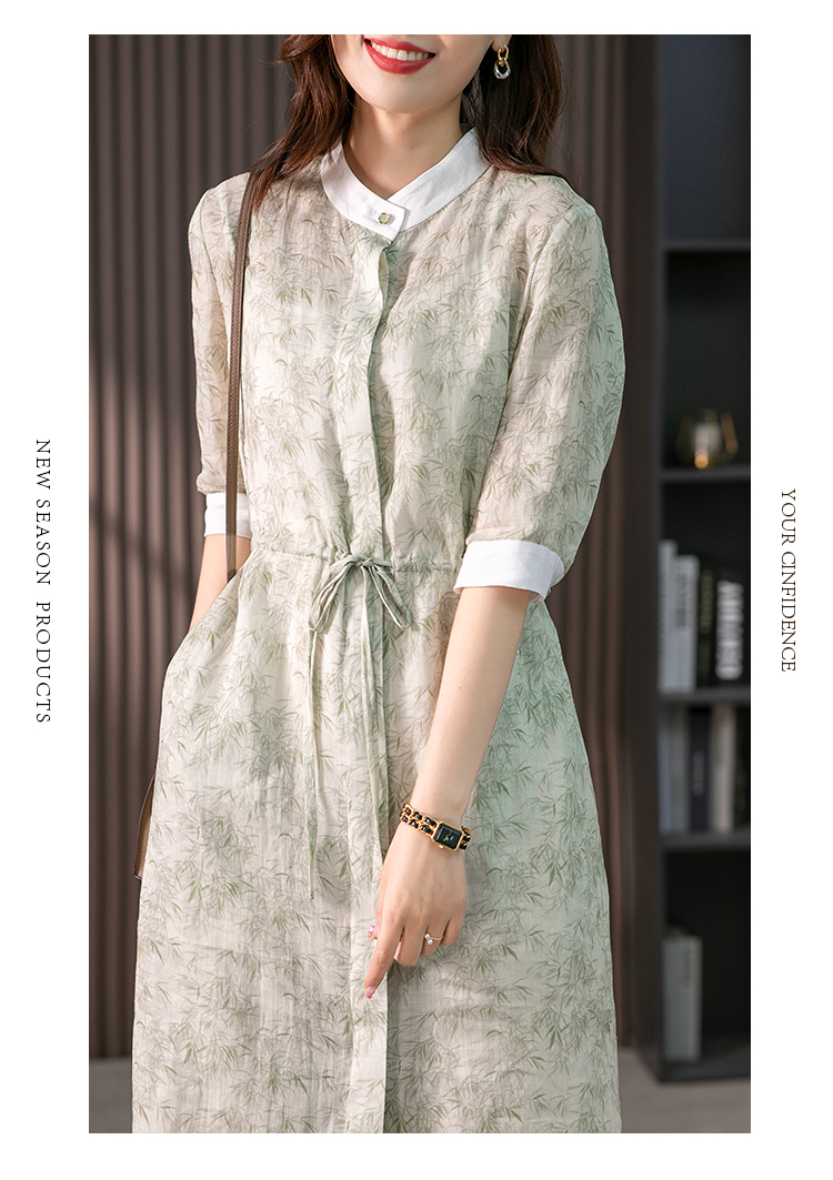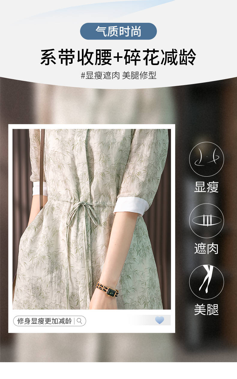 85749原形碎花连衣裙女中长款苎麻裙子2024春夏季新款韩版收腰茶歇裙