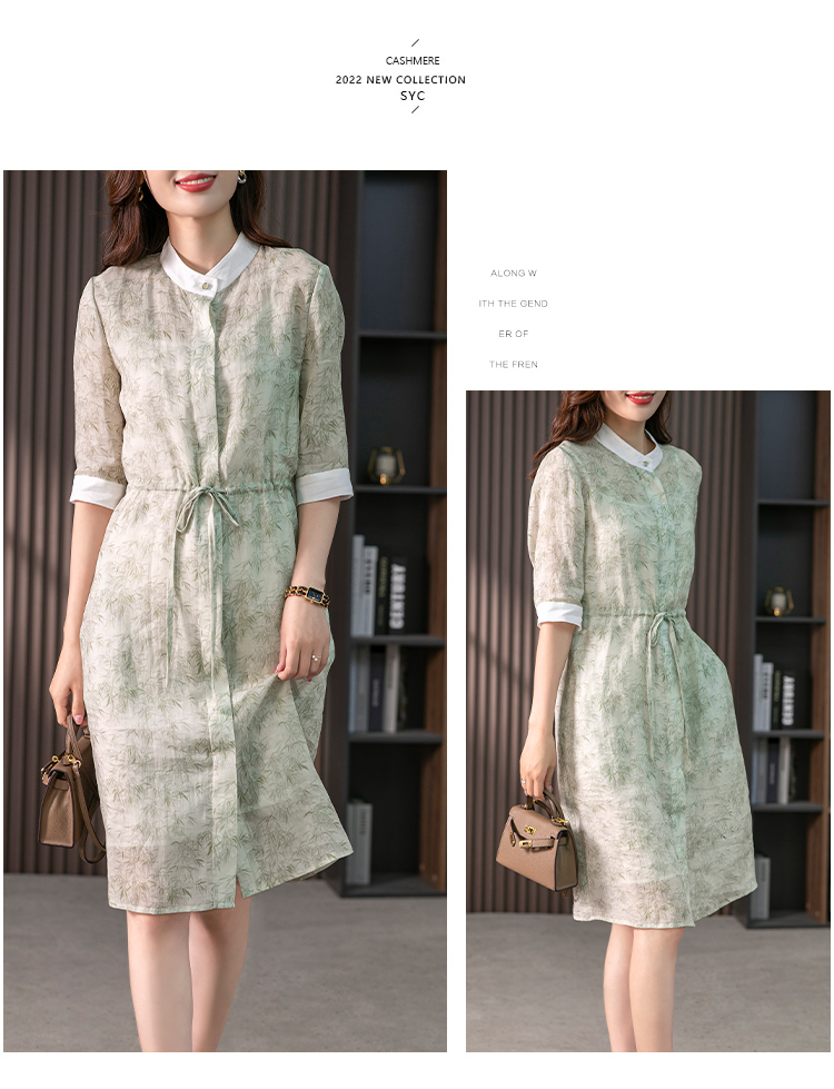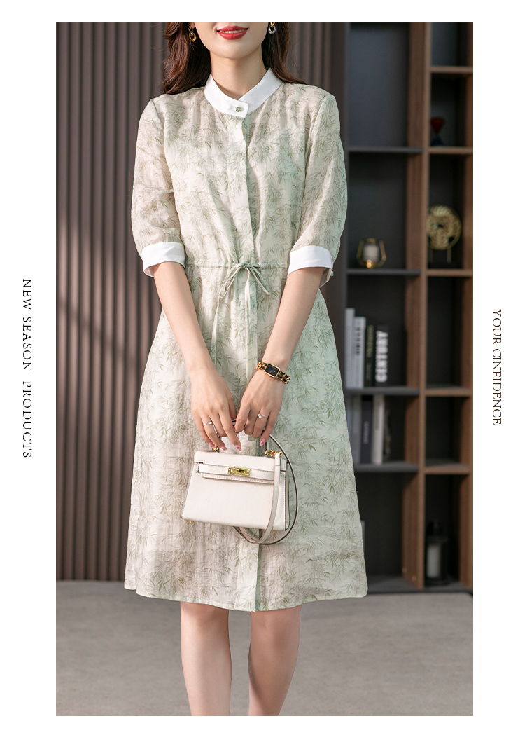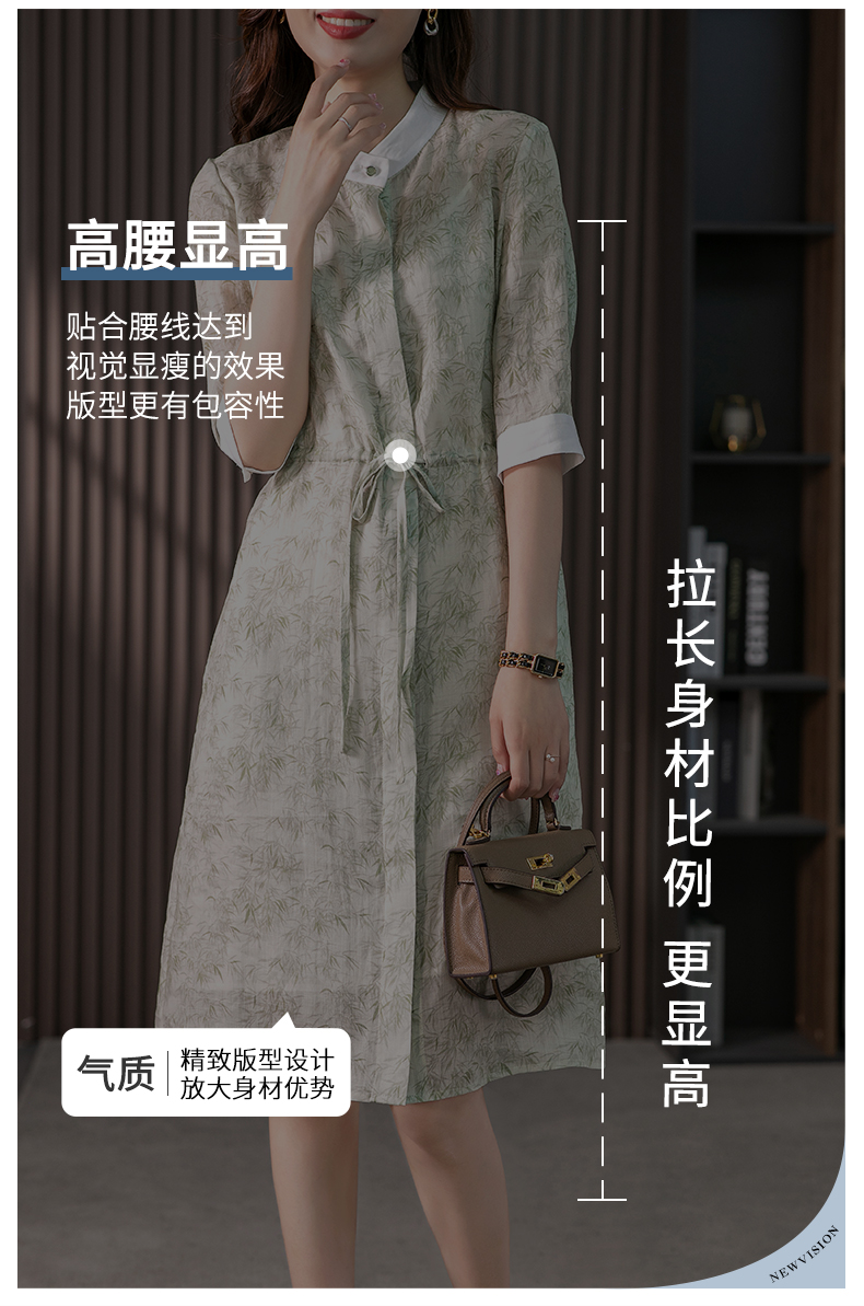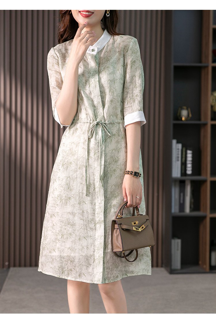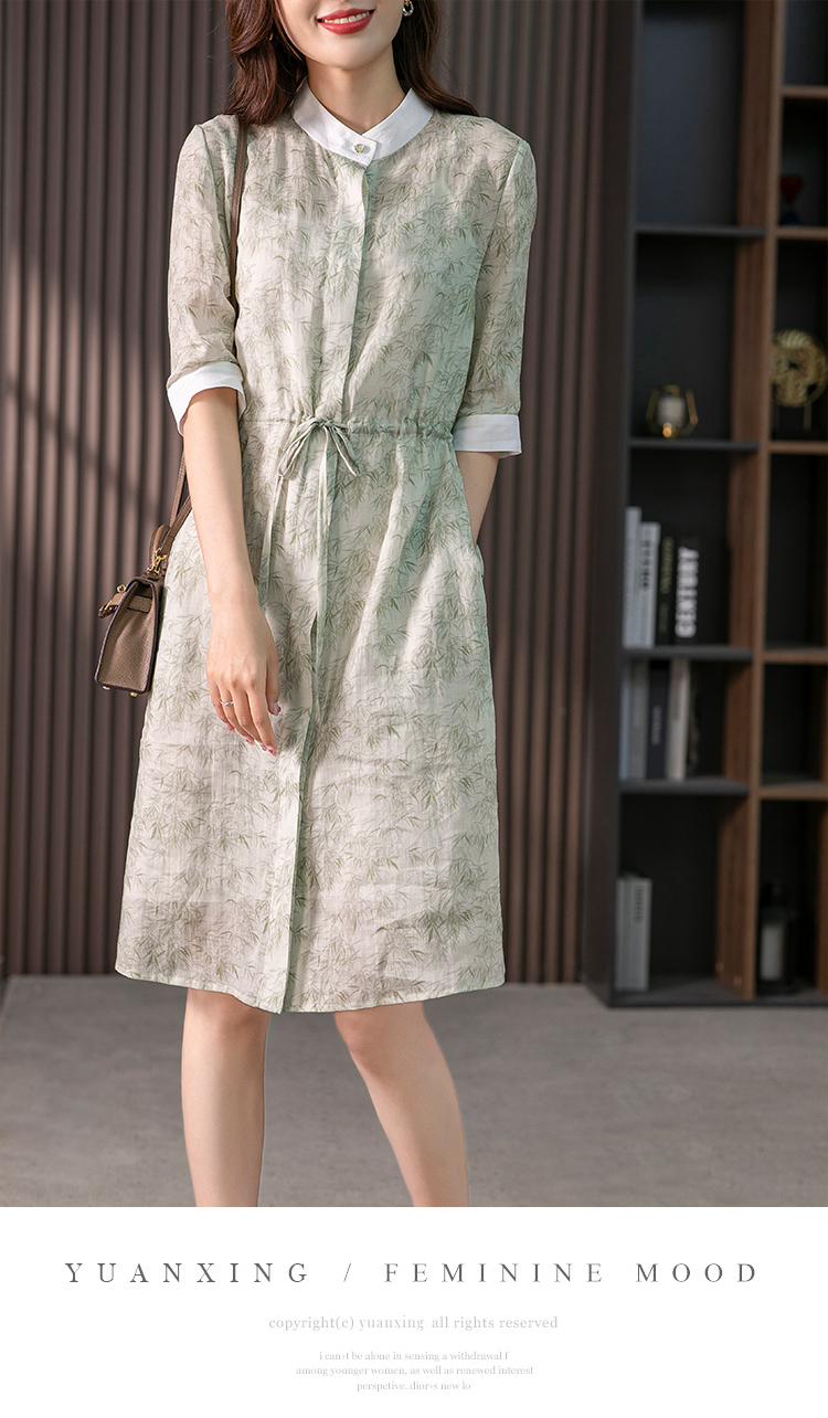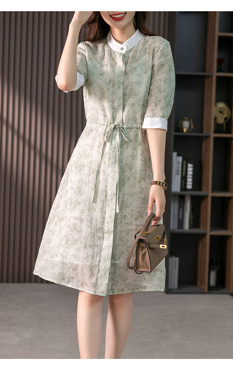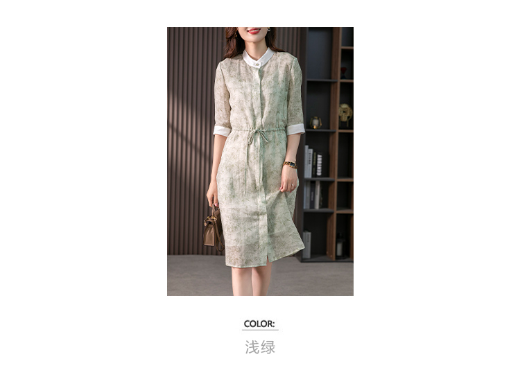 85749原形碎花连衣裙女中长款苎麻裙子2024春夏季新款韩版收腰茶歇裙
