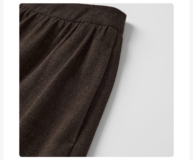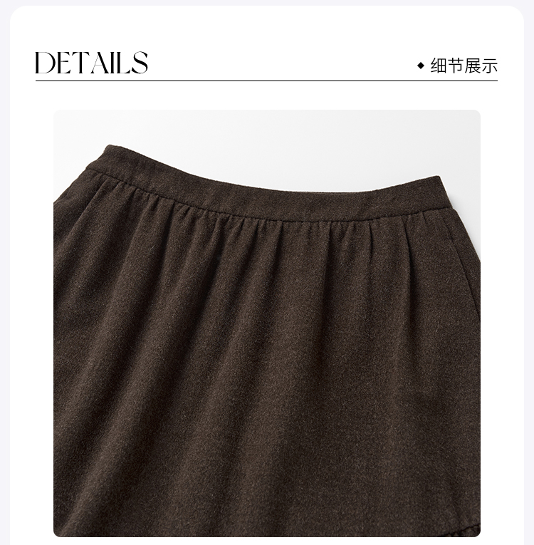 ROMI STUDIO“法式优雅”绵羊毛混纺松紧腰捏褶宽松A字半裙431X8114