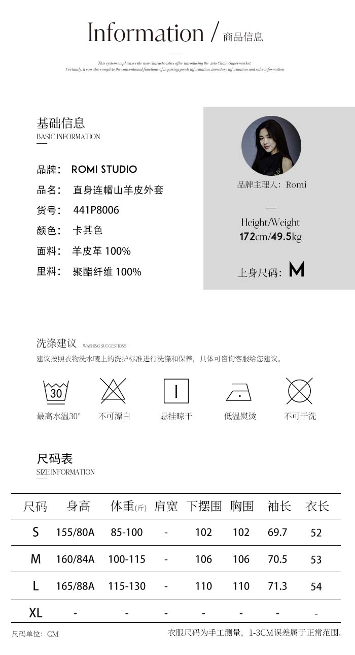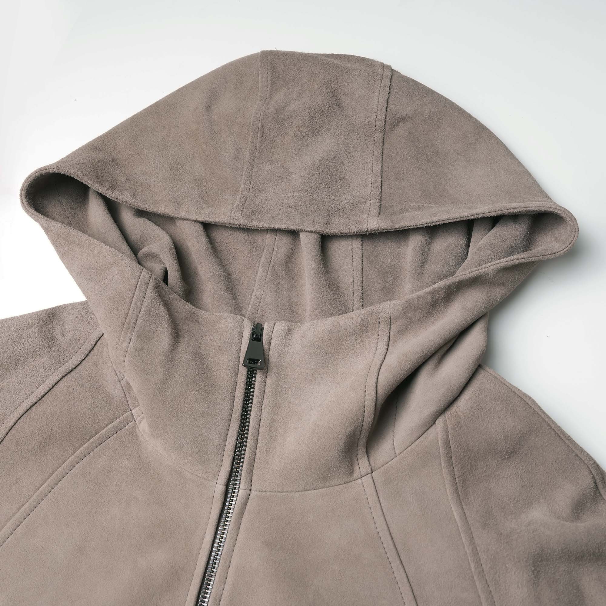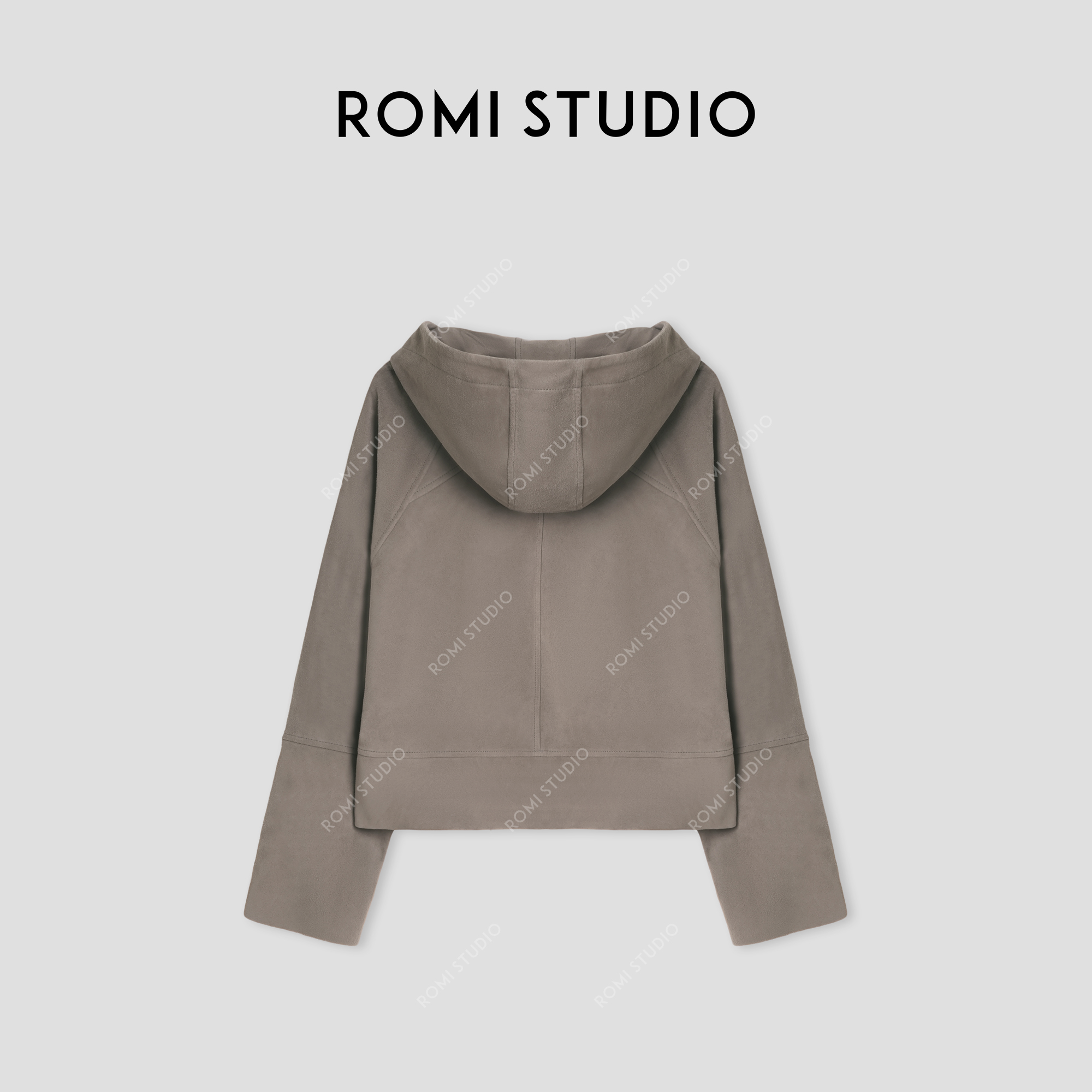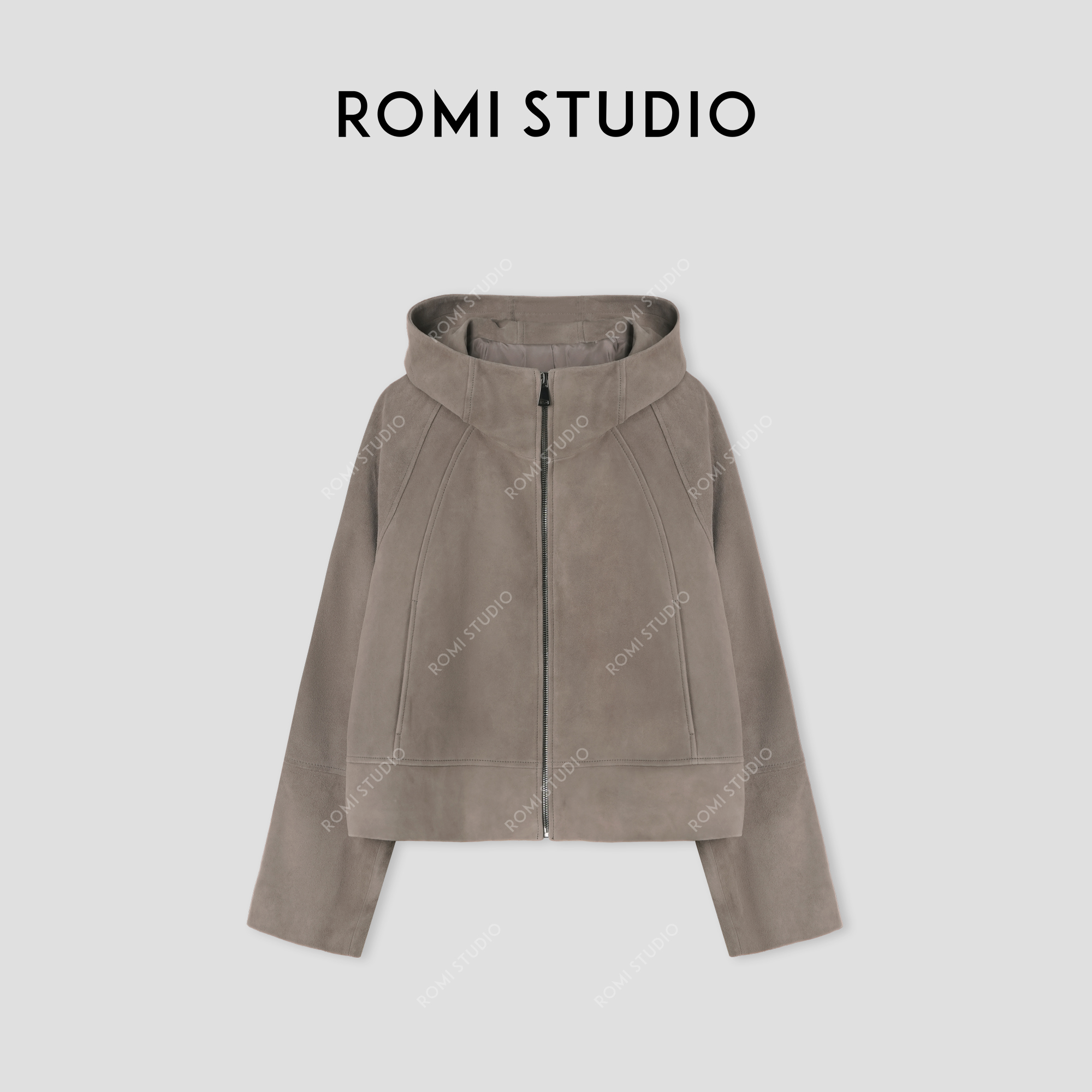 ROMI STUDIO“棕标甄选”轻量级山羊皮柔雾感连帽皮衣外套 441P8006