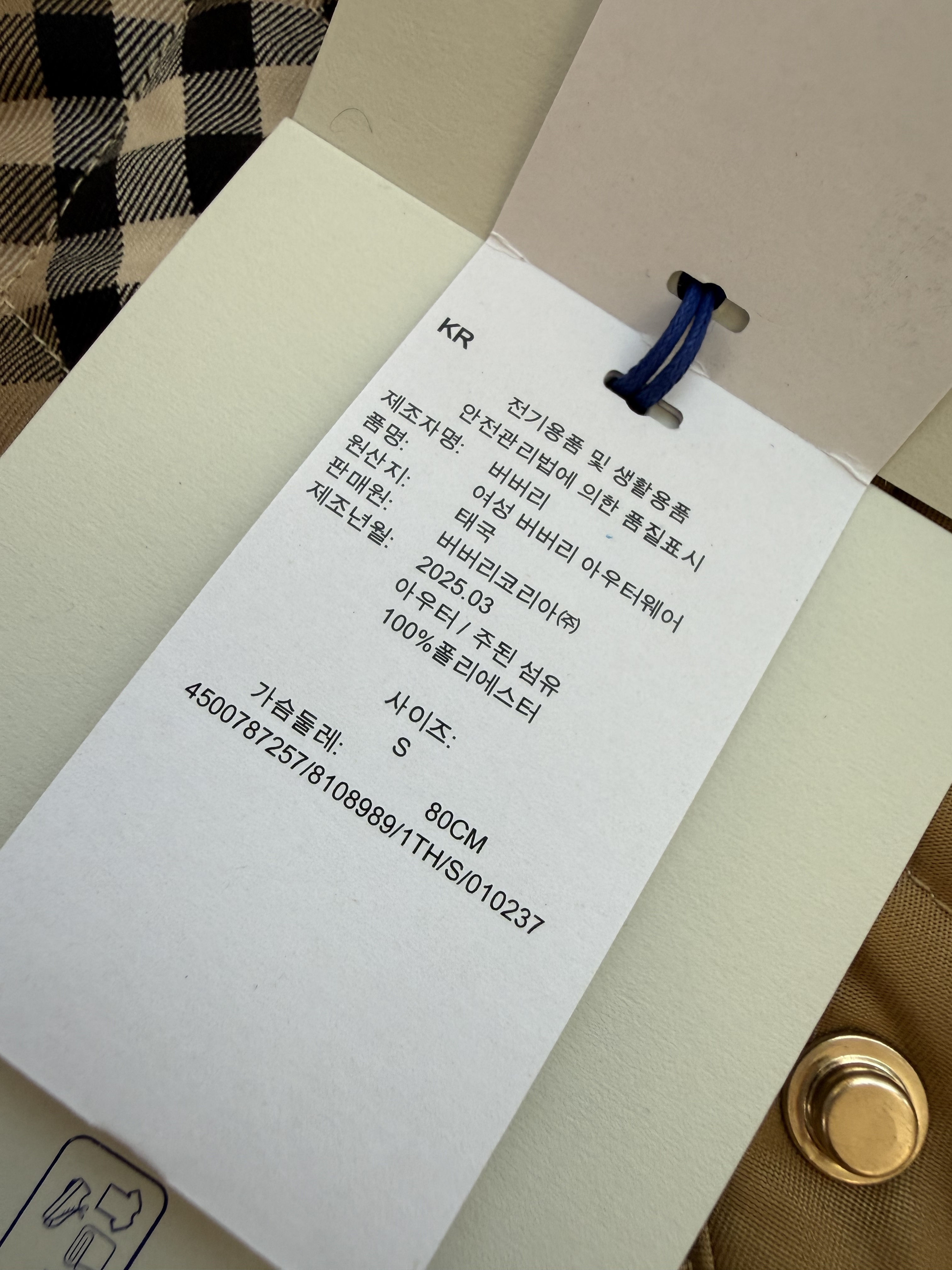 吊牌绳为棉质打结处工整无松散线头