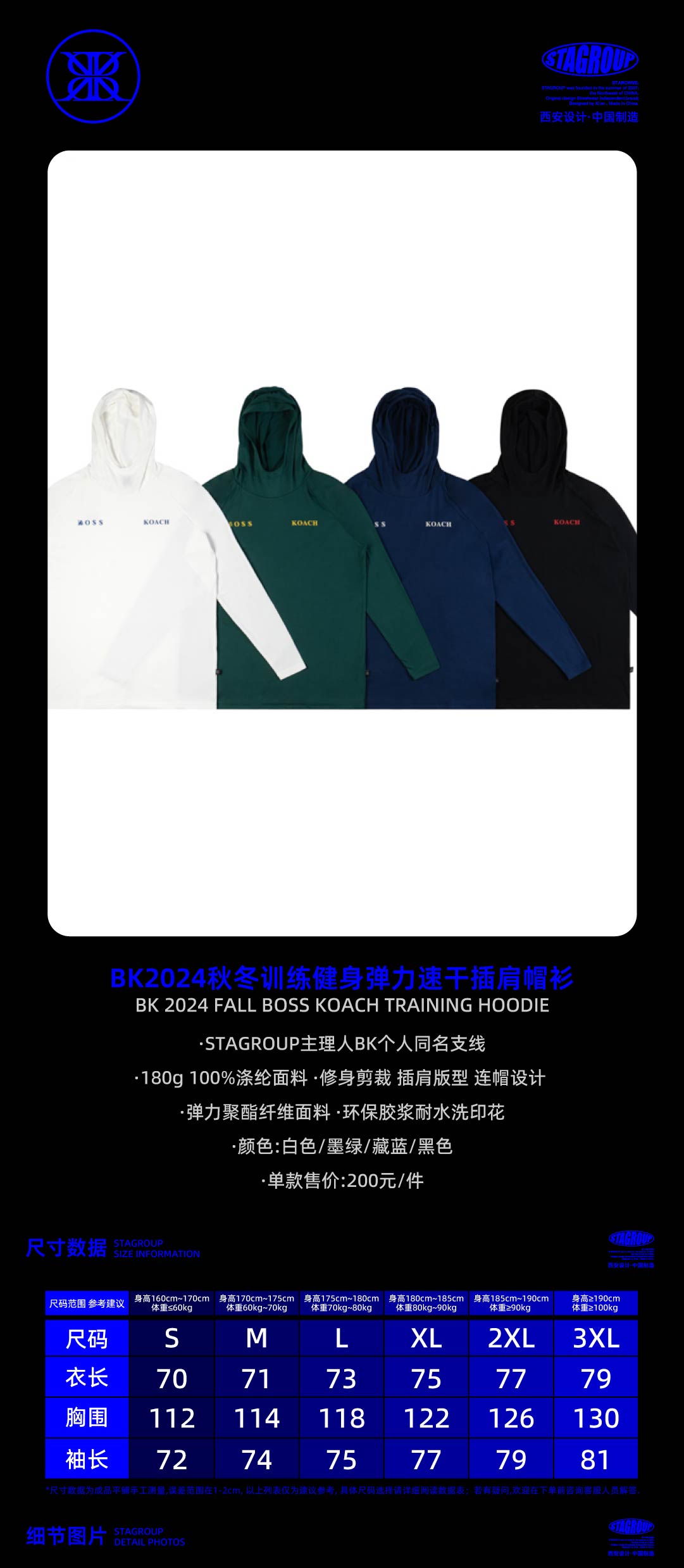 BK2024秋冬训练健身弹力速干插肩帽衫