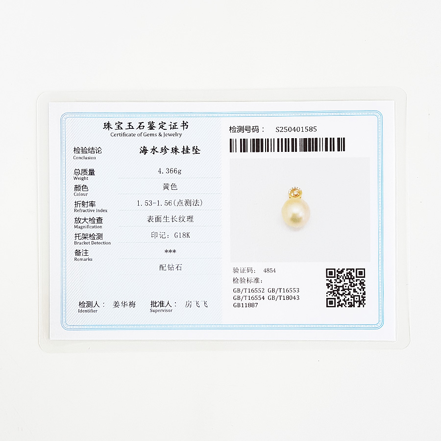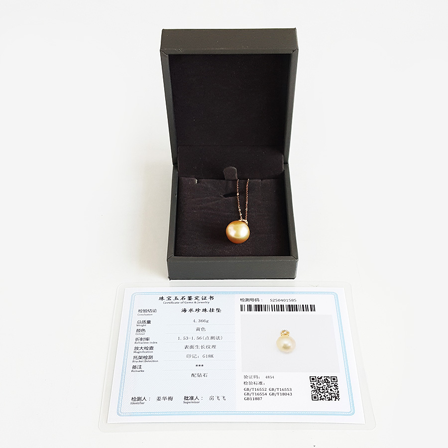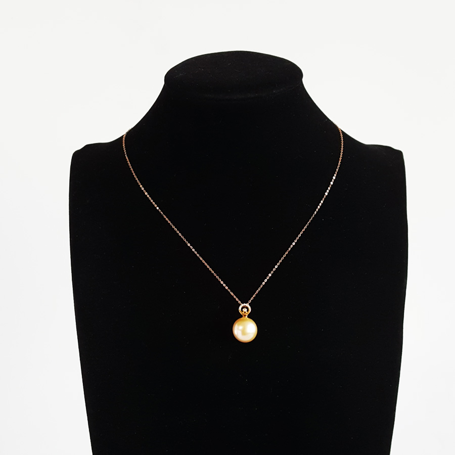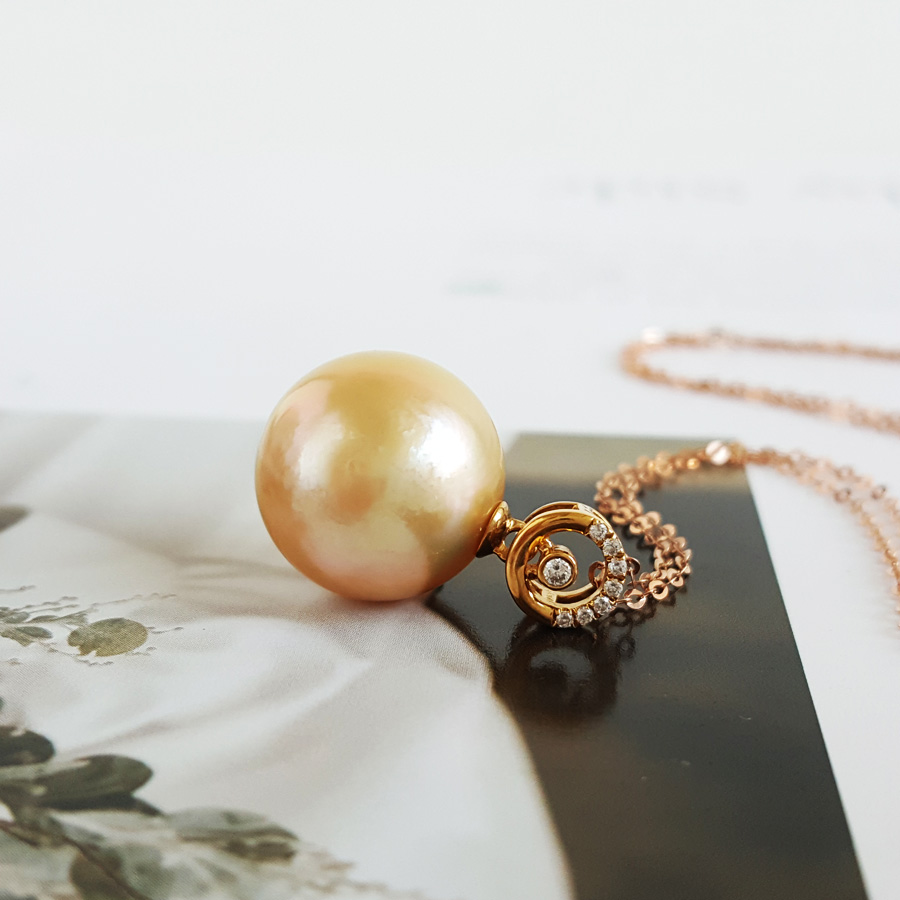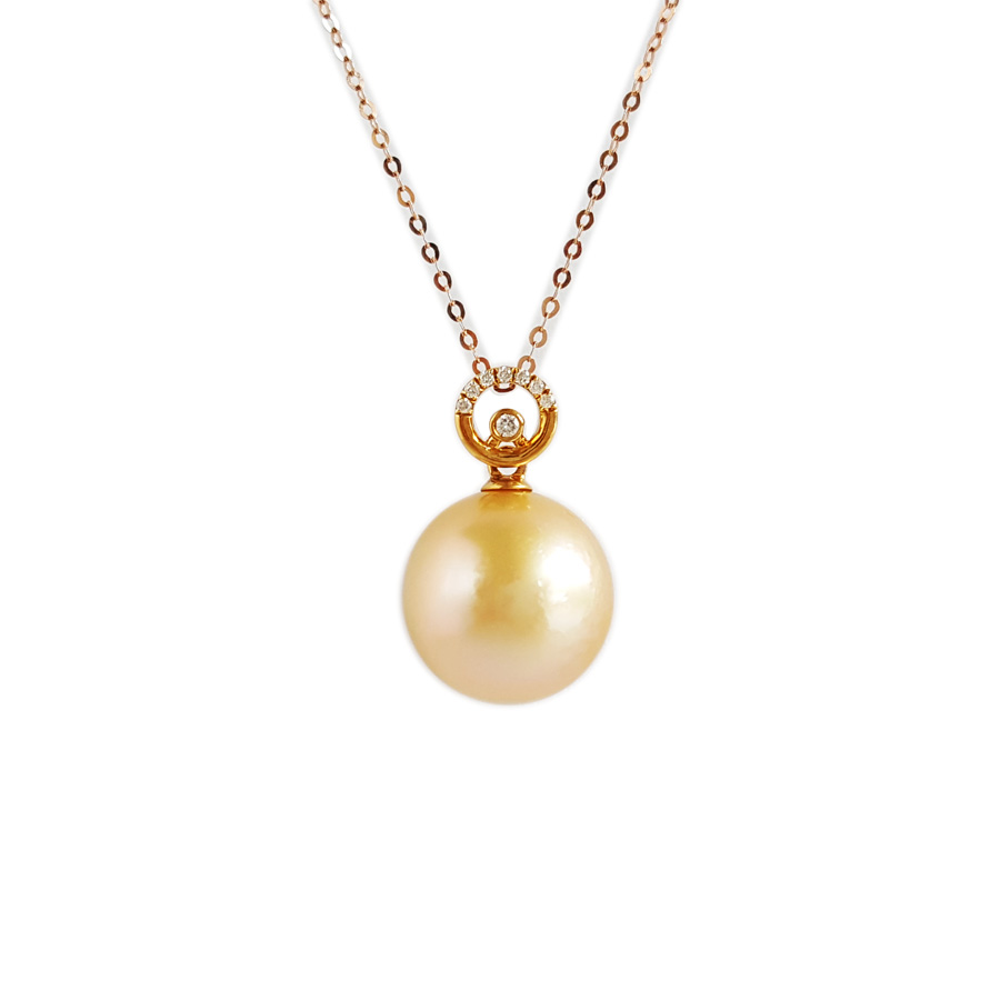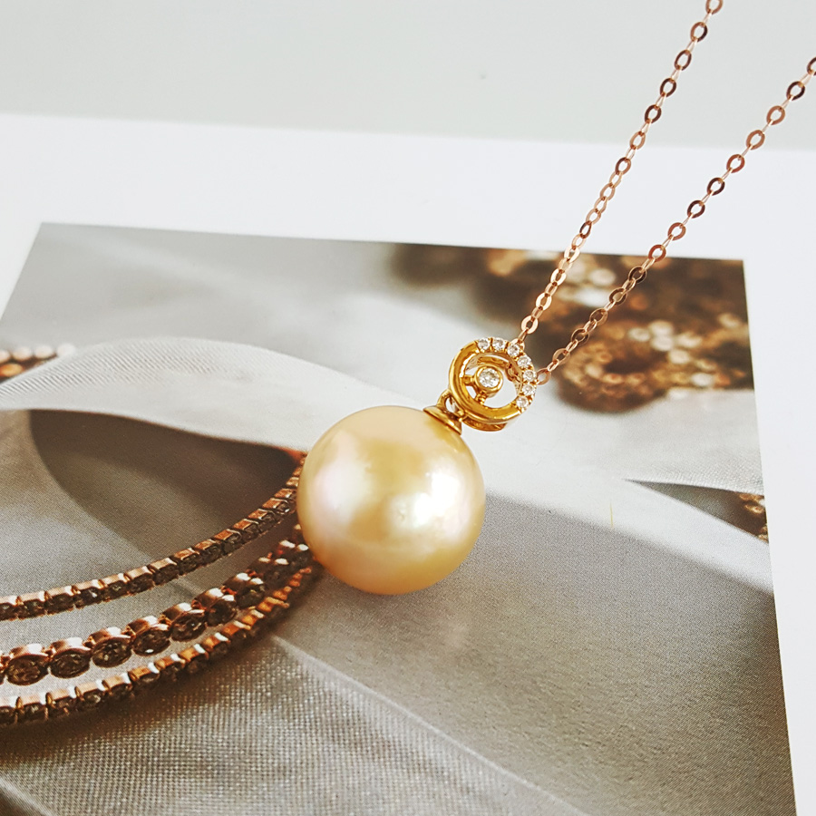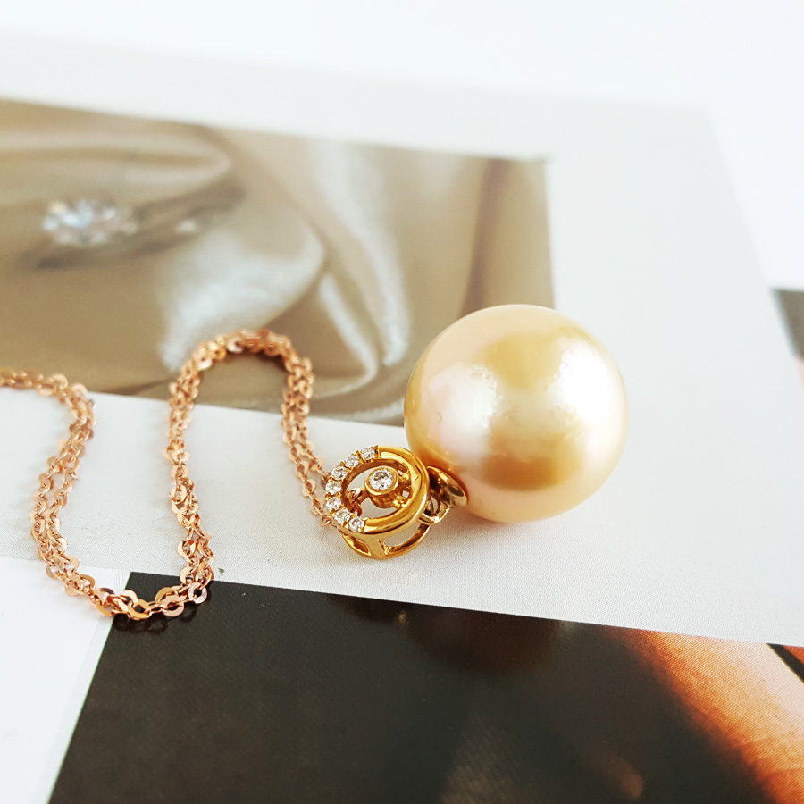 名称 | AU750黄金镶钻镶天然13.5MM香槟金色海水珍珠吊坠项链 |