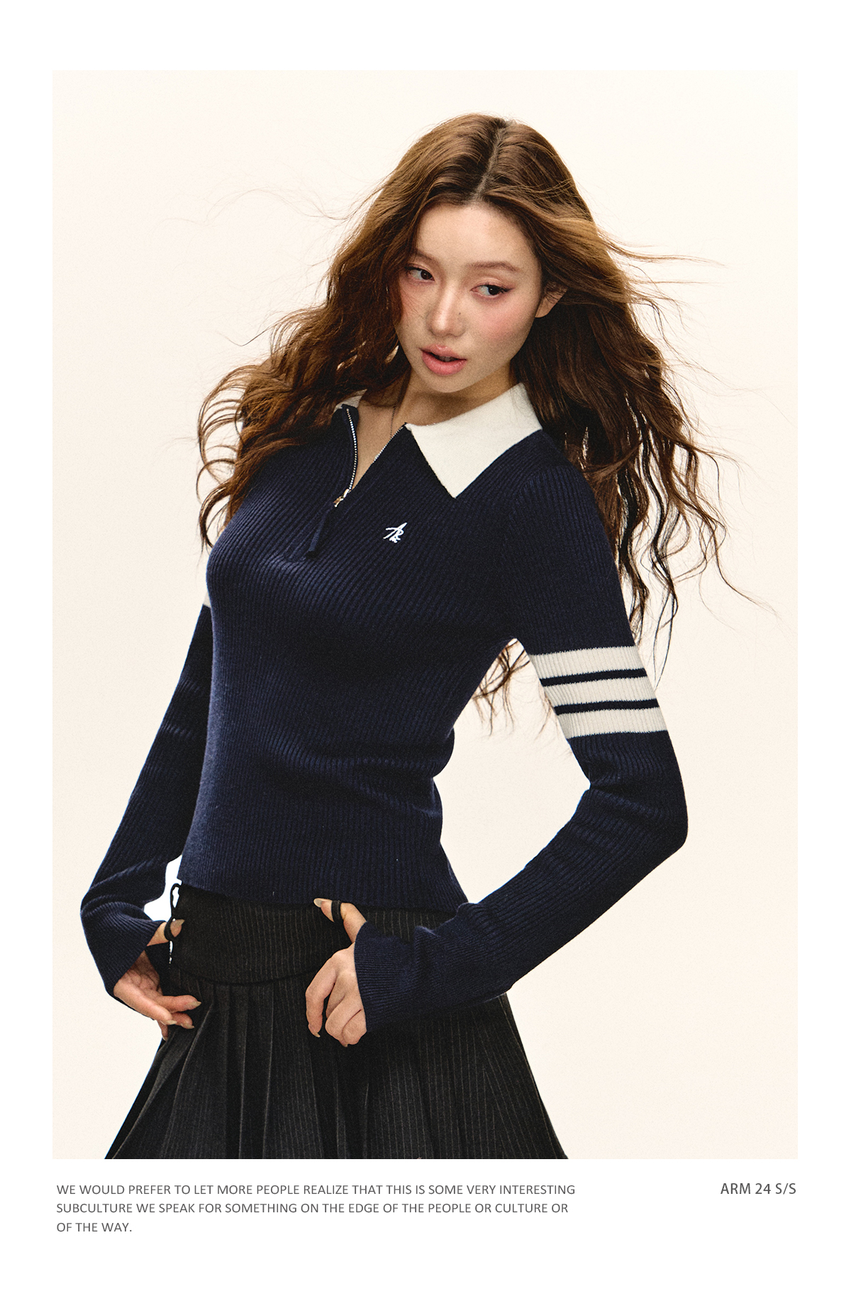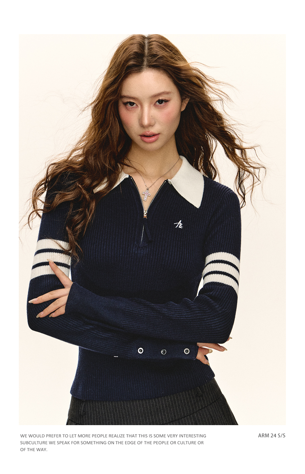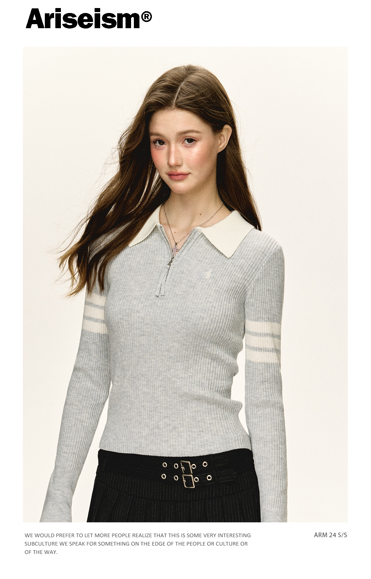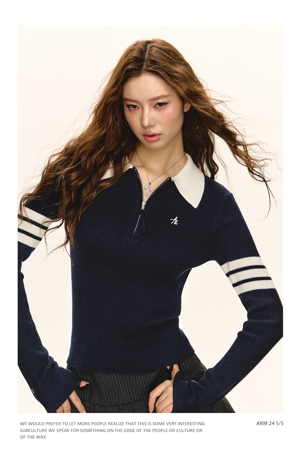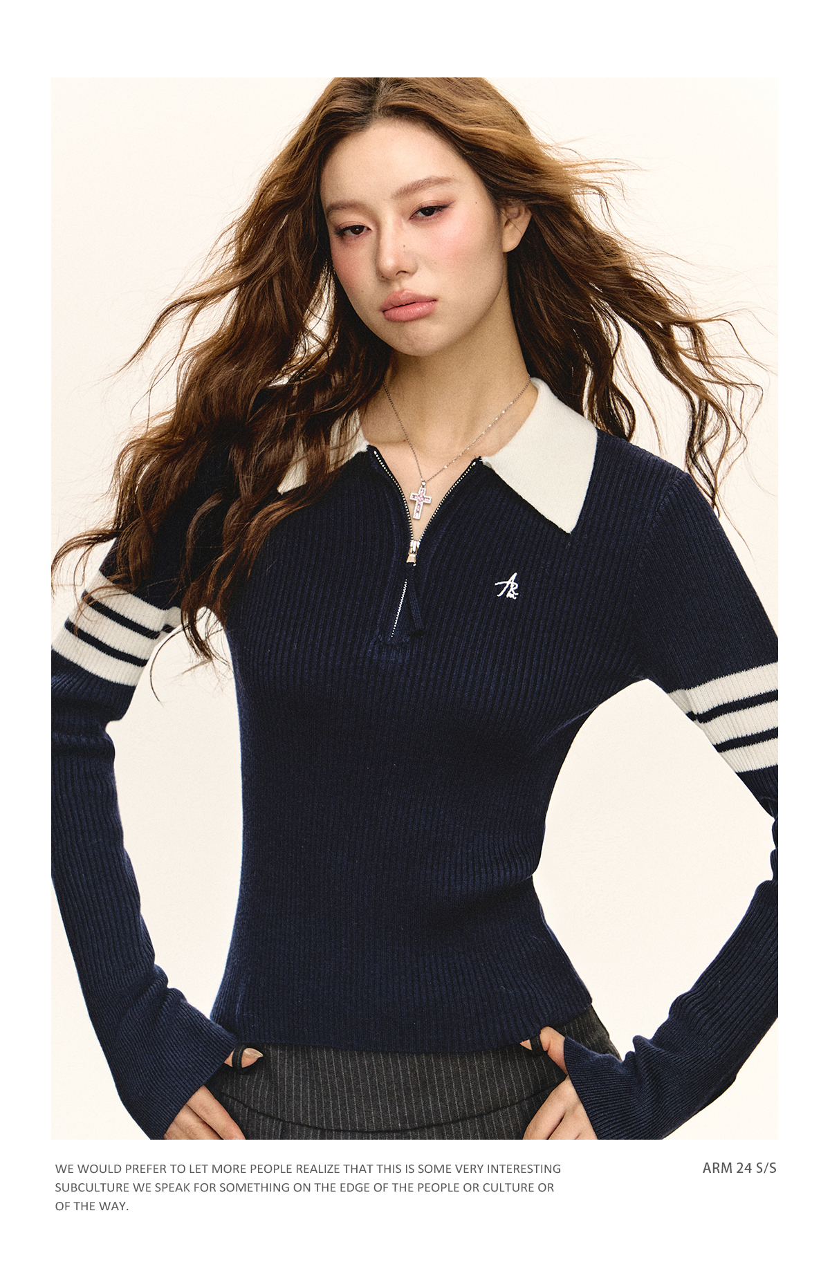 Ariseism 美式复古半拉链修身针织毛衣女春秋新款内搭打底上衣