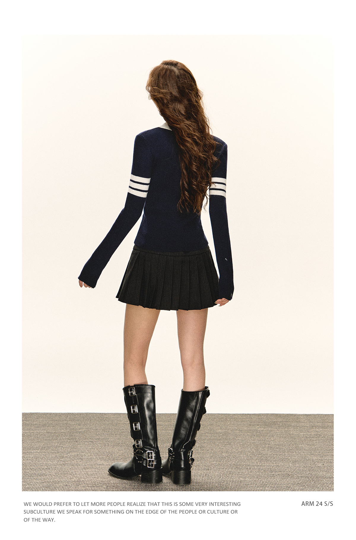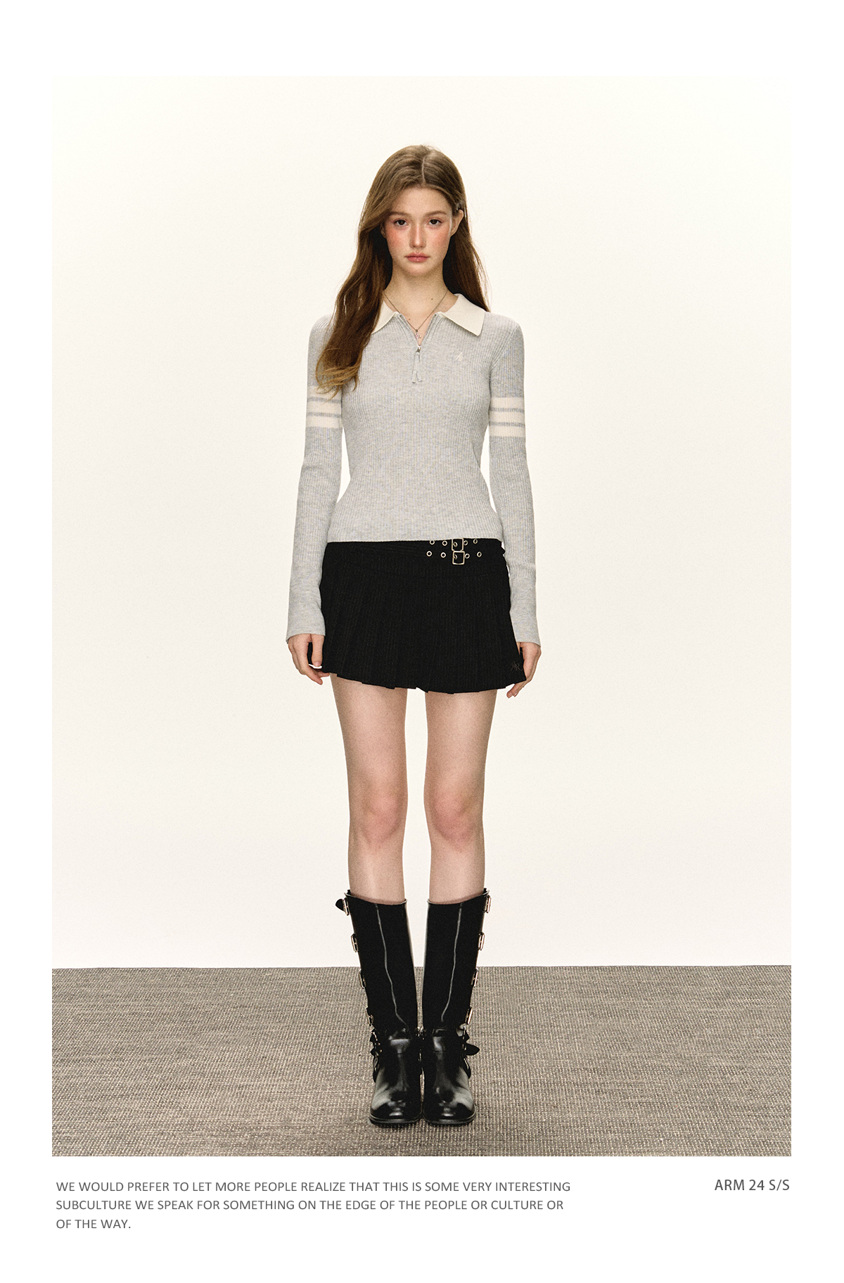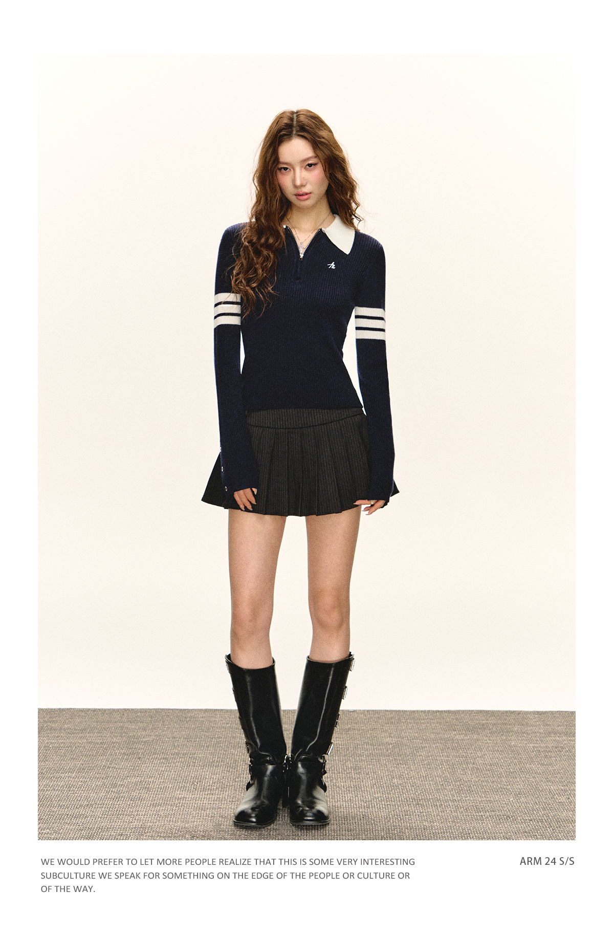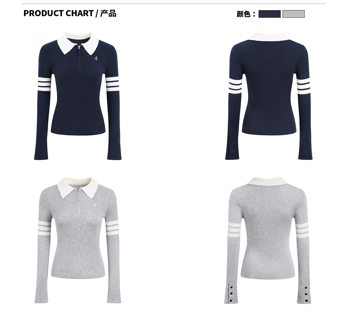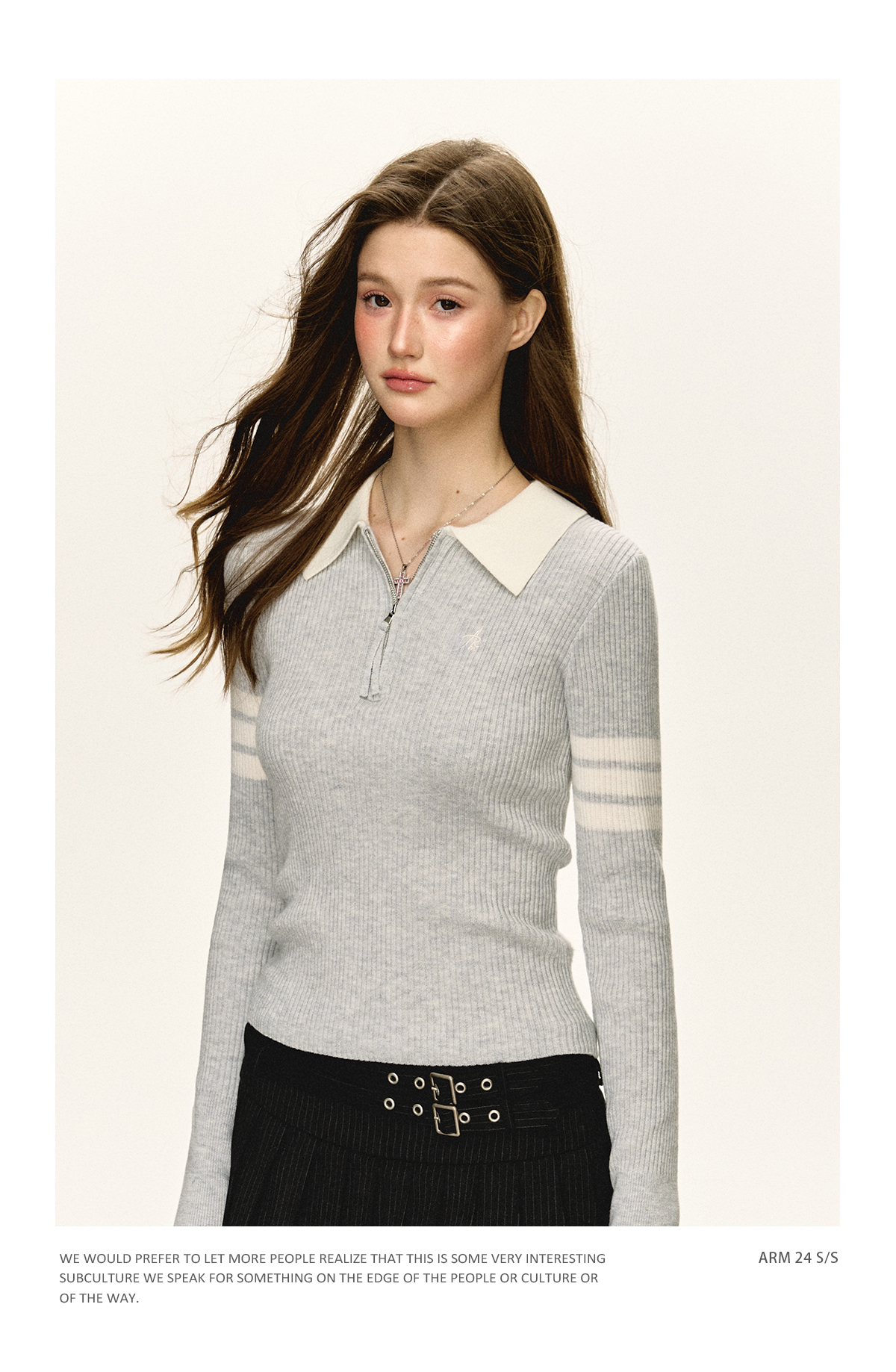 Ariseism 美式复古半拉链修身针织毛衣女春秋新款内搭打底上衣