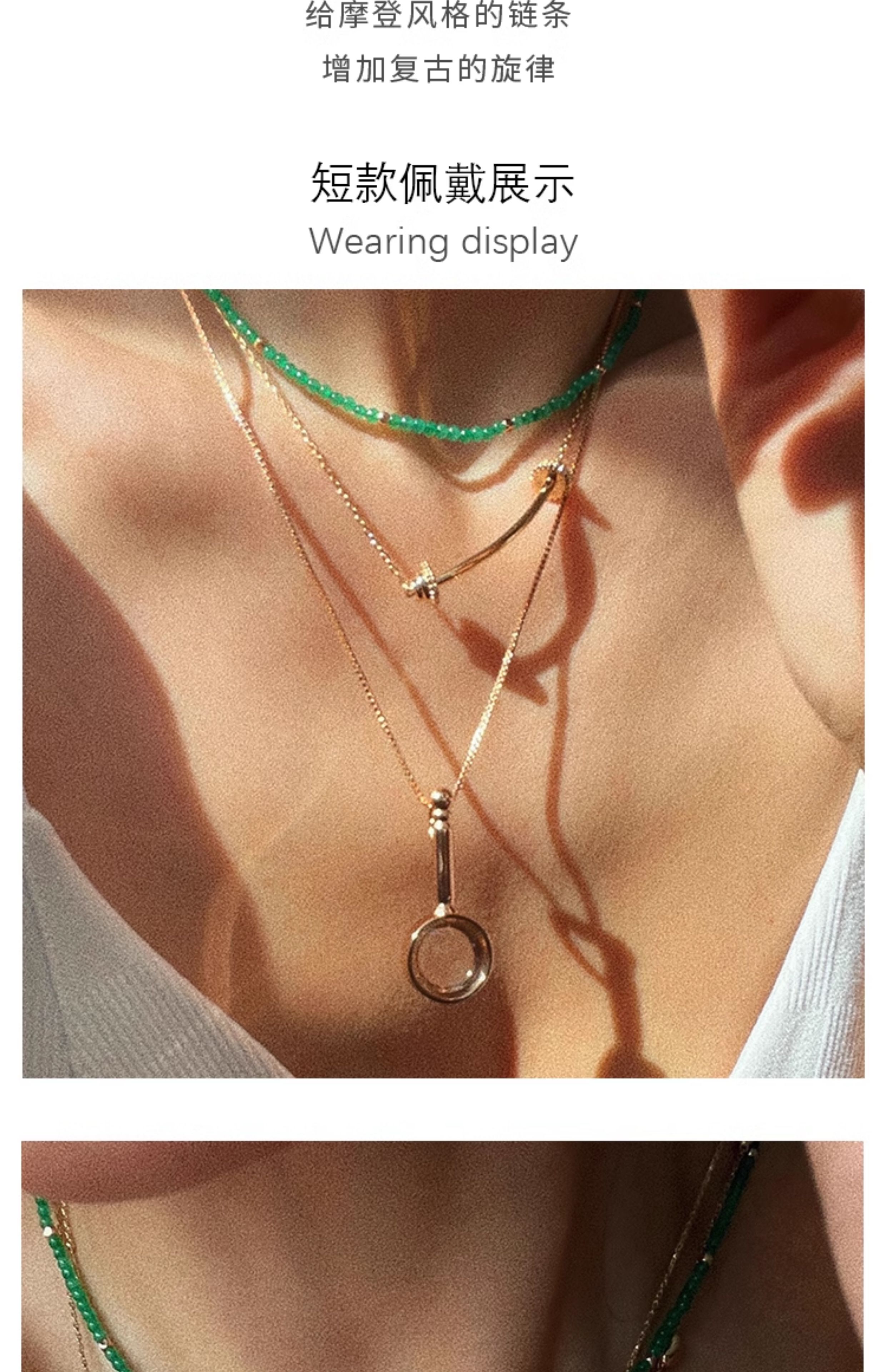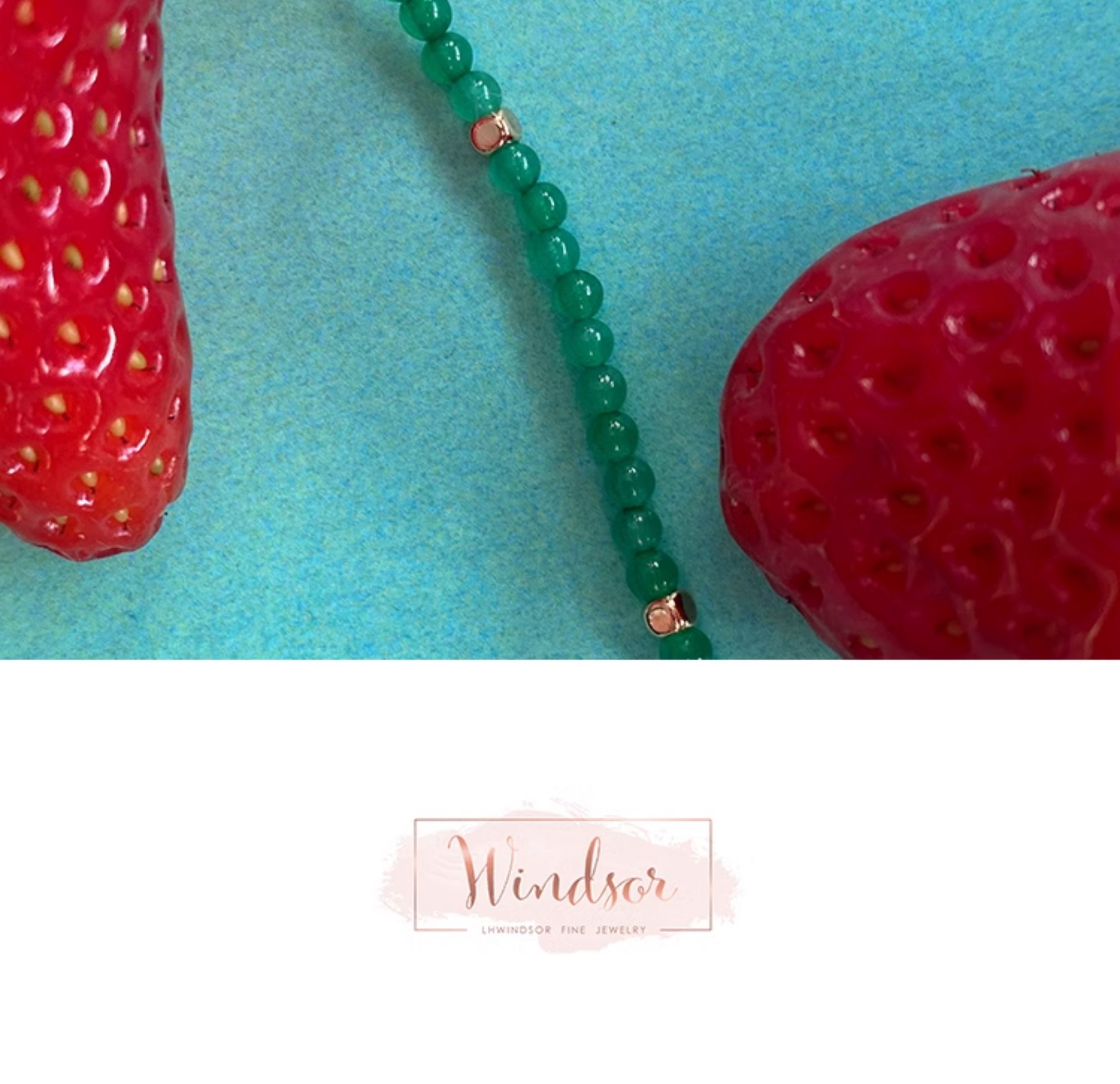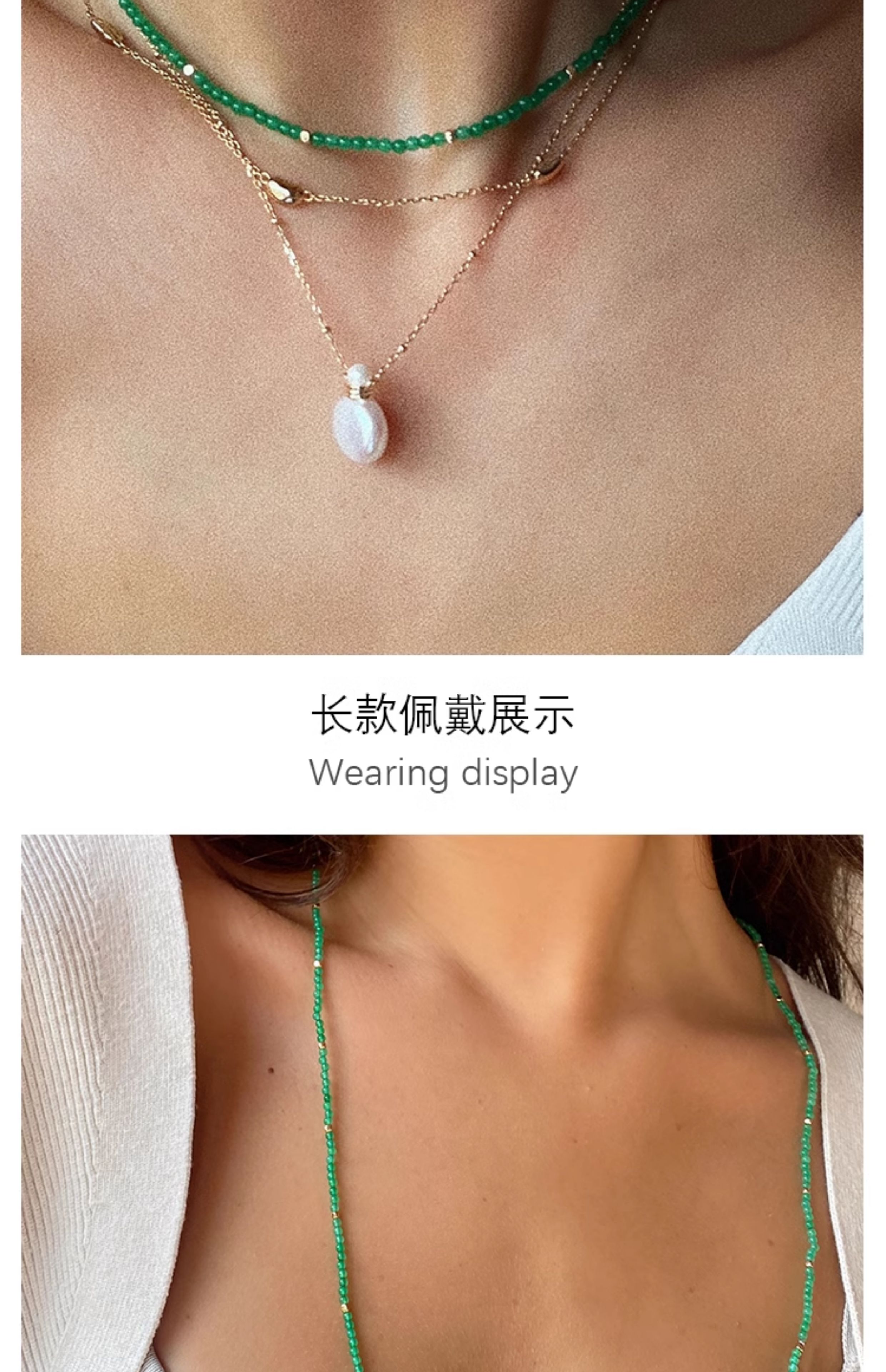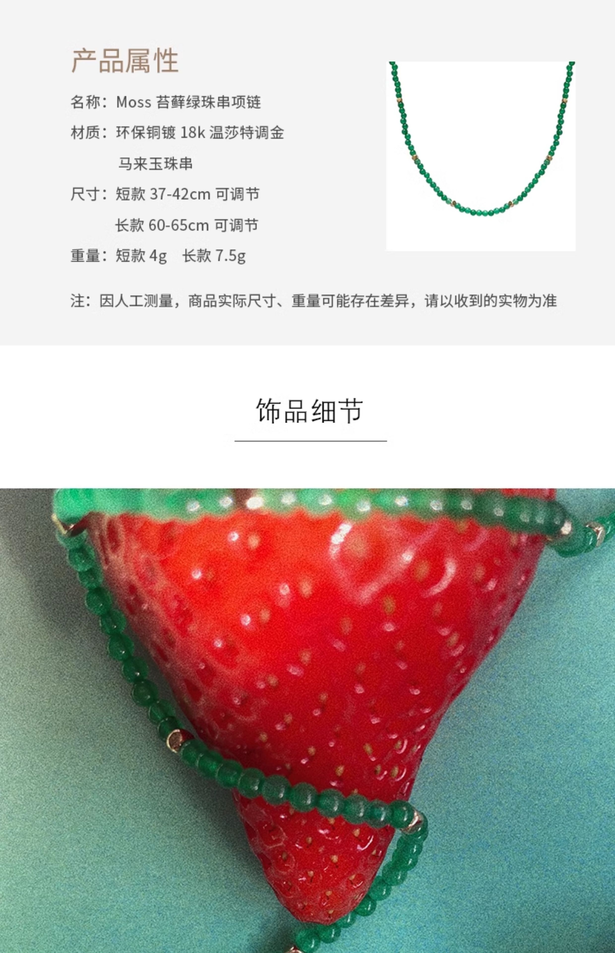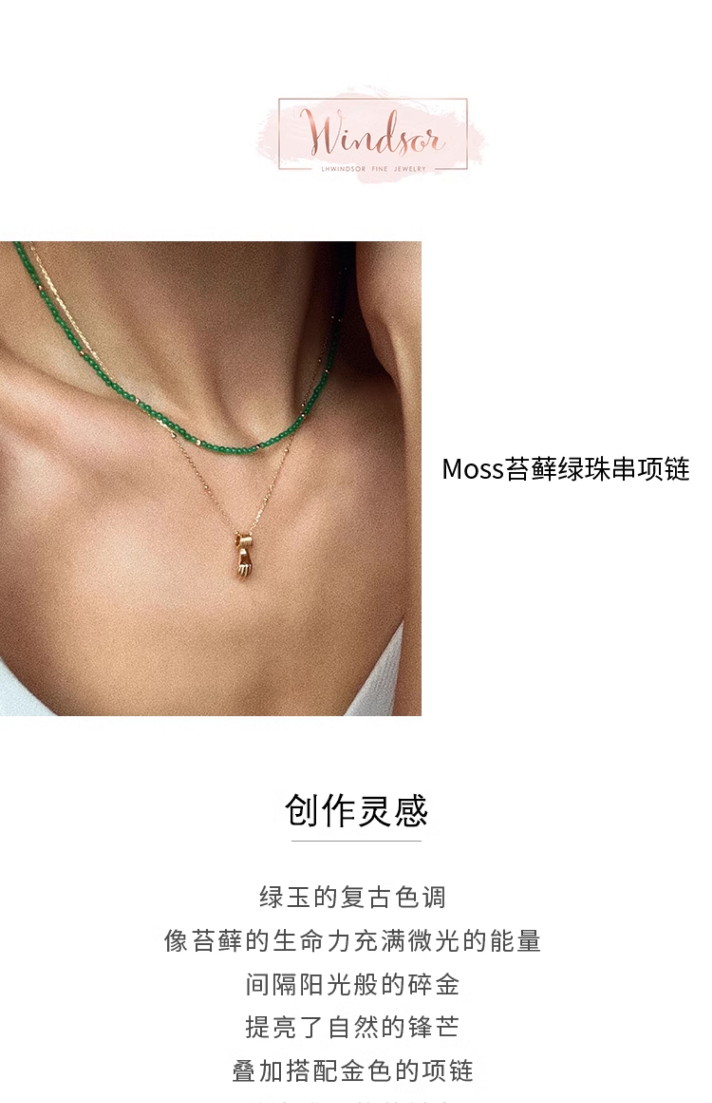 LHWINDSOR 原创设计Moss苔藓绿珠串项链复古绿镶金项链