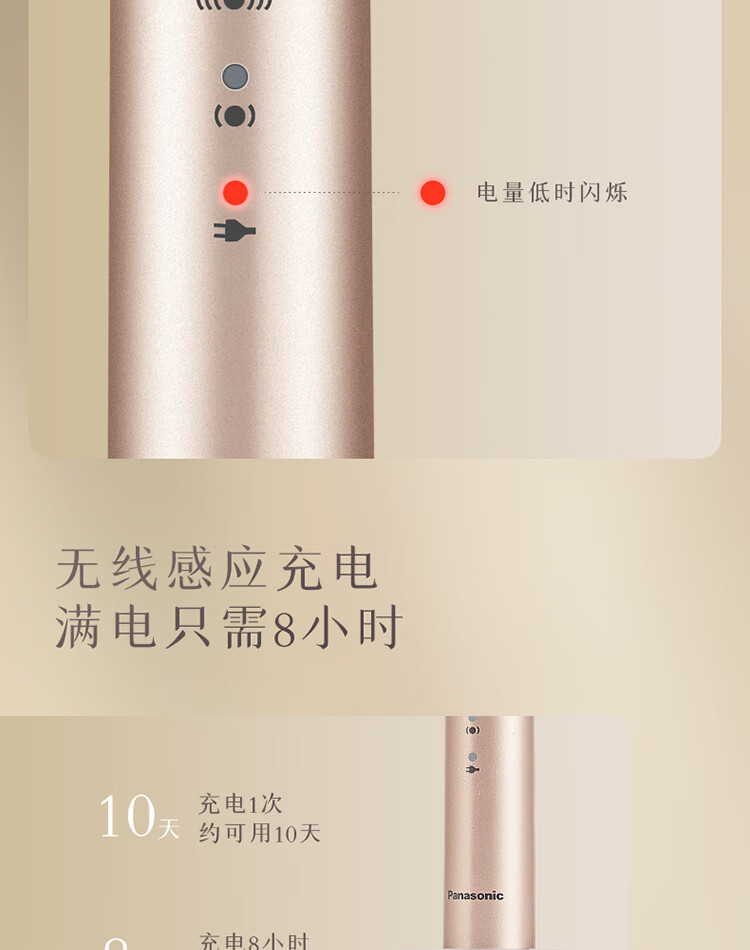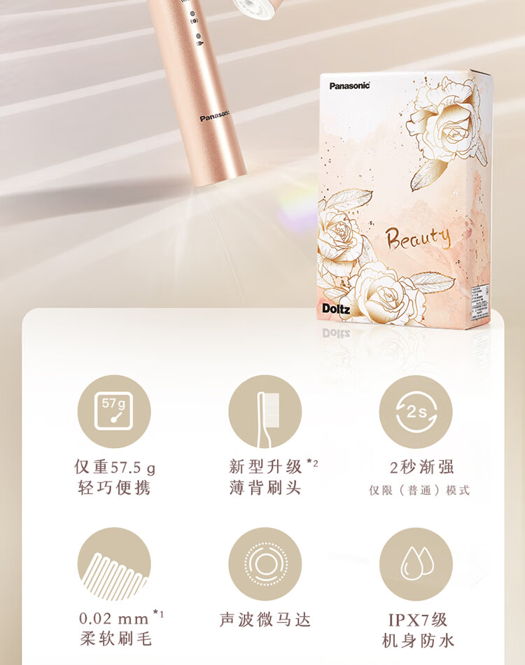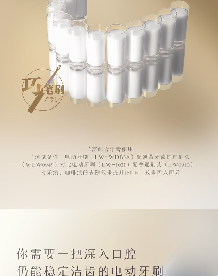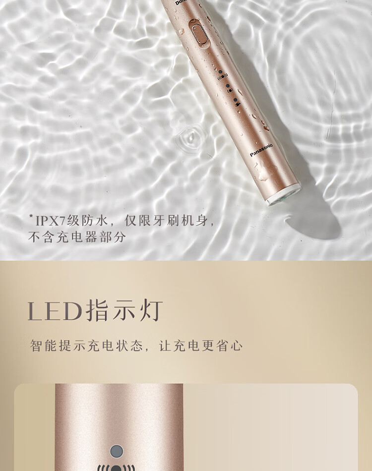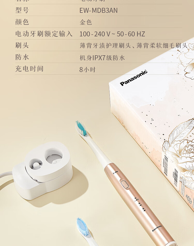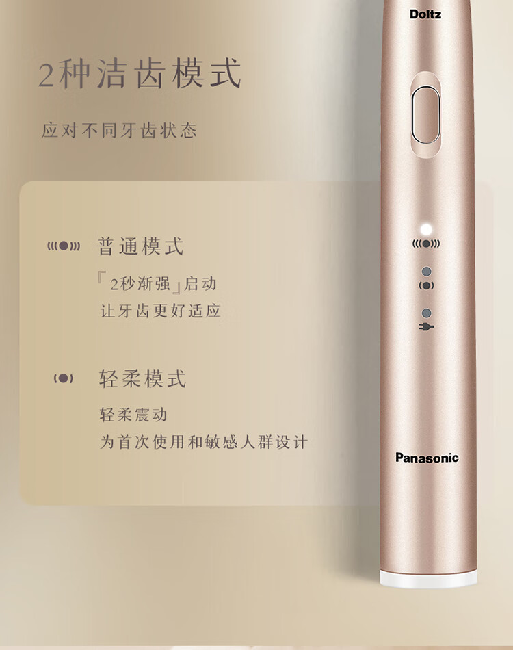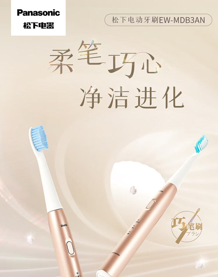 松下(Panasonic)电动牙刷声波振动舌苔清洁功能 EW-MDB3AN405 巧笔刷 金色