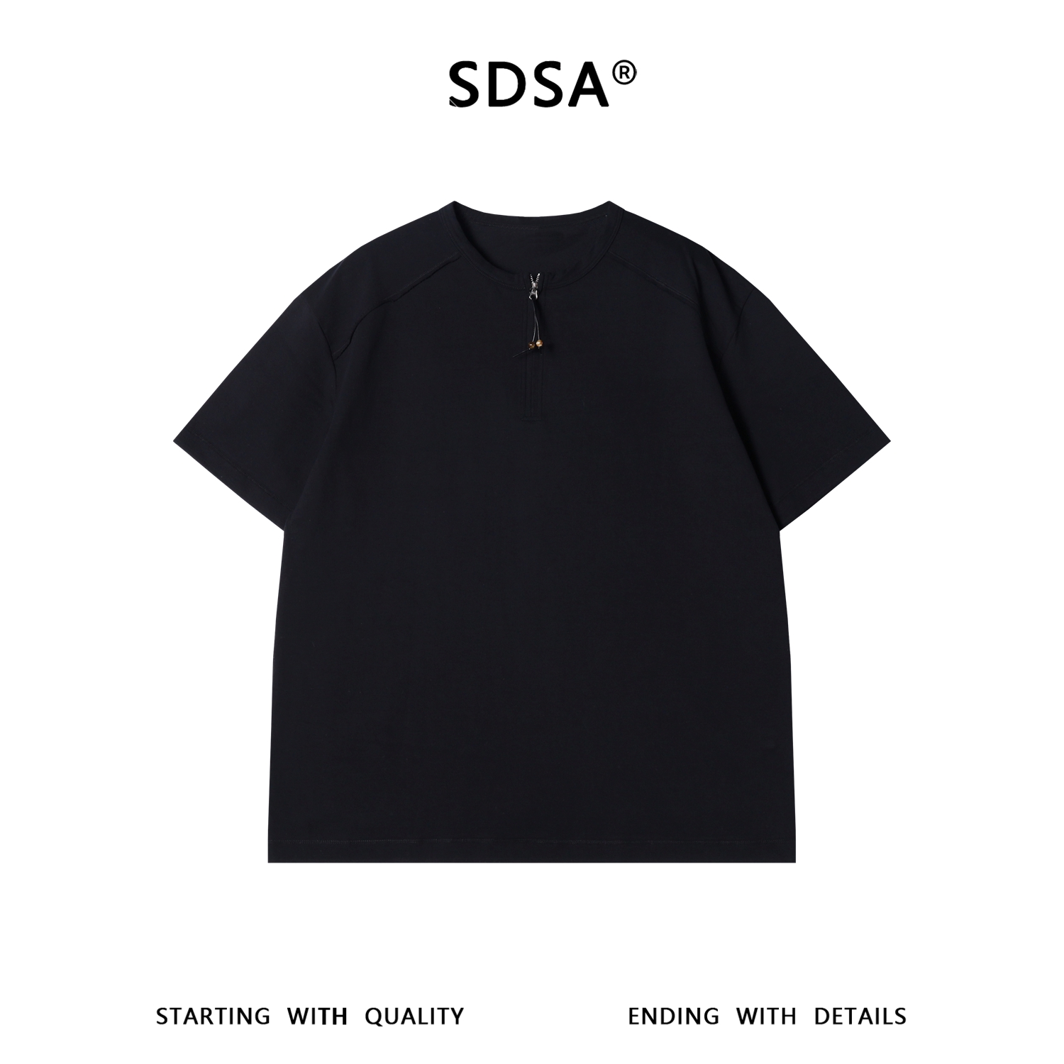 SDSA男装2026新款高贵轻奢抽绳亨利领短袖T恤宽松插肩袖休闲上衣