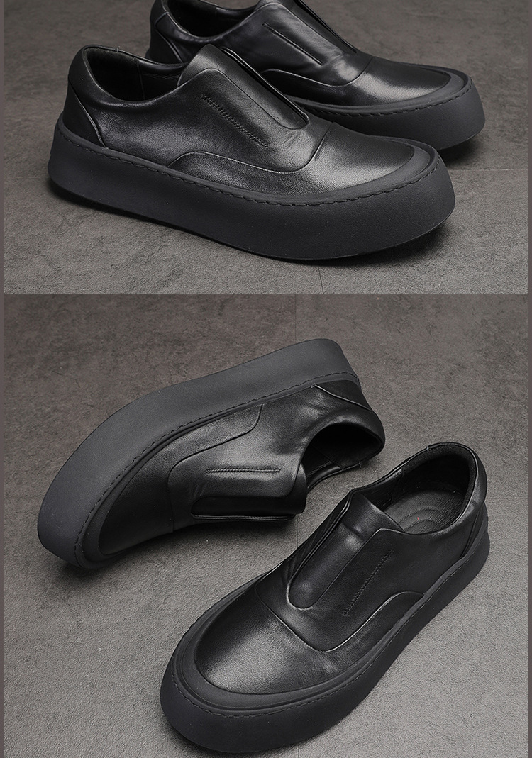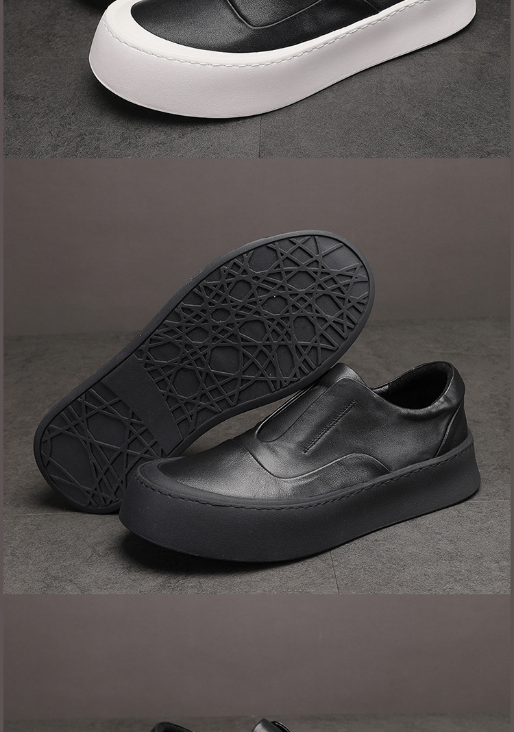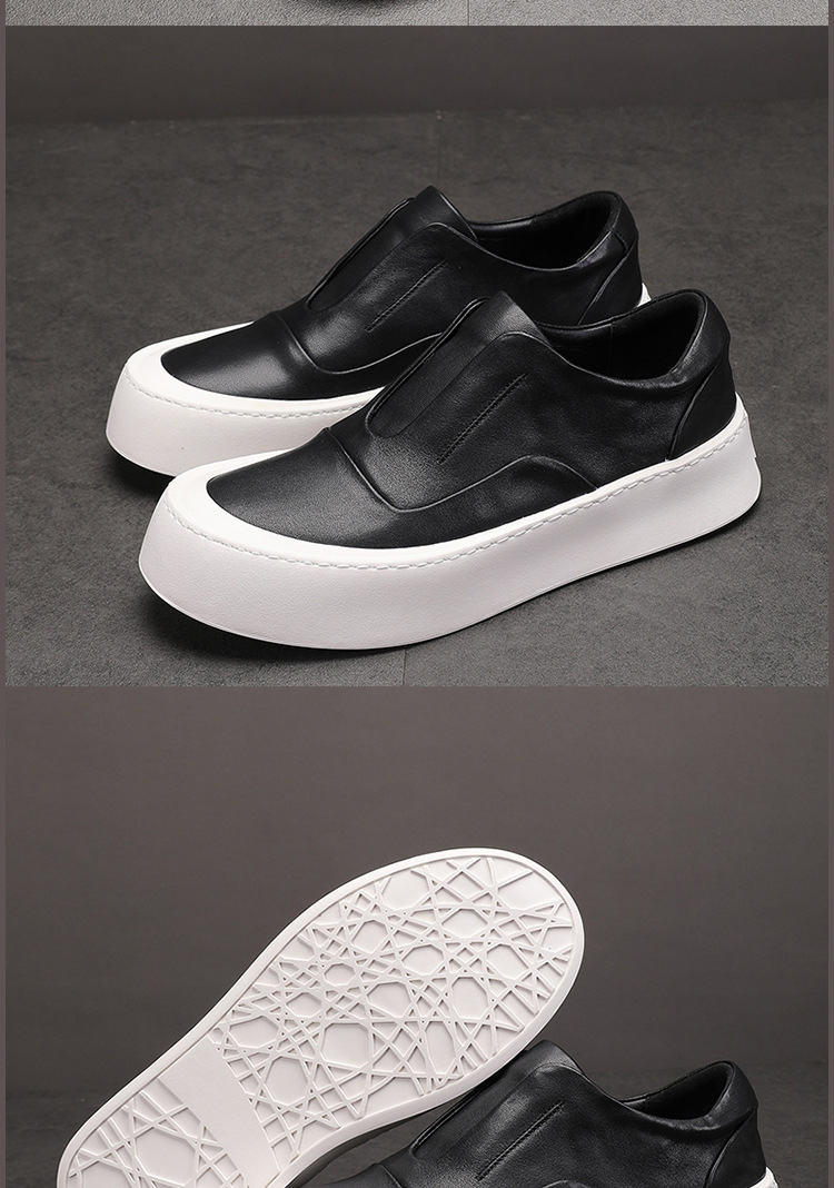 休闲皮鞋男真皮透气耐磨百搭韩版潮流鞋子小白鞋男一脚蹬懒人鞋
