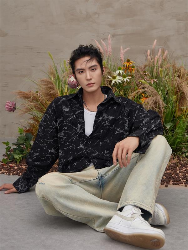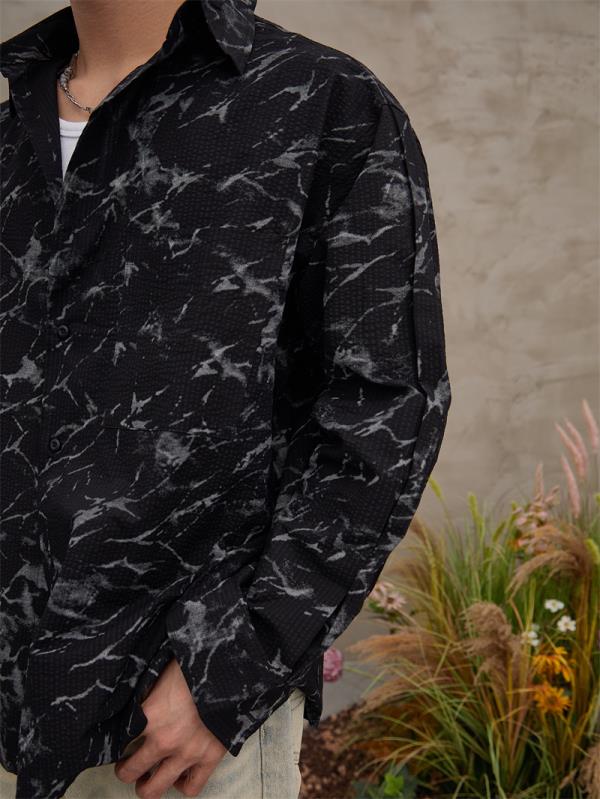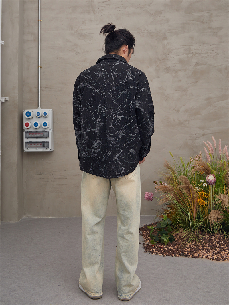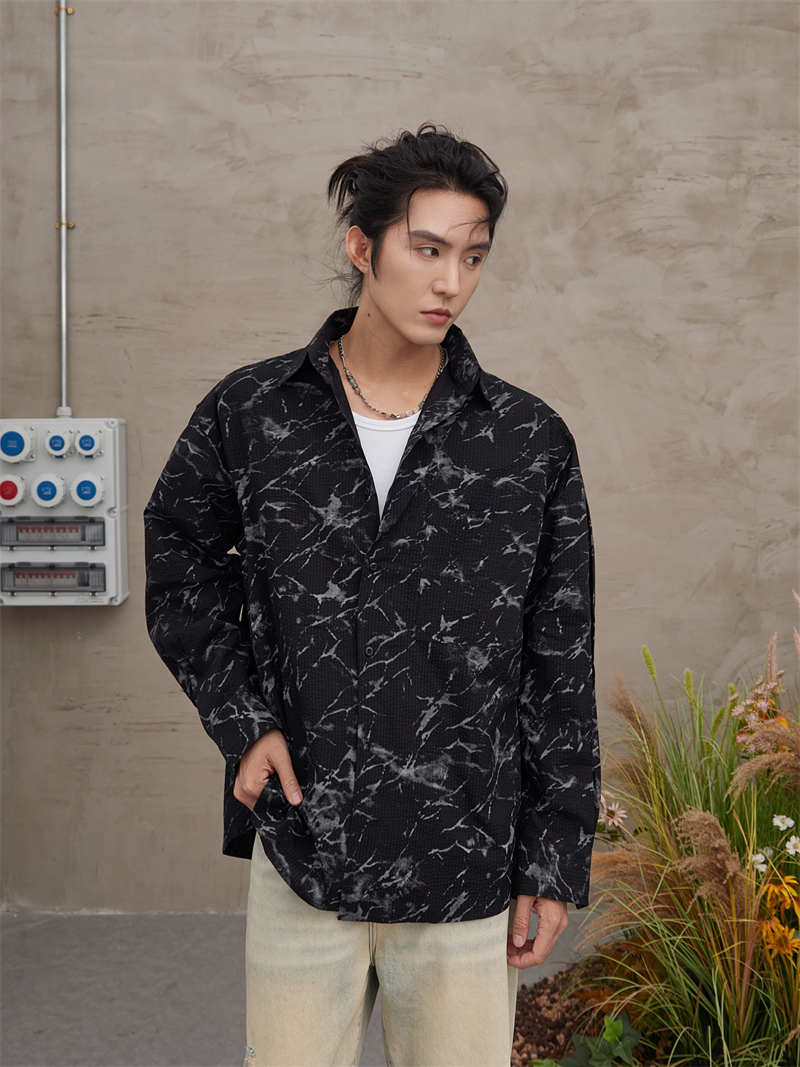 Z232712国潮嘻哈泼墨扎染印花复古宽松潮流港风休闲长袖