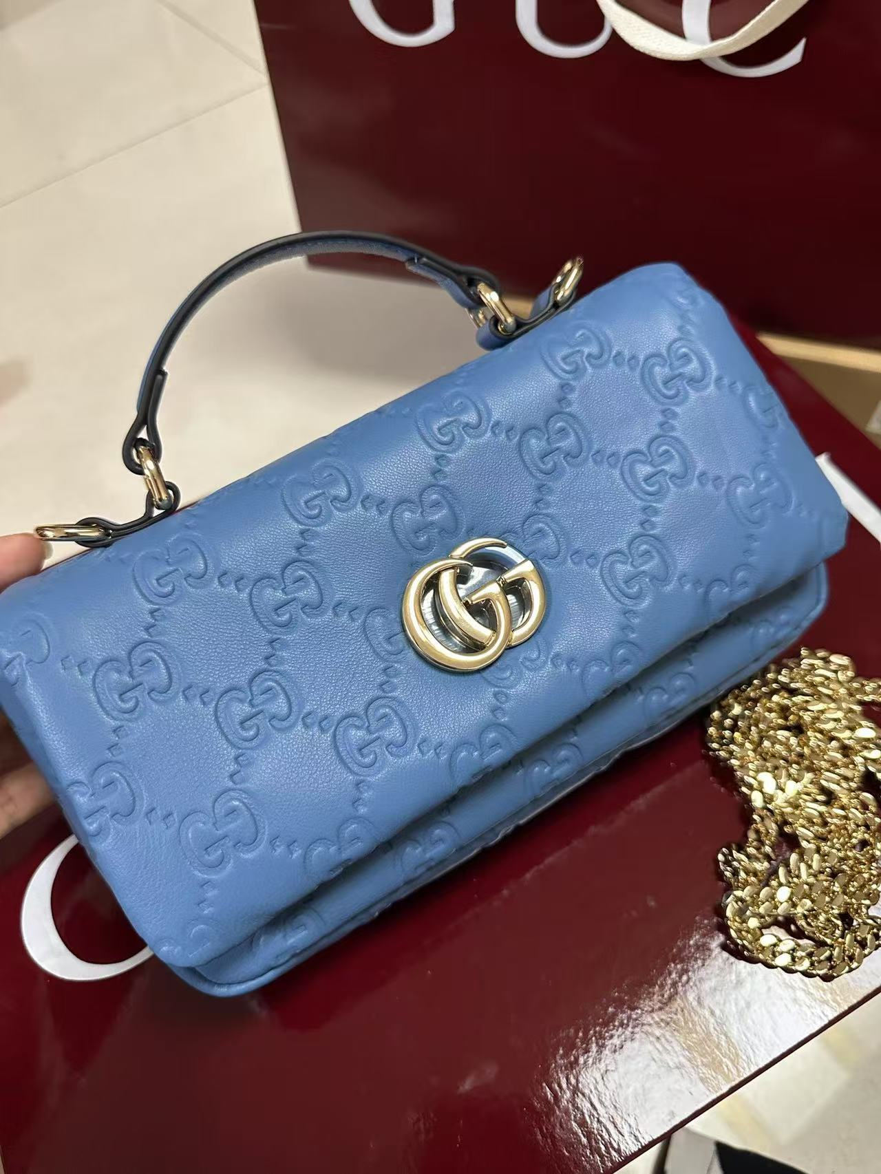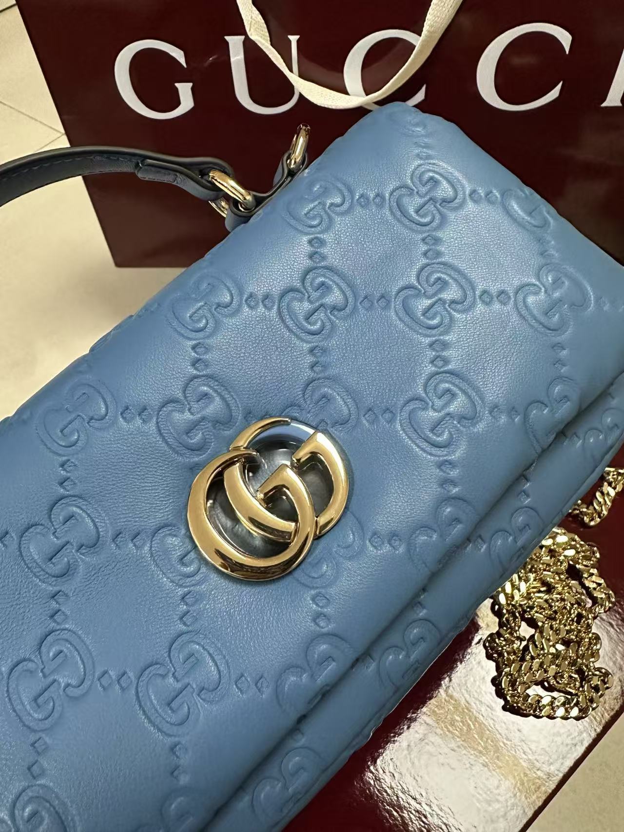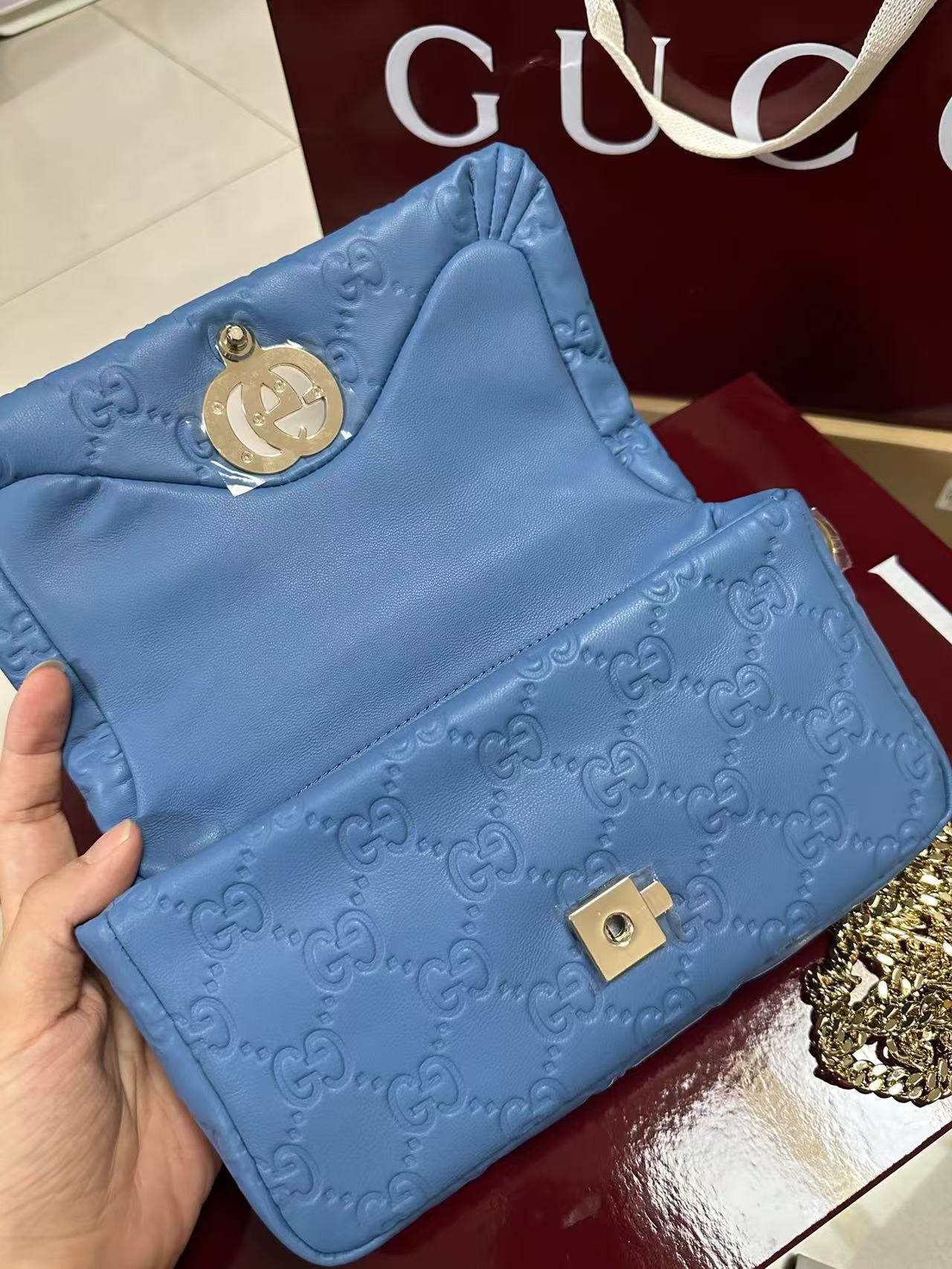 gg 系列手提包首度亮相2024秋冬时装秀,致敬米兰这-设计灵感来源之城。这款手提包匠心融蕴全新双g造型配件,选用触感柔软丝滑的蓬松皮革。链式包带赋予这款包袋更多造型潜力;轻松打造肩背或斜挎造型。