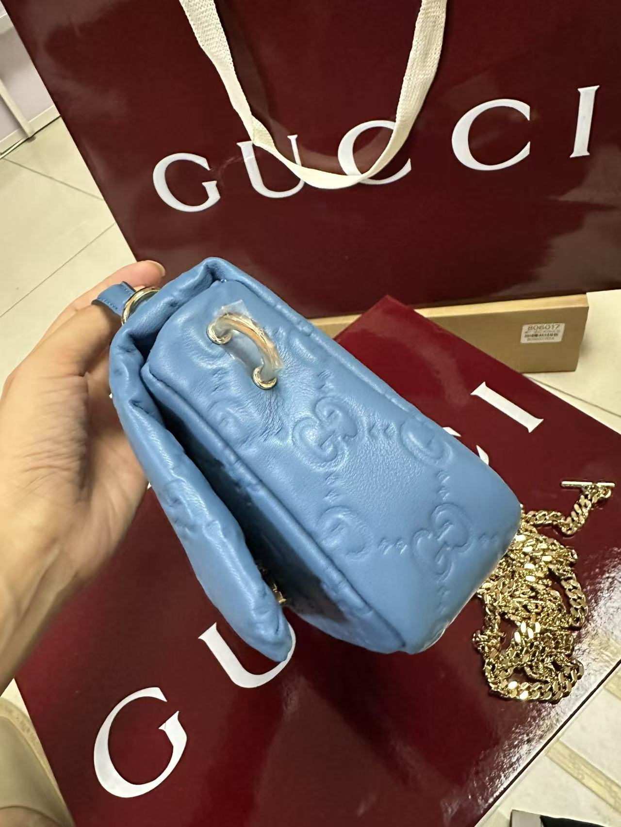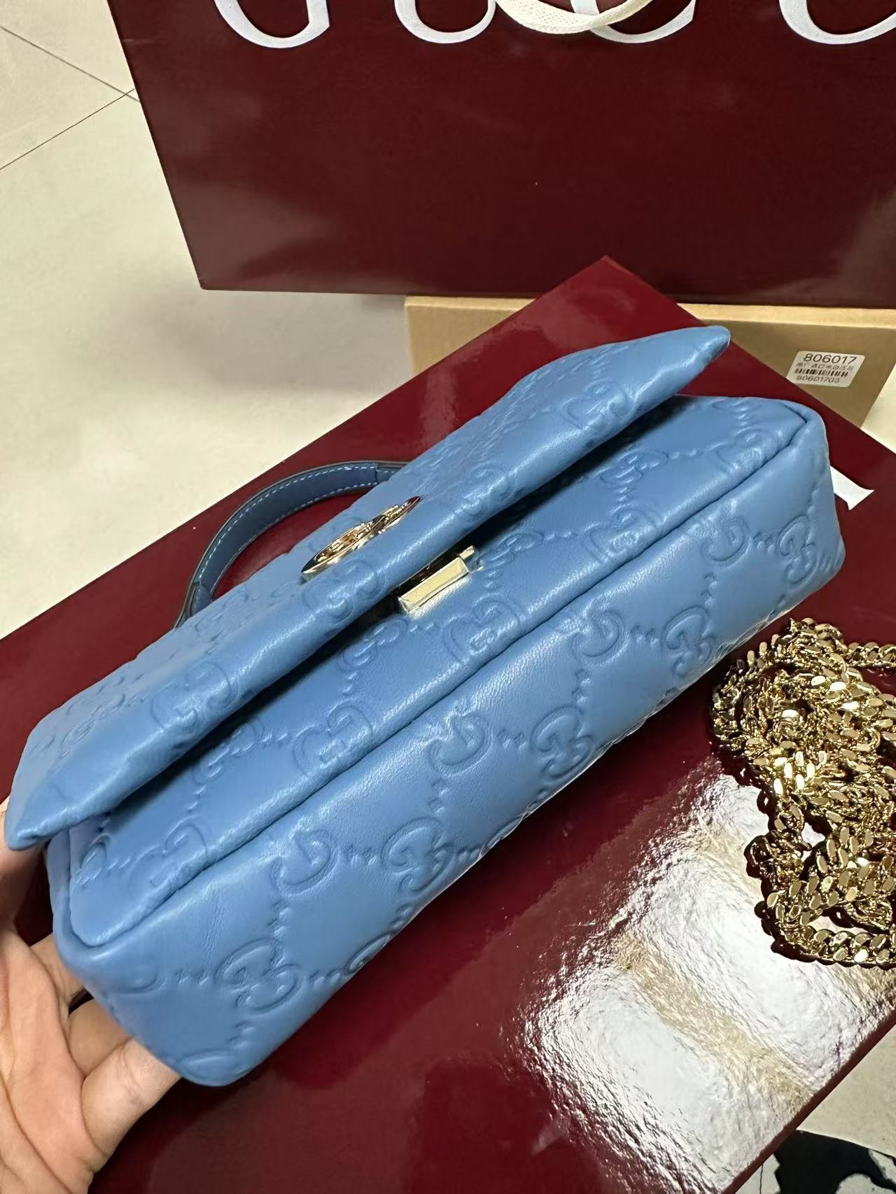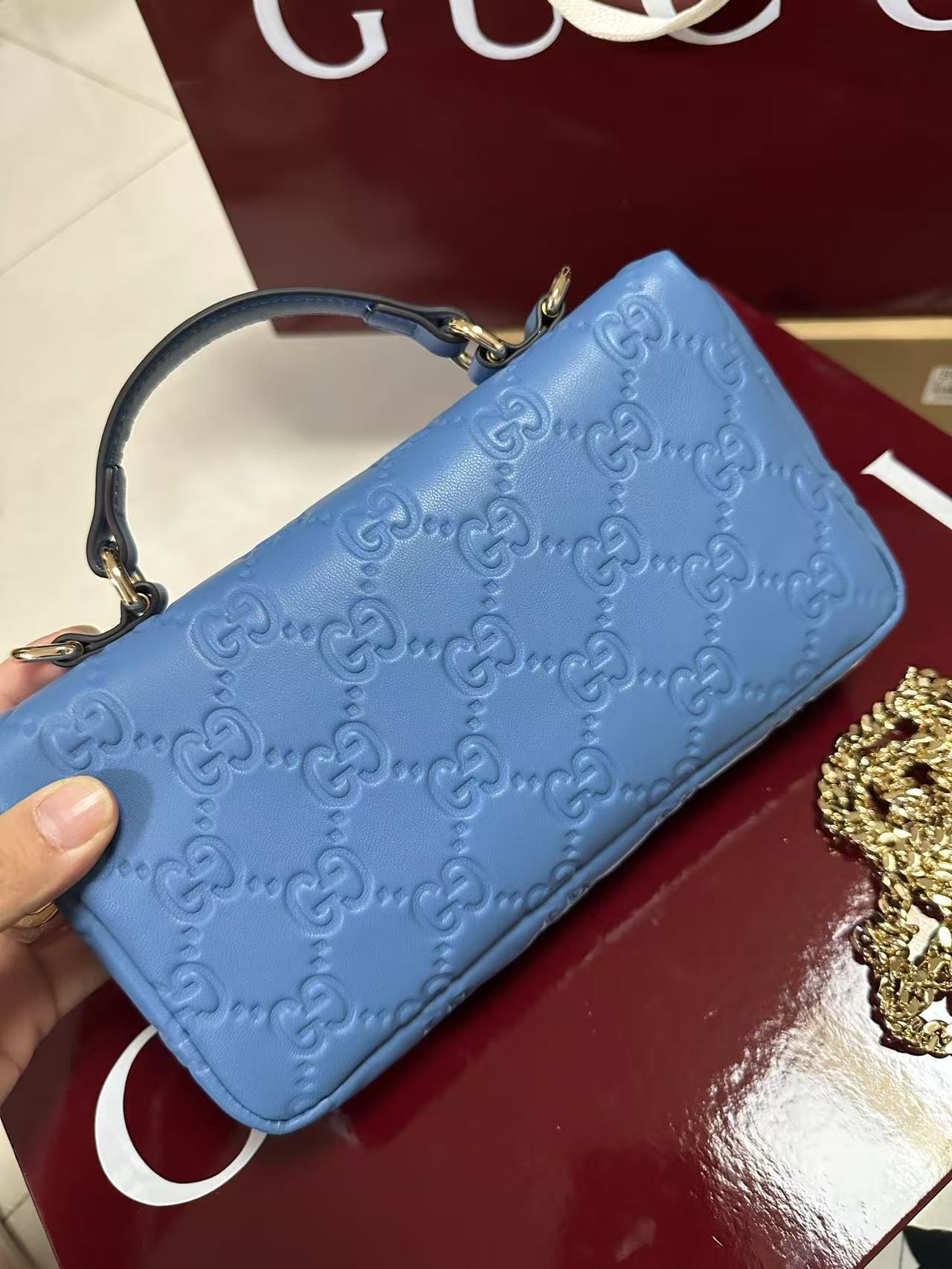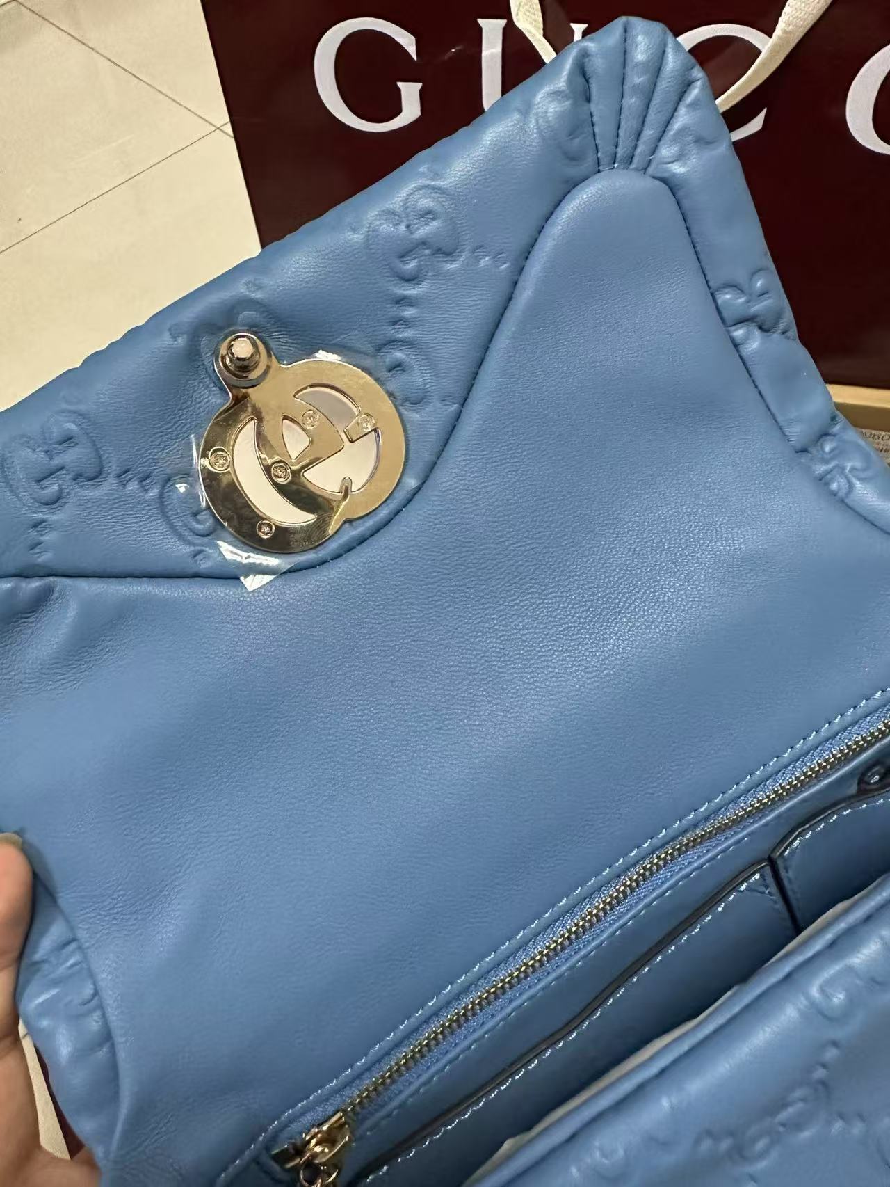 gg 系列手提包首度亮相2024秋冬时装秀,致敬米兰这-设计灵感来源之城。这款手提包匠心融蕴全新双g造型配件,选用触感柔软丝滑的蓬松皮革。链式包带赋予这款包袋更多造型潜力;轻松打造肩背或斜挎造型。