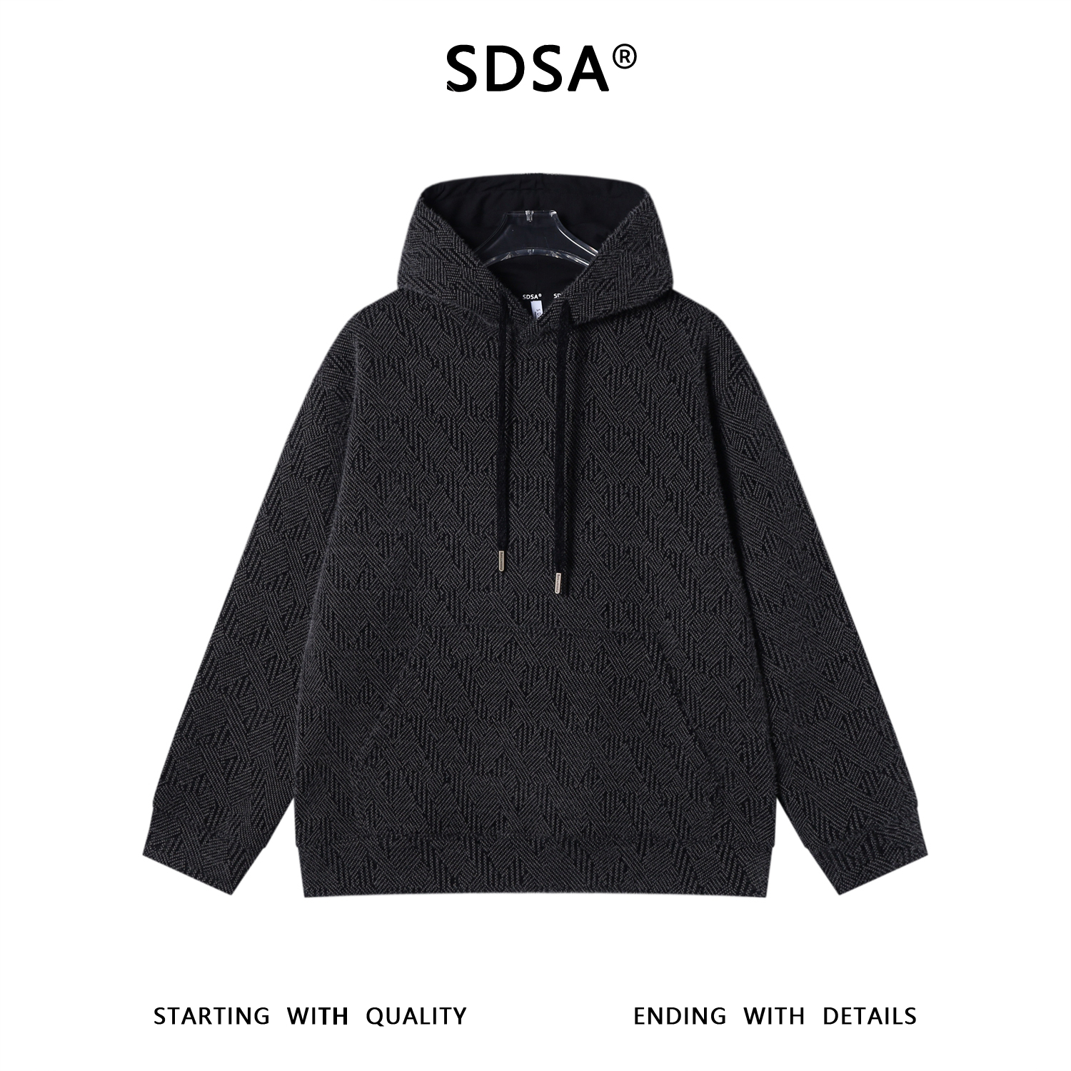 WY1328SDSA男士秋冬新款痞帅男装潮牌撞色格纹抽绳连帽卫衣时尚宽松百搭