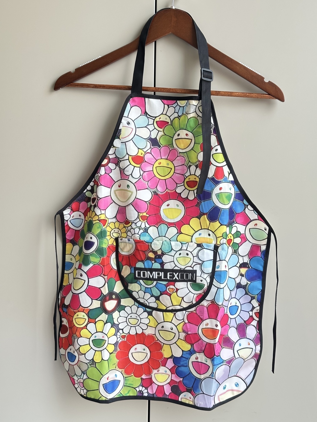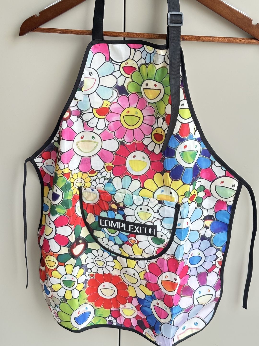 谈及日本当代艺术家村上隆,人们第一印象就是标志性的太阳花,而这件限定儿童防水围裙正面满印太阳花,更直观的感受到村上隆希望通过鲜艳的色彩和可爱的形象,让看到太阳花的人感到开心。小小绘画家天马行空,画画也不用担心弄脏衣服,围裙采用高密度耐污面料,表层形成分子屏障,能够阻挡水性污垢、油性污垢、干性污垢和灰尘,调节肩带设计,舒适不勒脖,后背绑带设计,透气不憋闷,夏天也不闷热,穿戴轻便,柔软易卷,叮当口袋,可放零食物品等,多场景使用。围裙衣长60cm,宽45cm,可自由调节长短。