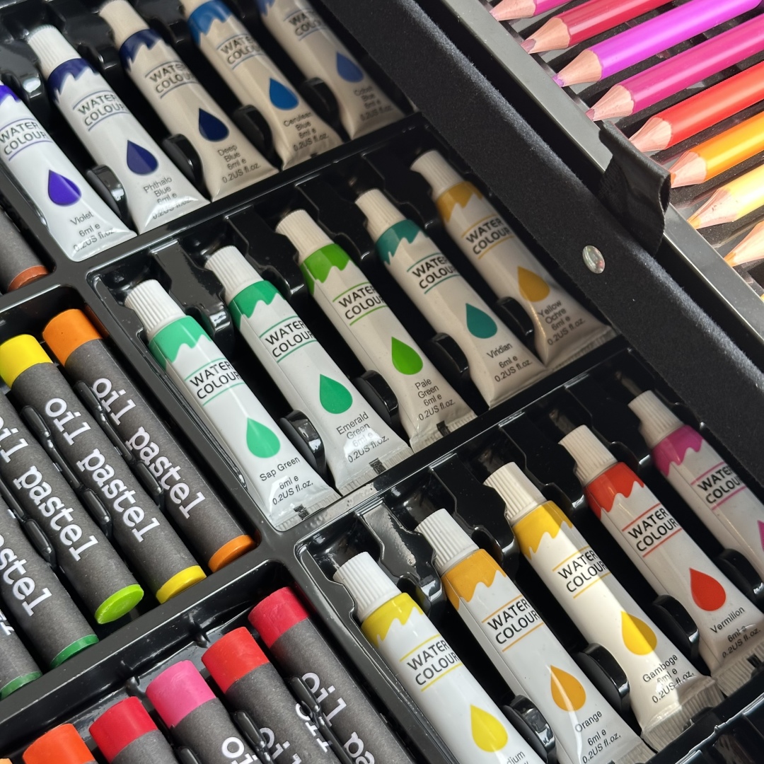 水彩笔采用可水洗配方,水溶性高,容易清洗,出水更流畅,笔杆易抓握; 彩铅色彩鲜艳,矿物质彩芯,涂色顺滑; 蜡笔颜色饱满细腻,安全色素无异味; 颜料膏体均匀细腻,密封性好,色彩丰富; 固体水彩粉块经久耐用,干后不易发灰,蹭而不掉粉。