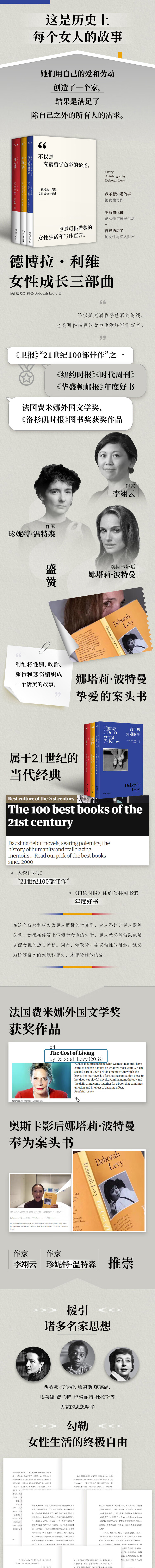 德博拉·利维女性成长三部曲(3册套装)不仅是充满哲学色彩的论述,也是可供借鉴的女性生活和写作宣言