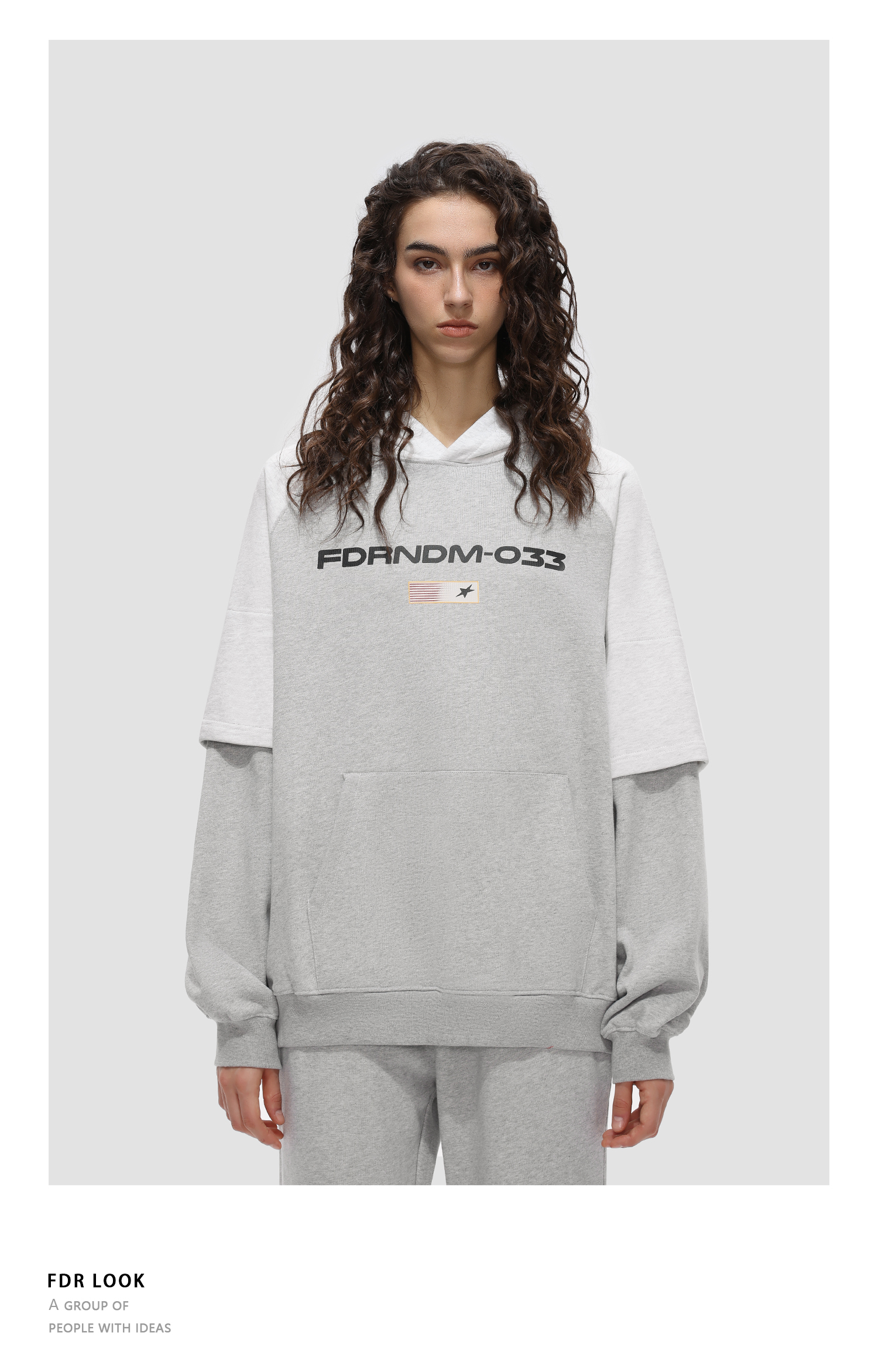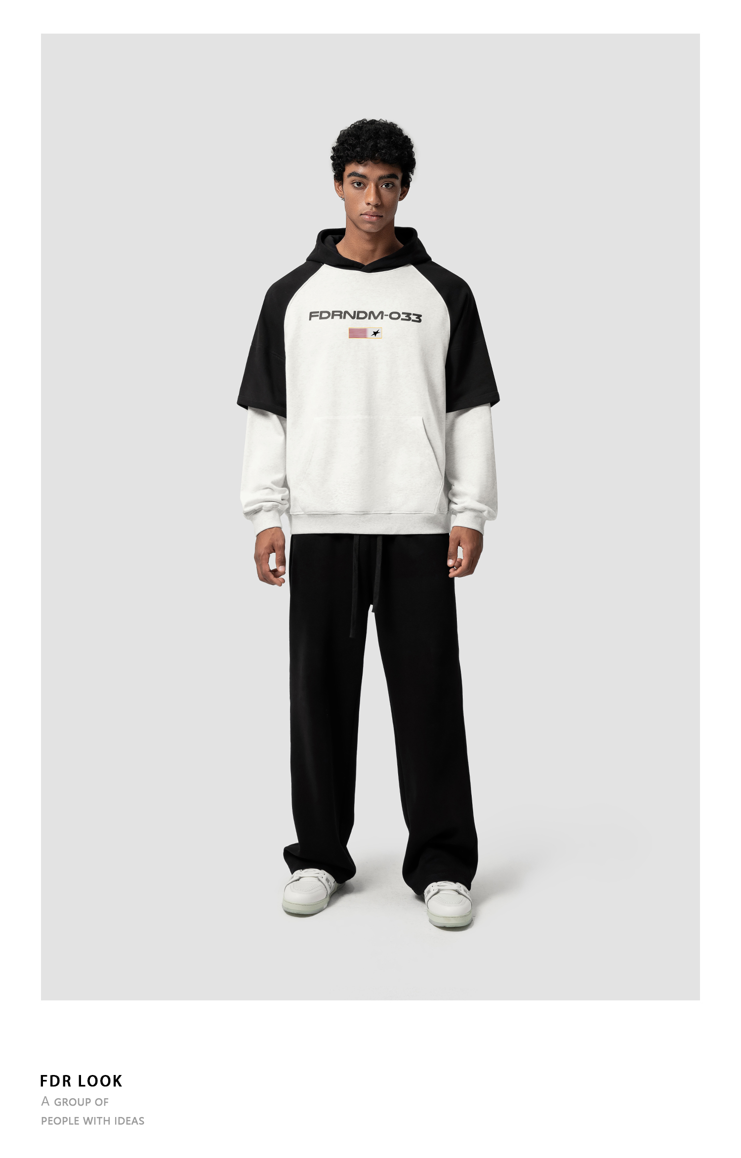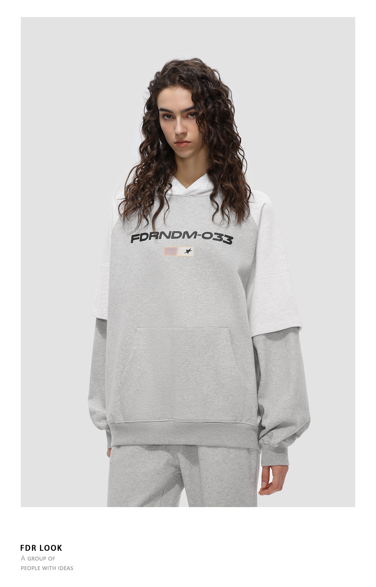 FDR原创国潮美式连帽假两件旗帜卫衣男女春秋季重磅宽松情侣上衣