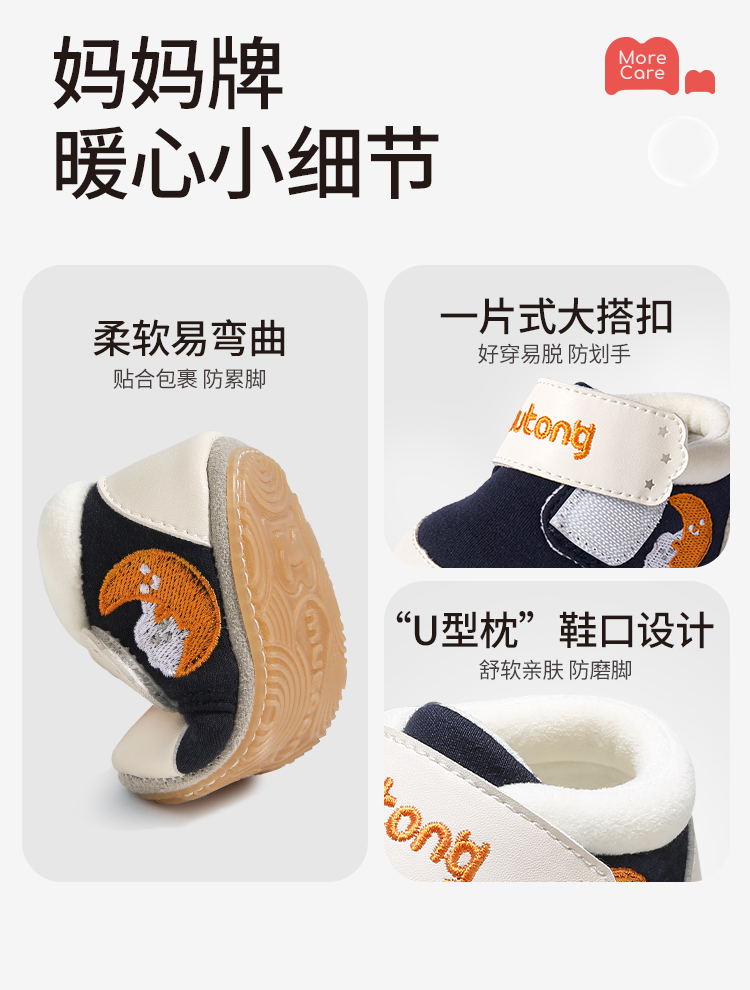牧童2025冬季加绒步前鞋婴幼儿保暖加绒学步鞋防滑软底二棉机能鞋