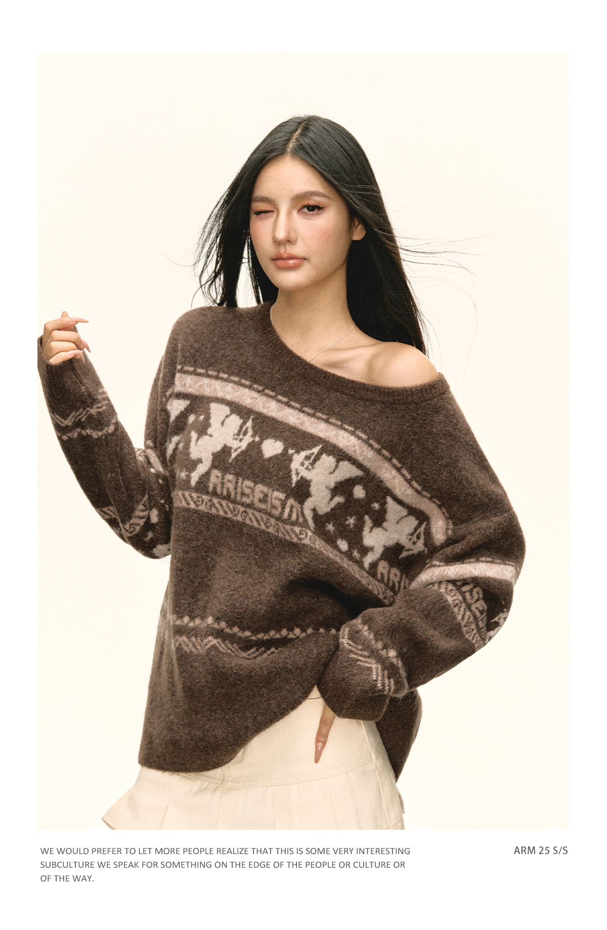 Ariseism 美式复古红色斜肩修身短袖t恤女夏季新款辣妹打底上衣