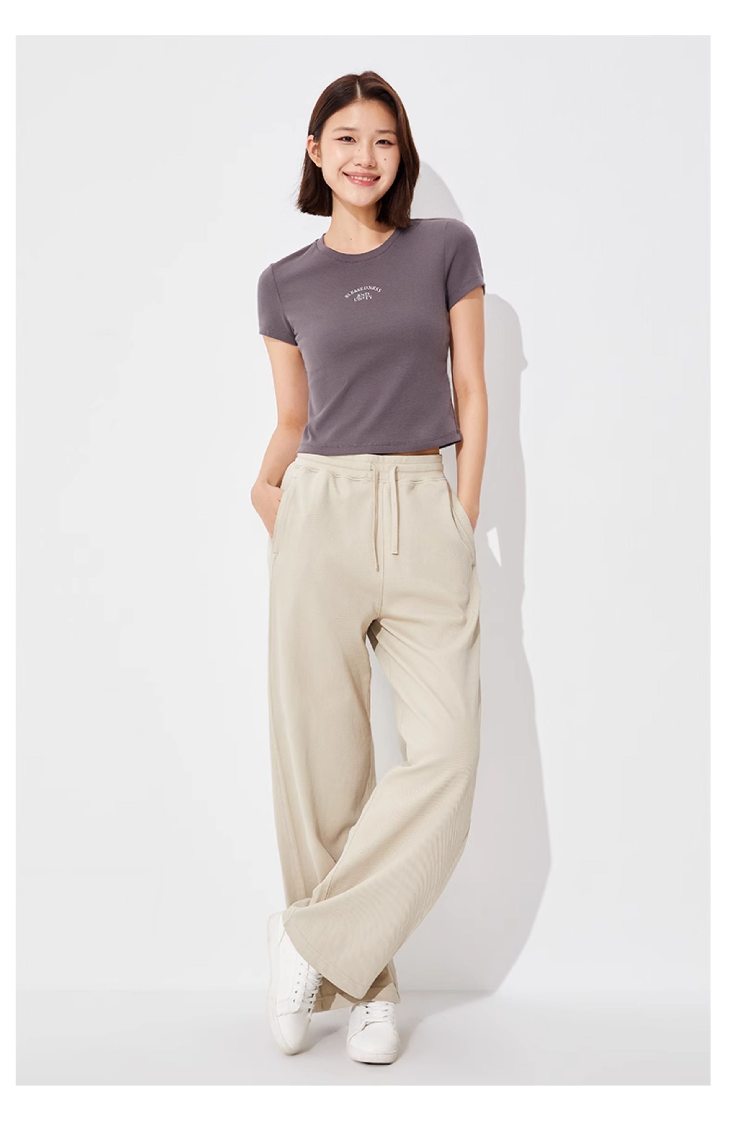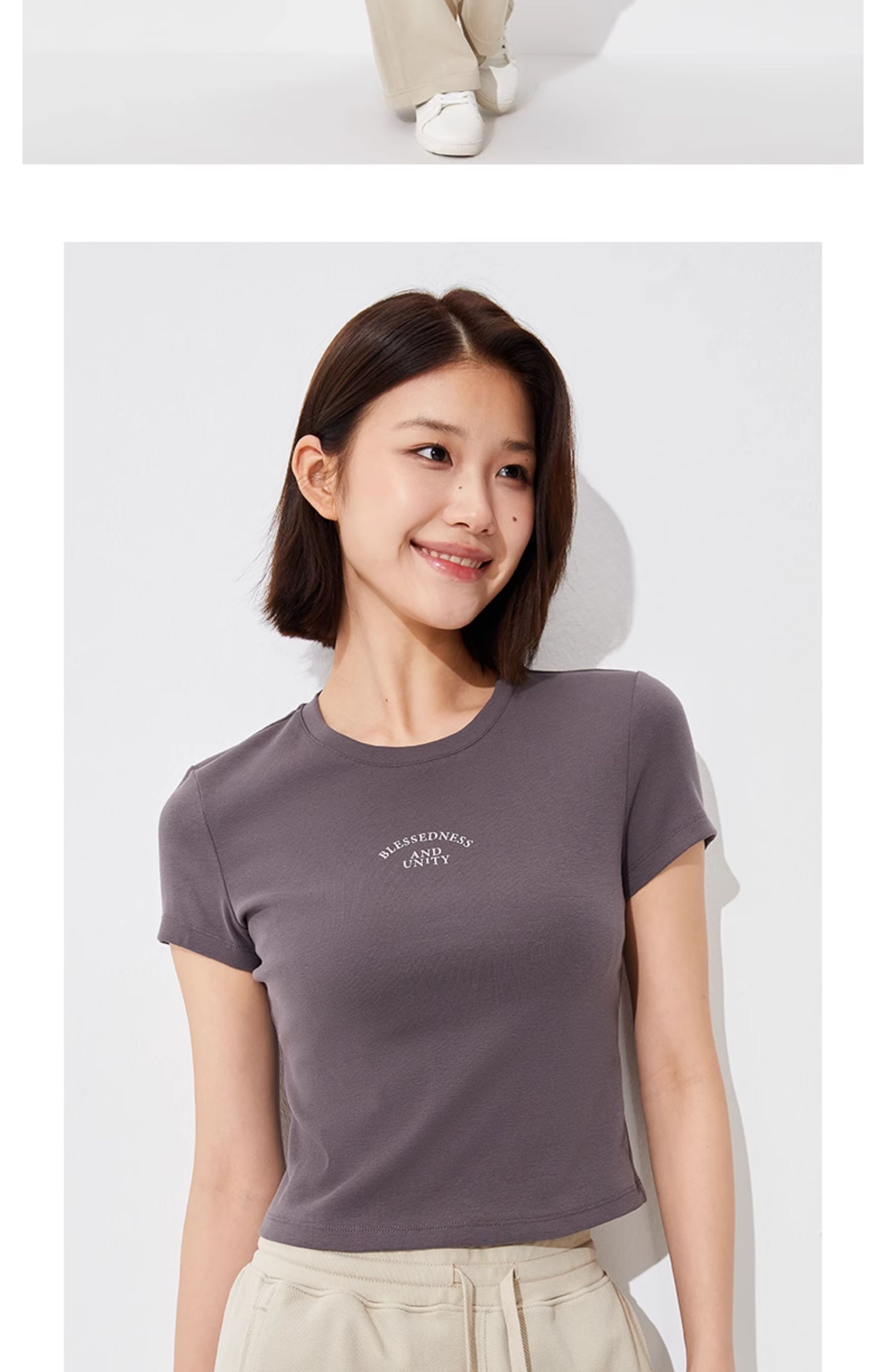 【门店同款】极简风全棉女180G重磅柔软圆领百搭长袖T恤1Q1222207
