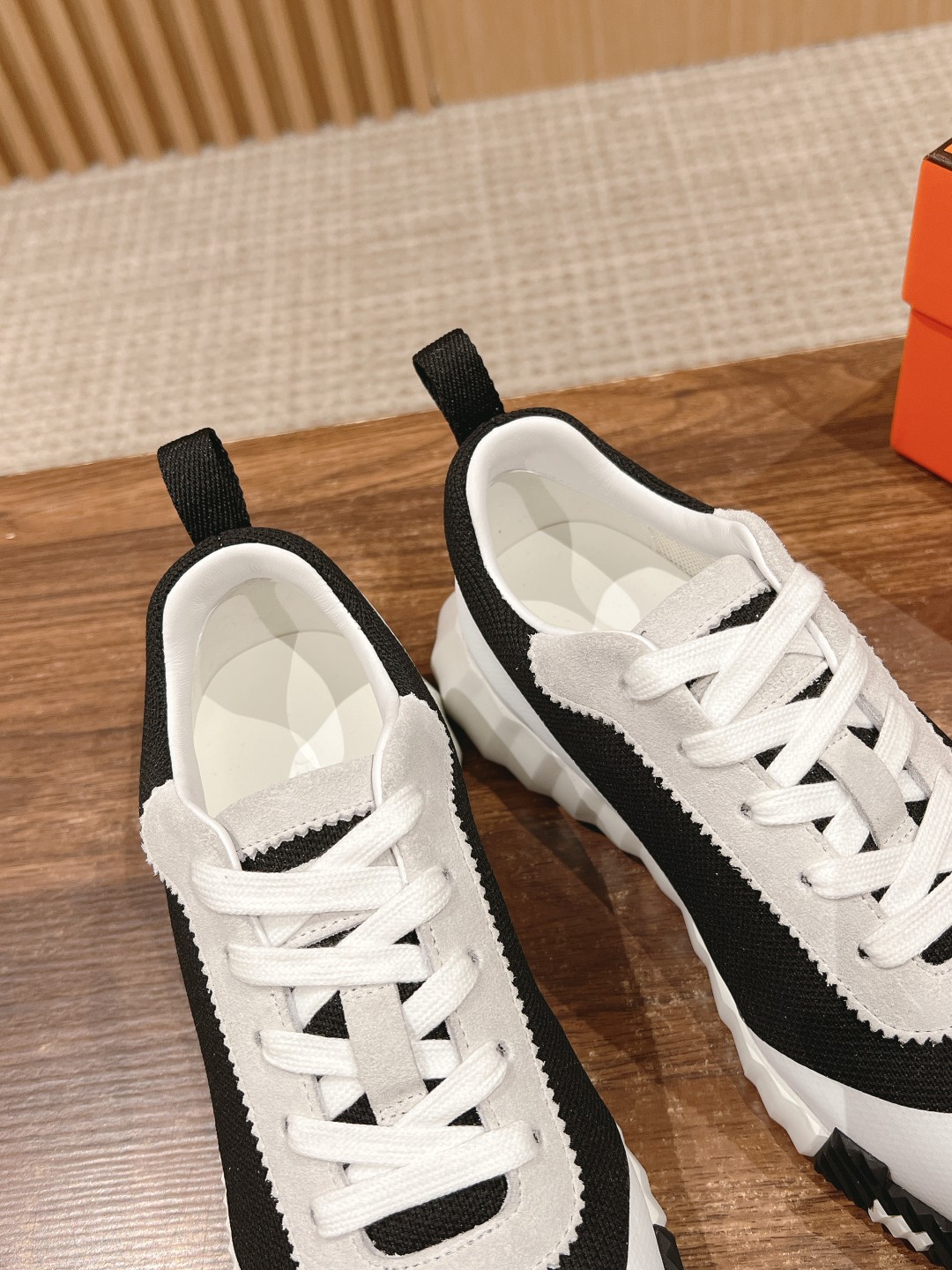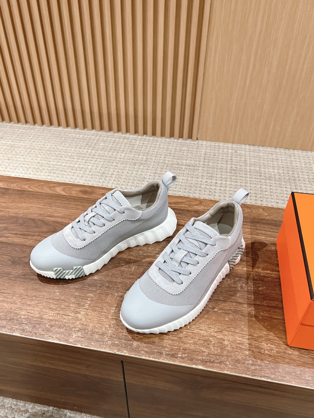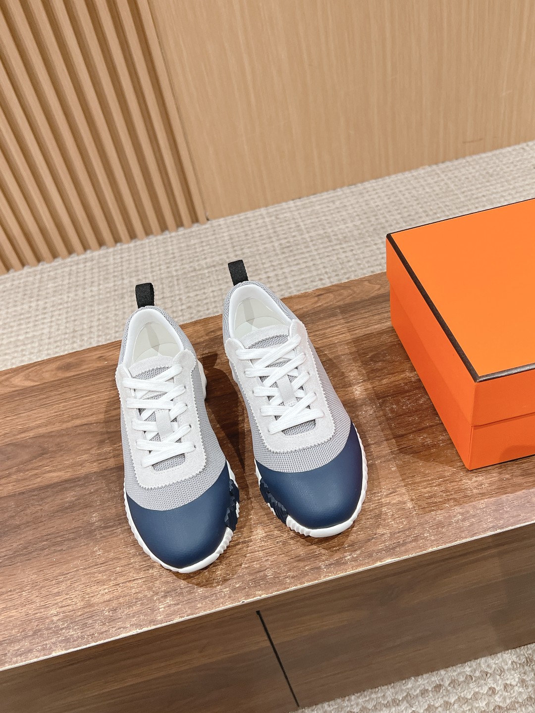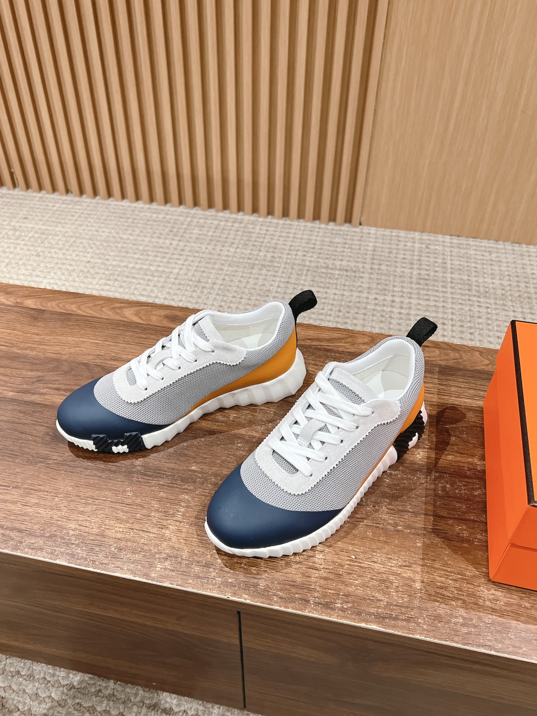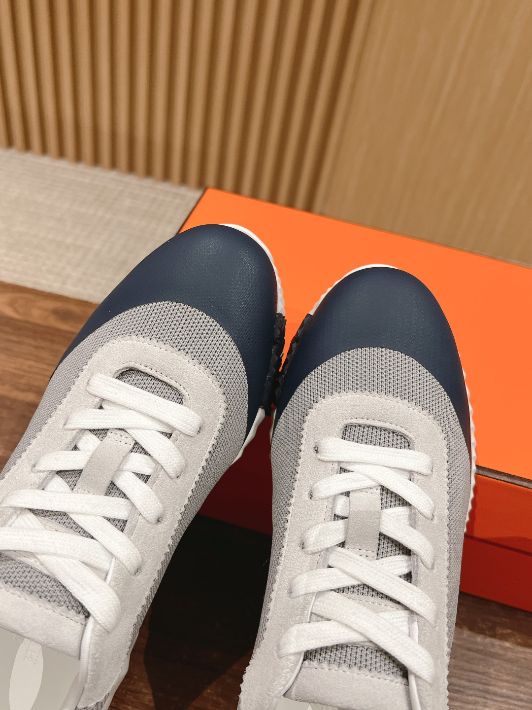 爱马*情侣款休闲鞋 麂皮搭拼接网布运动鞋。
