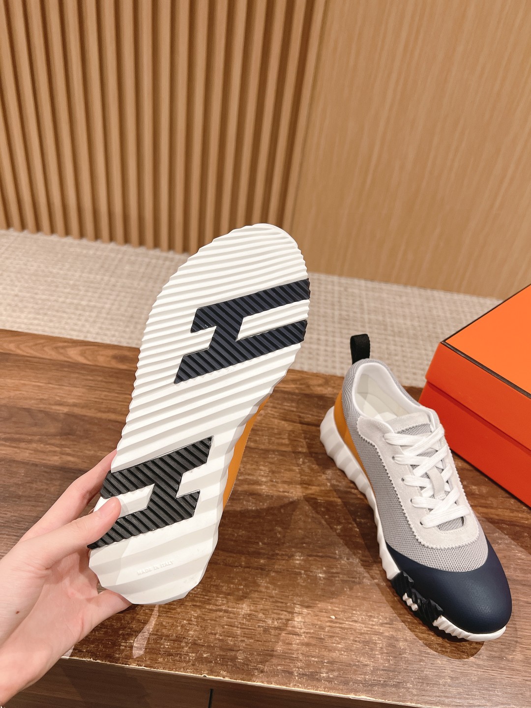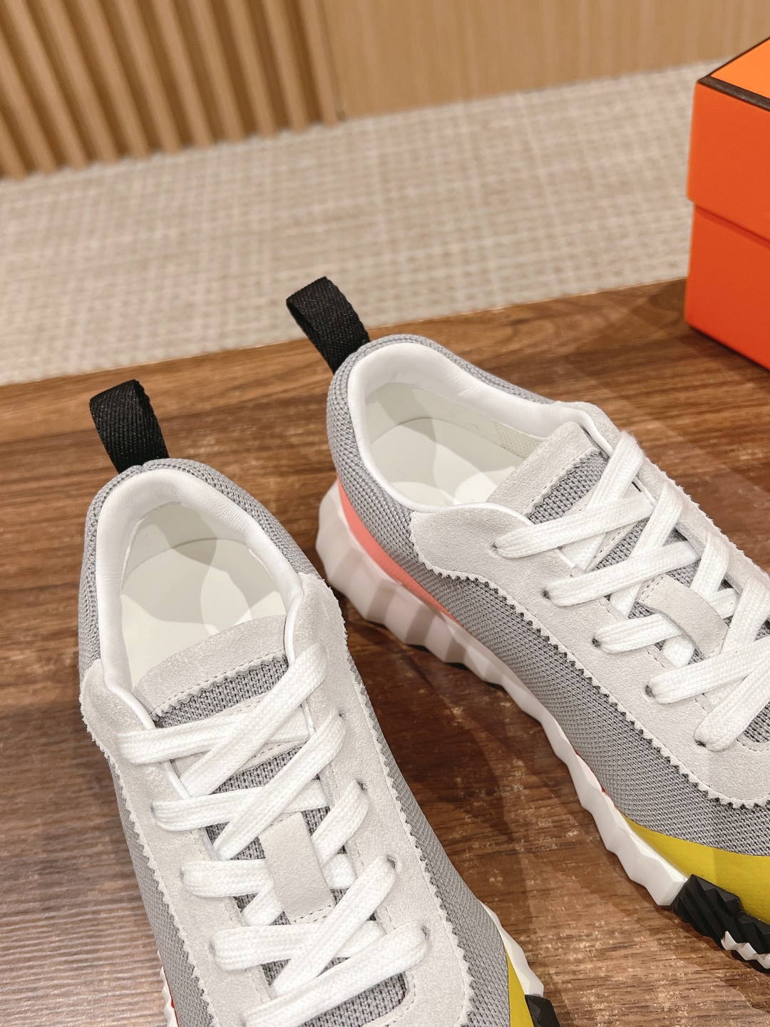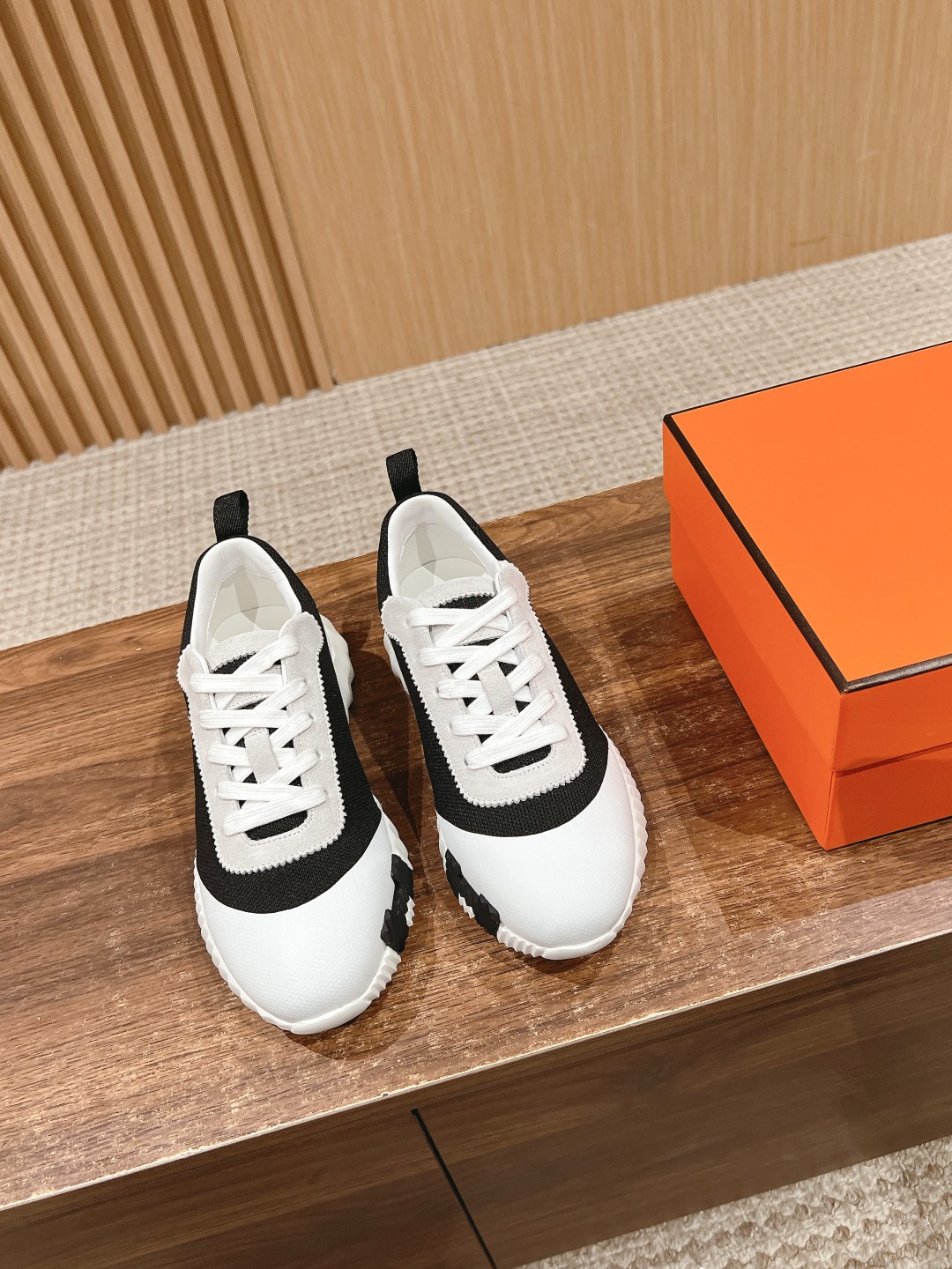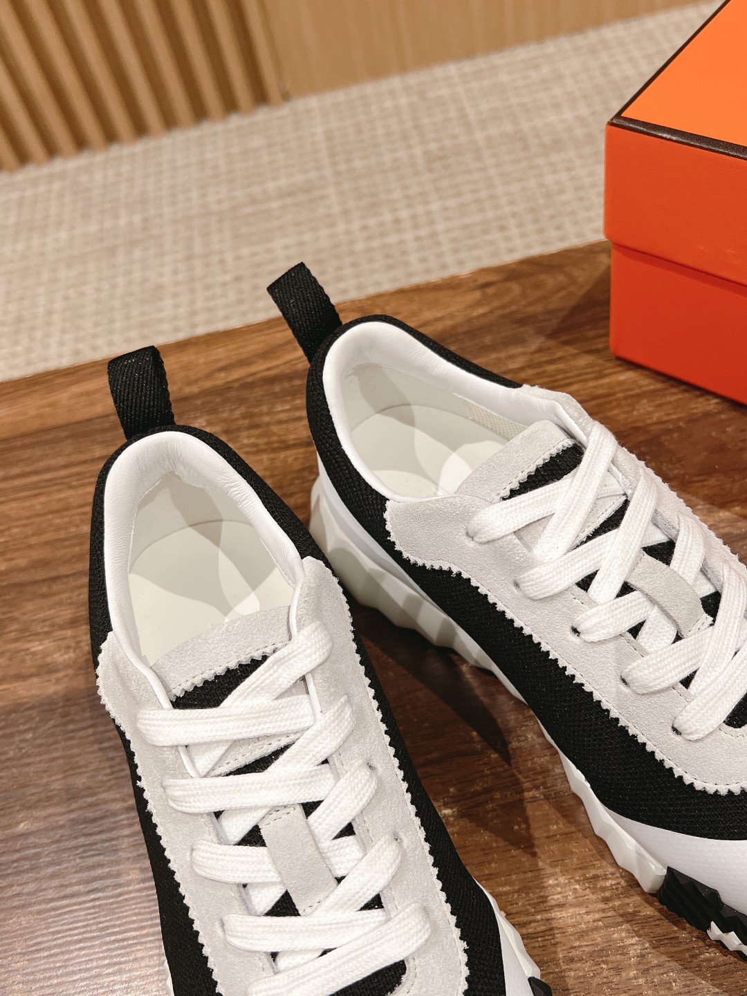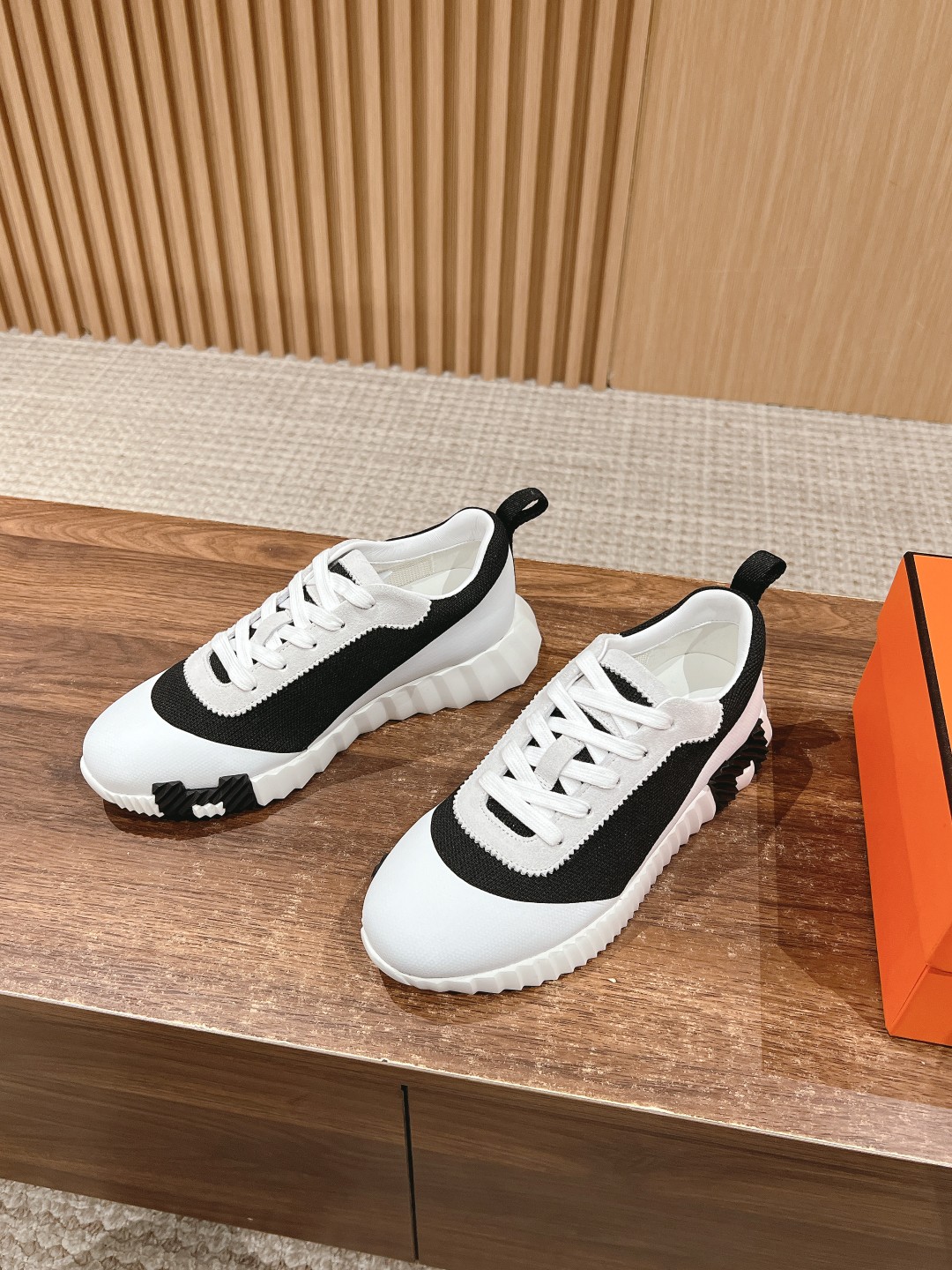 爱马*情侣款休闲鞋 麂皮搭拼接网布运动鞋。