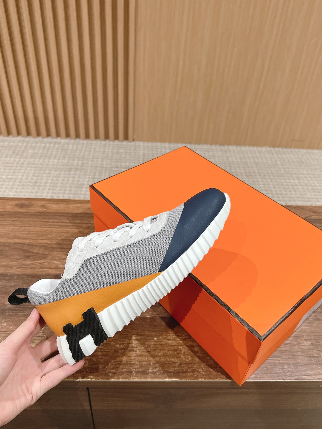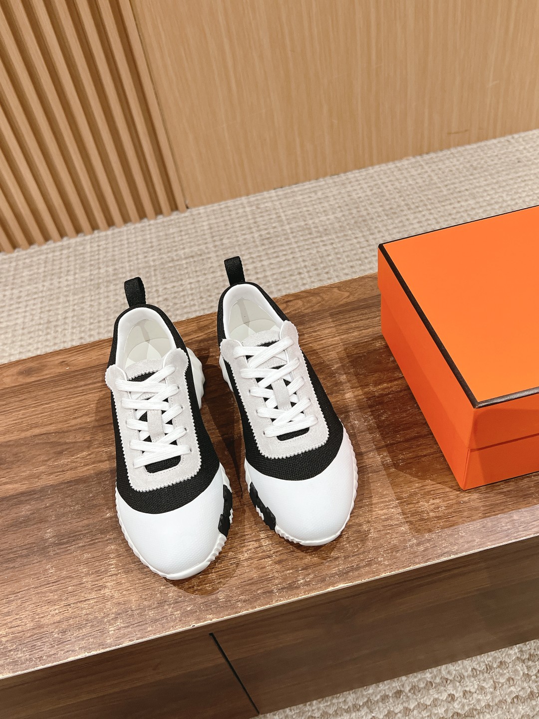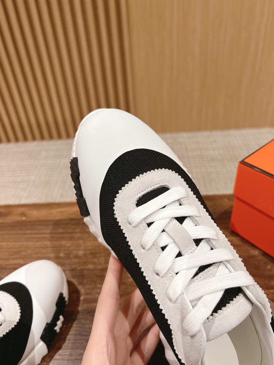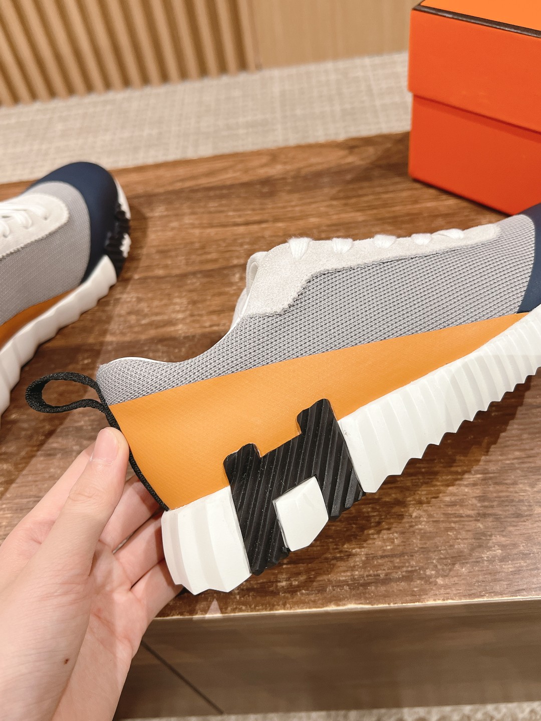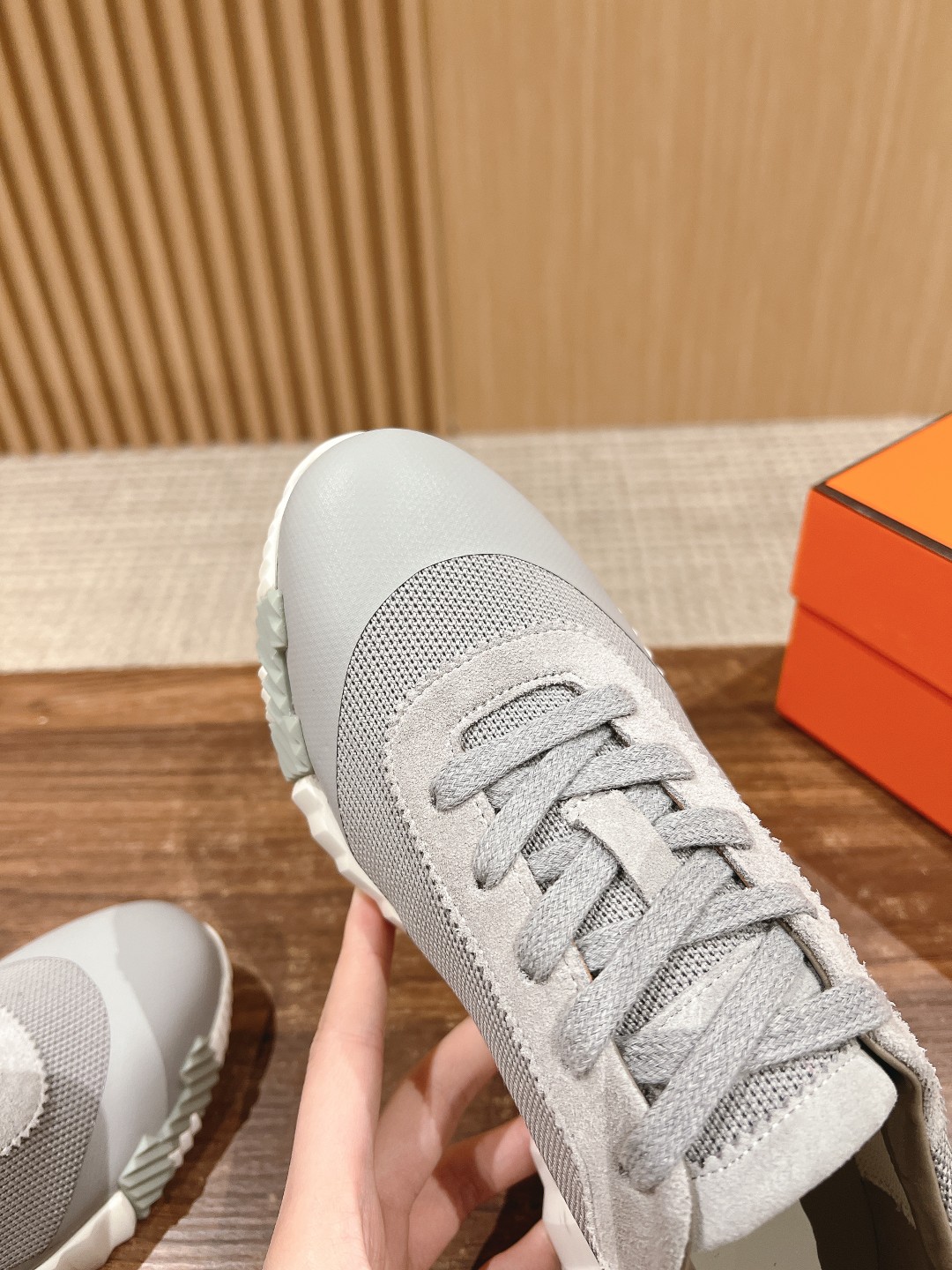 爱马*情侣款休闲鞋 麂皮搭拼接网布运动鞋。