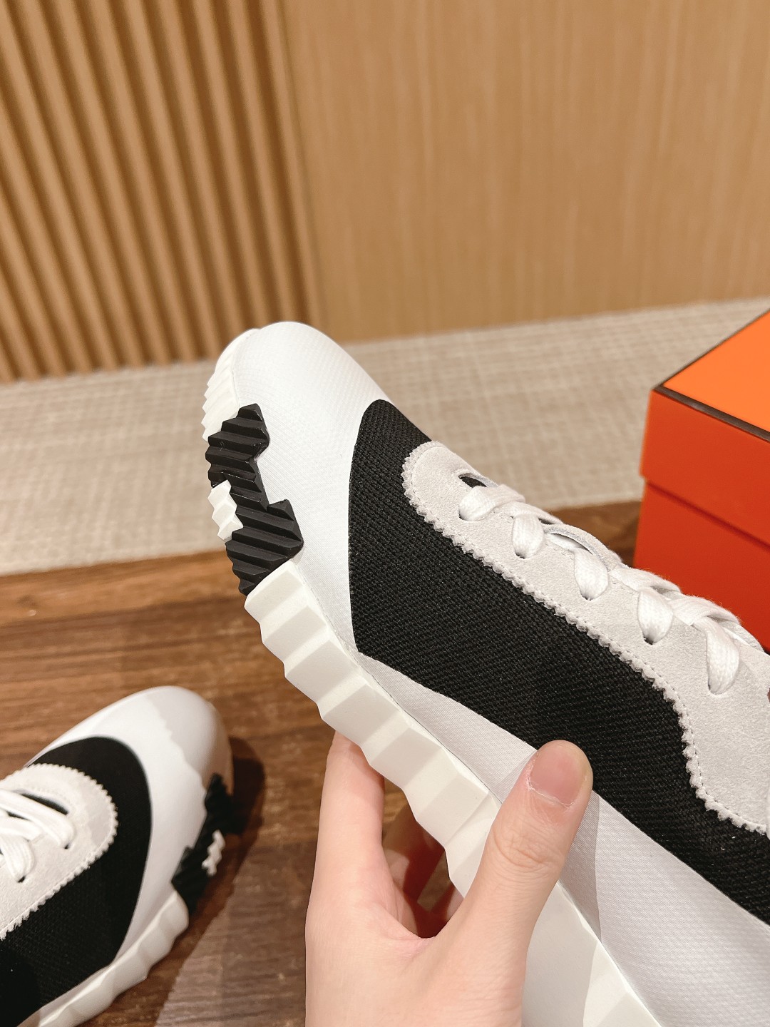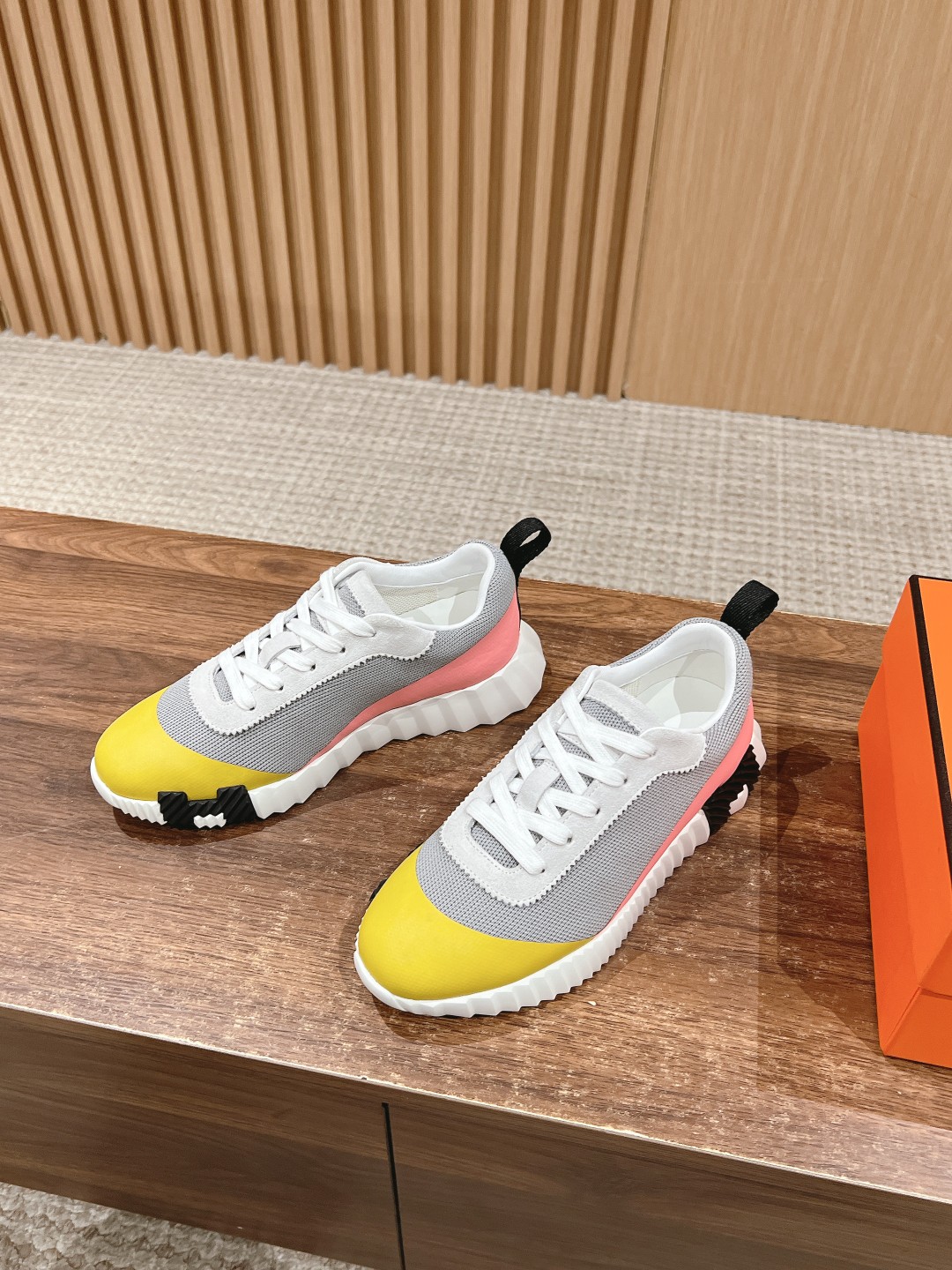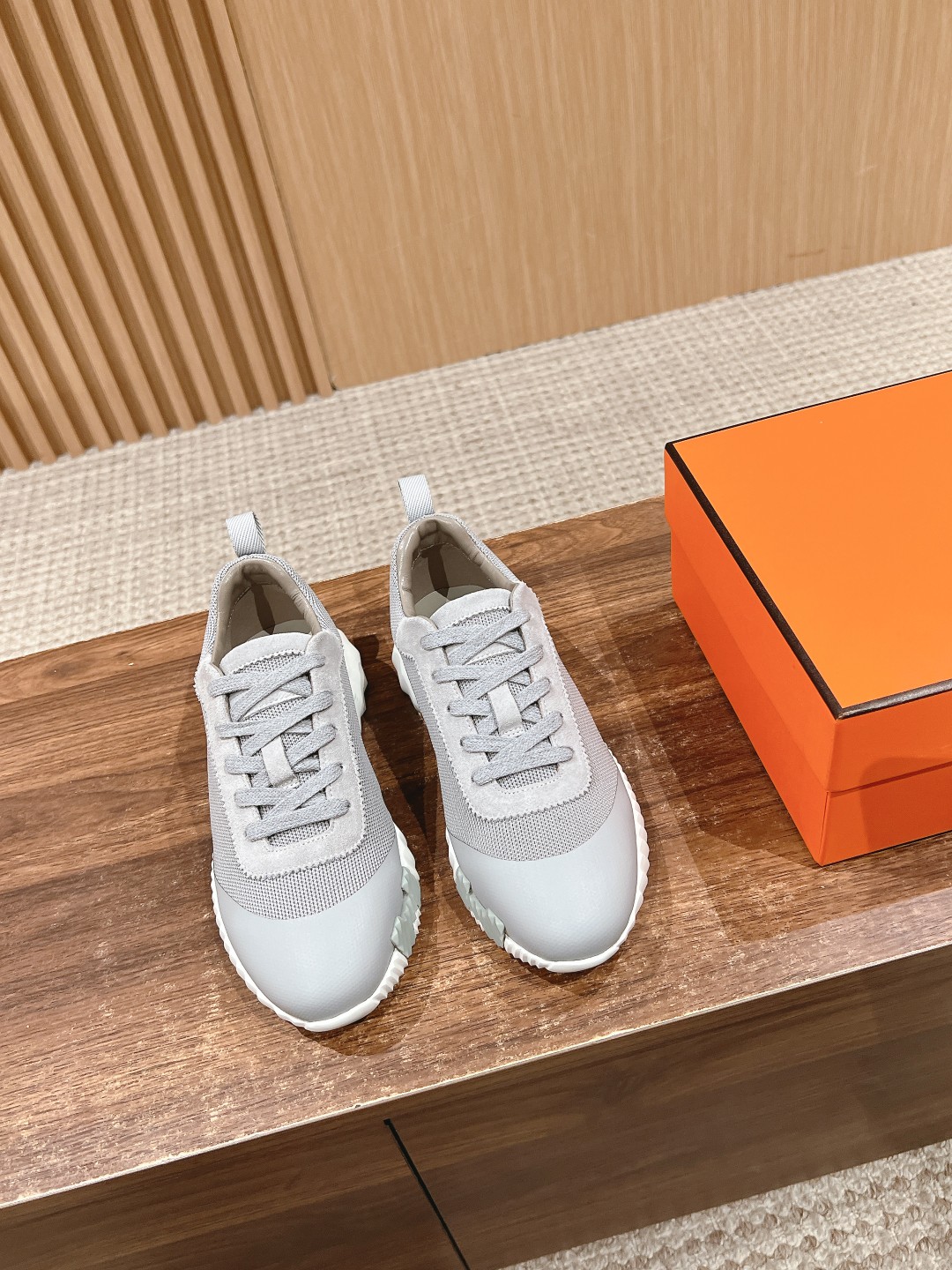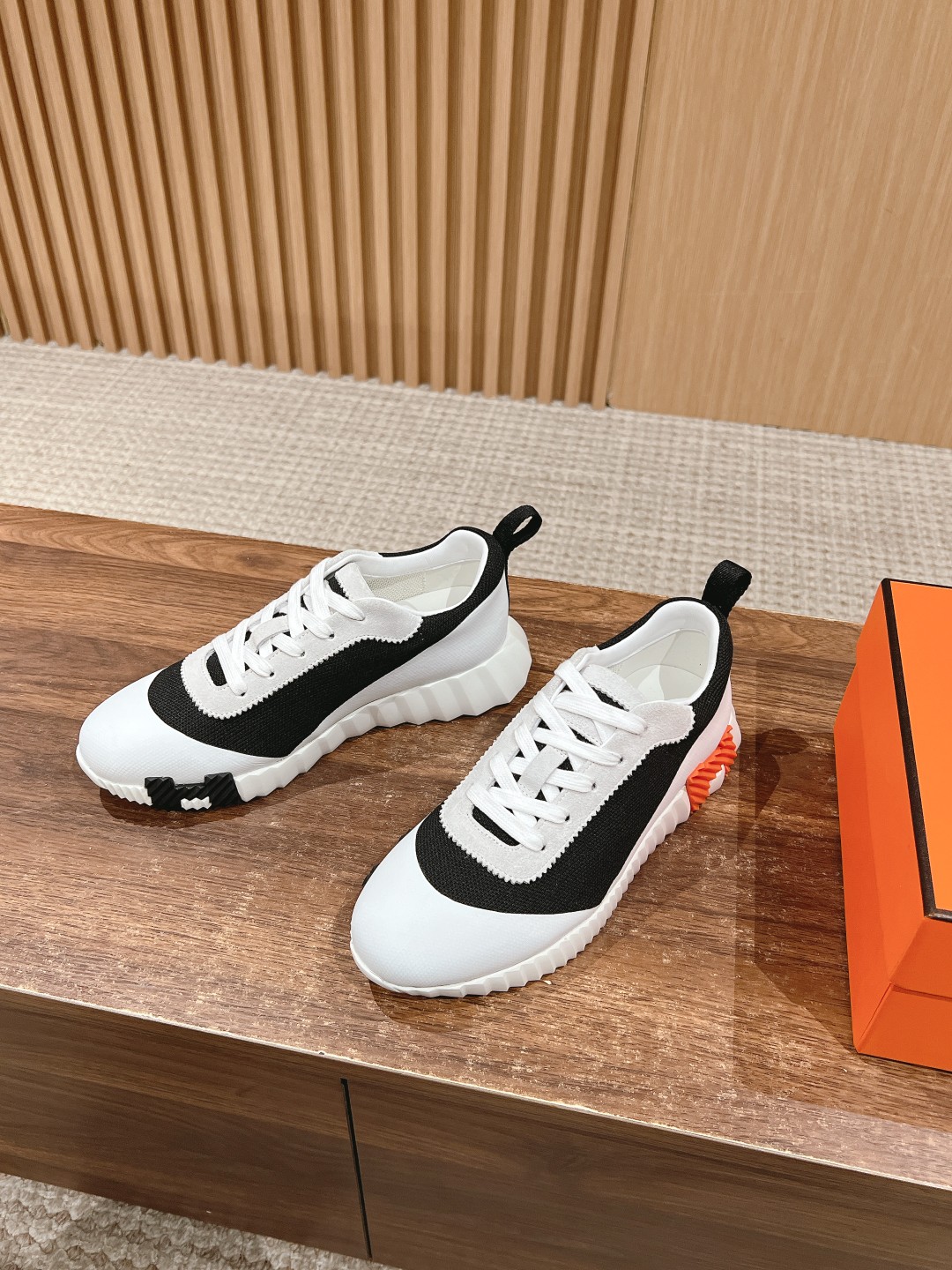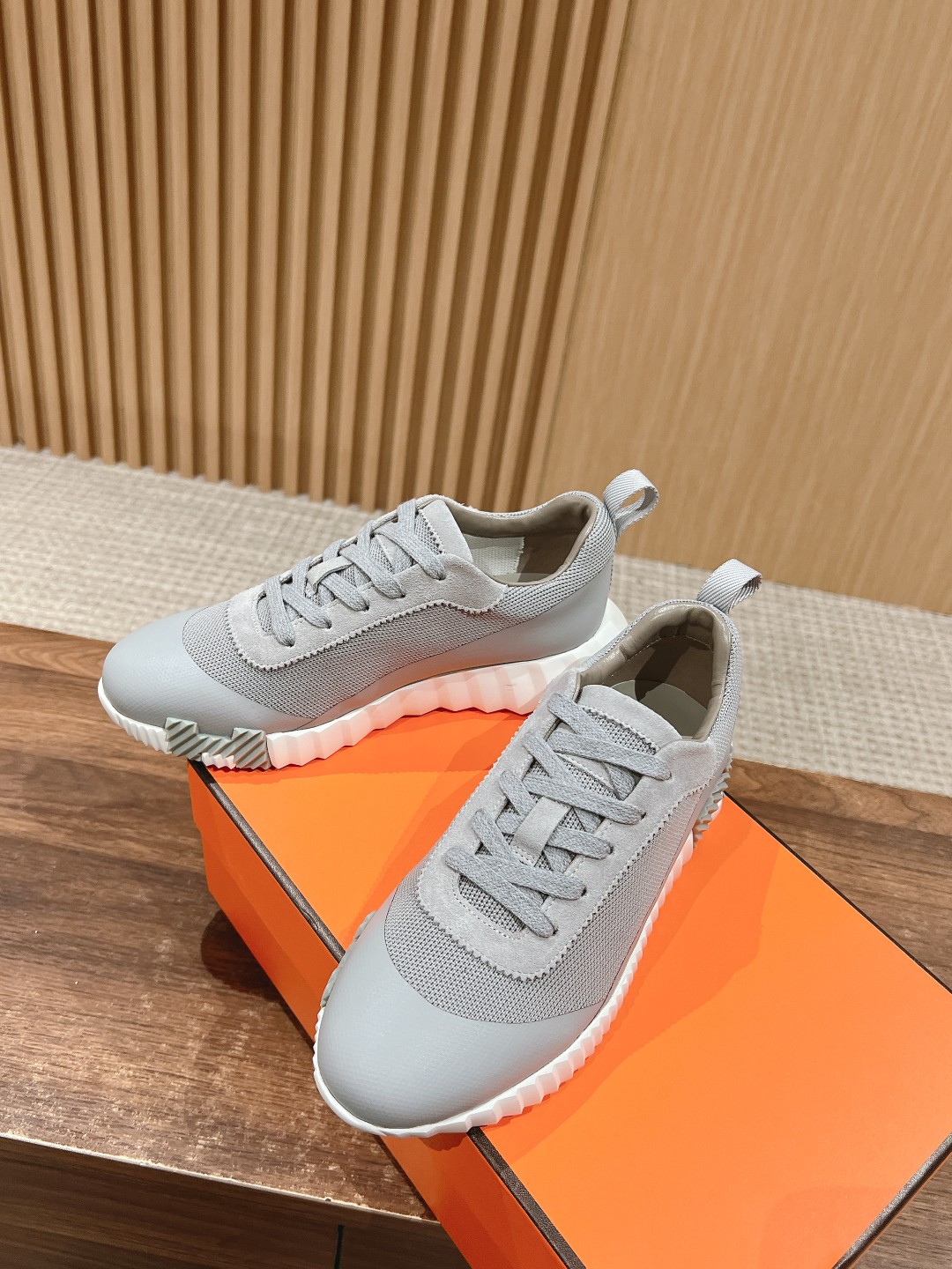 爱马*情侣款休闲鞋 麂皮搭拼接网布运动鞋。