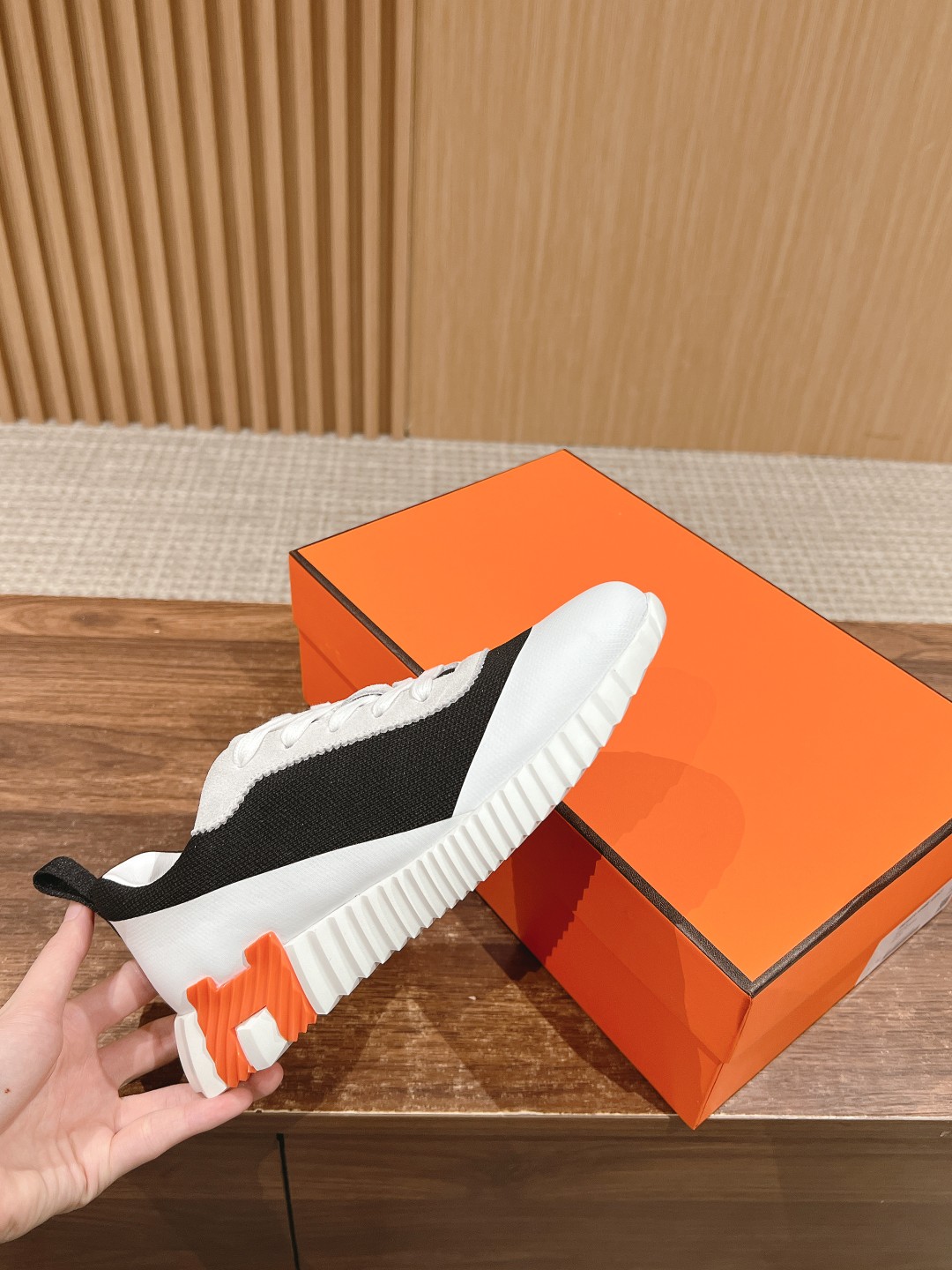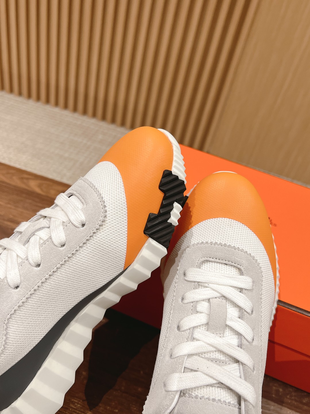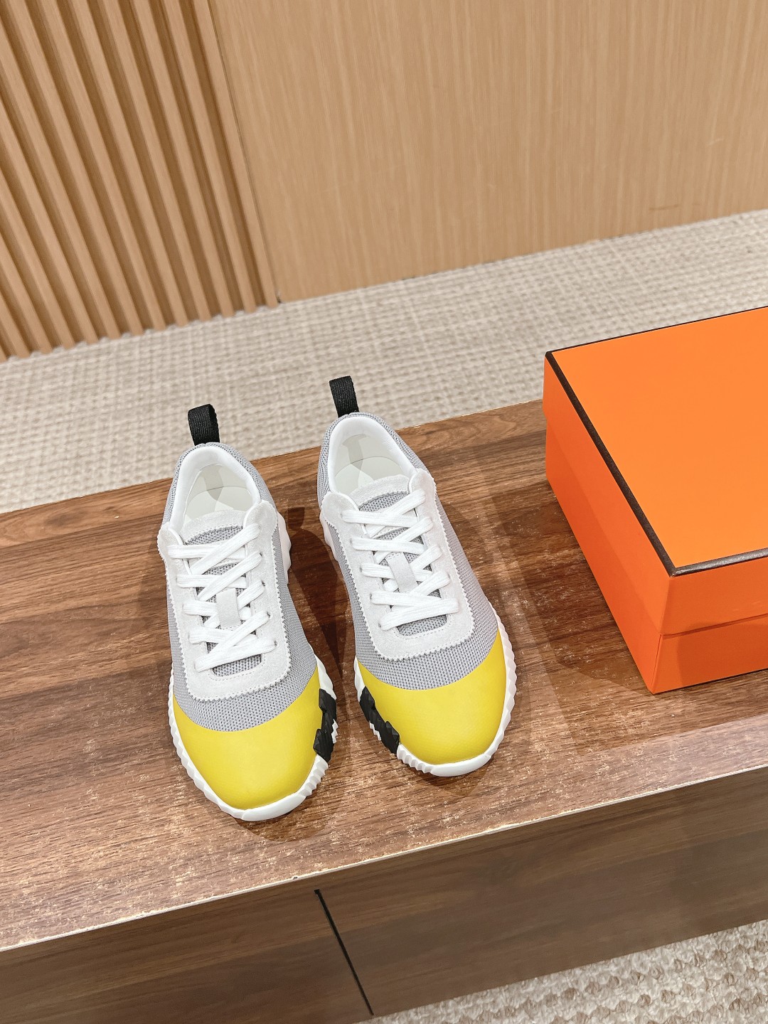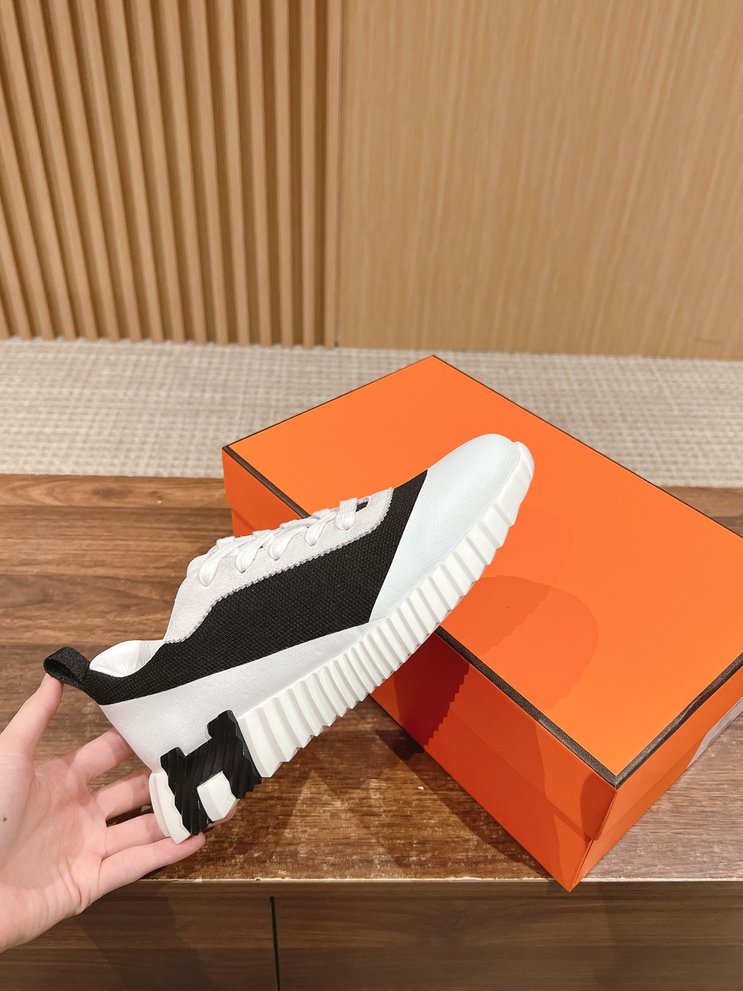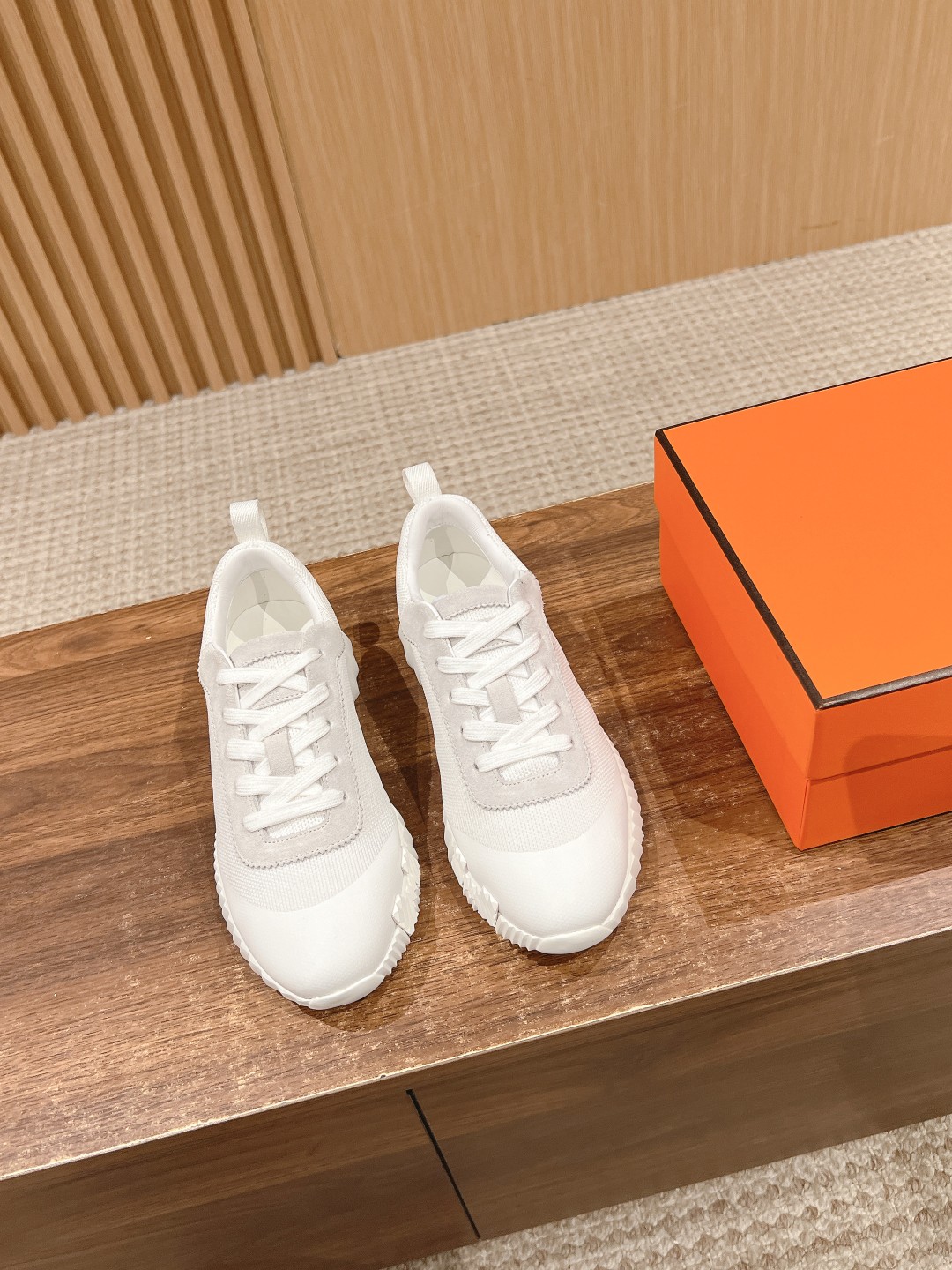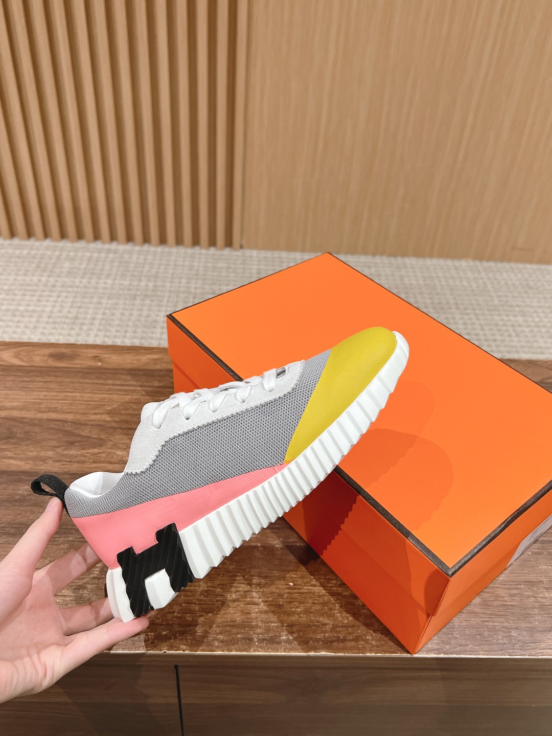 爱马*情侣款休闲鞋 麂皮搭拼接网布运动鞋。