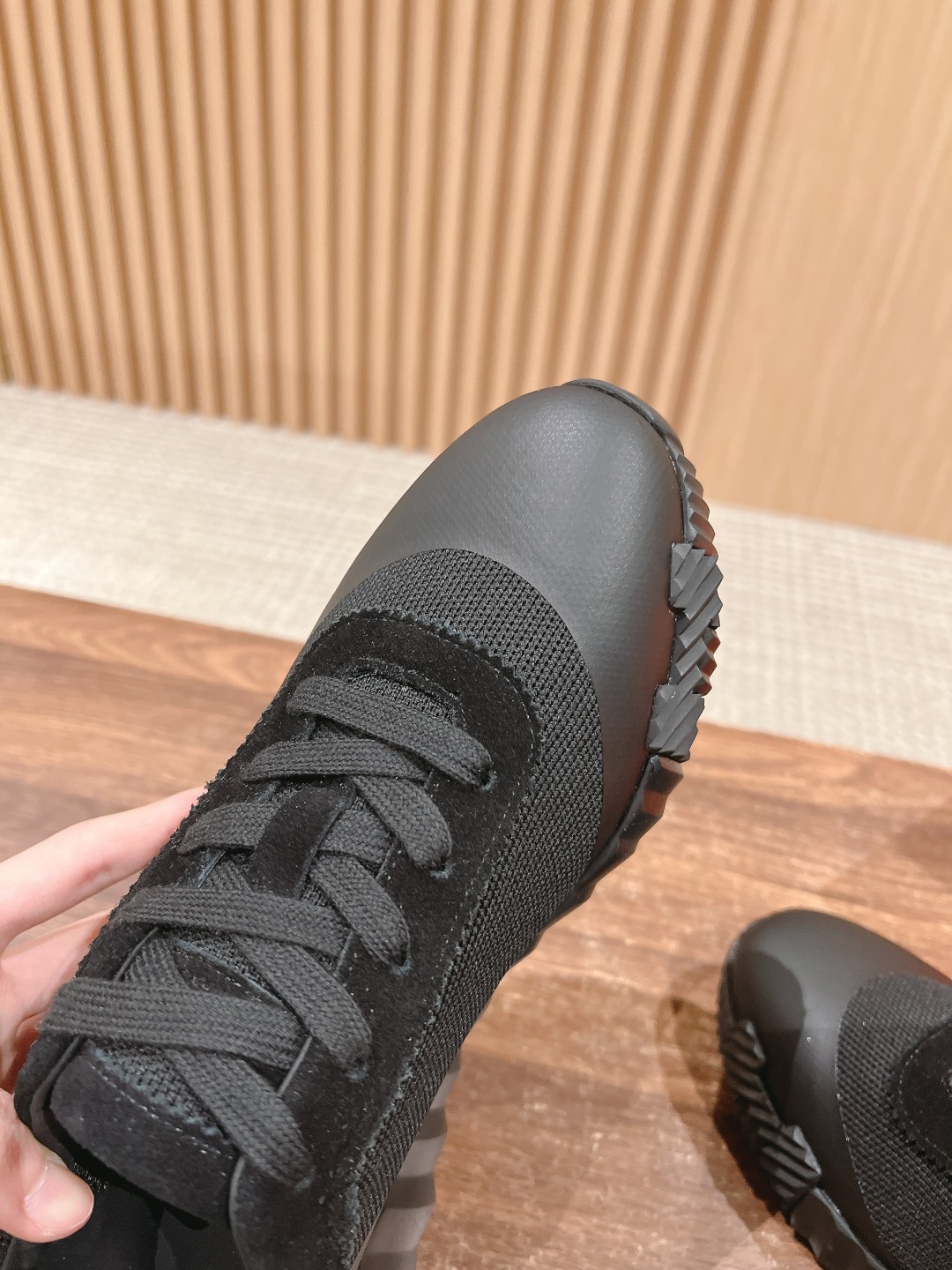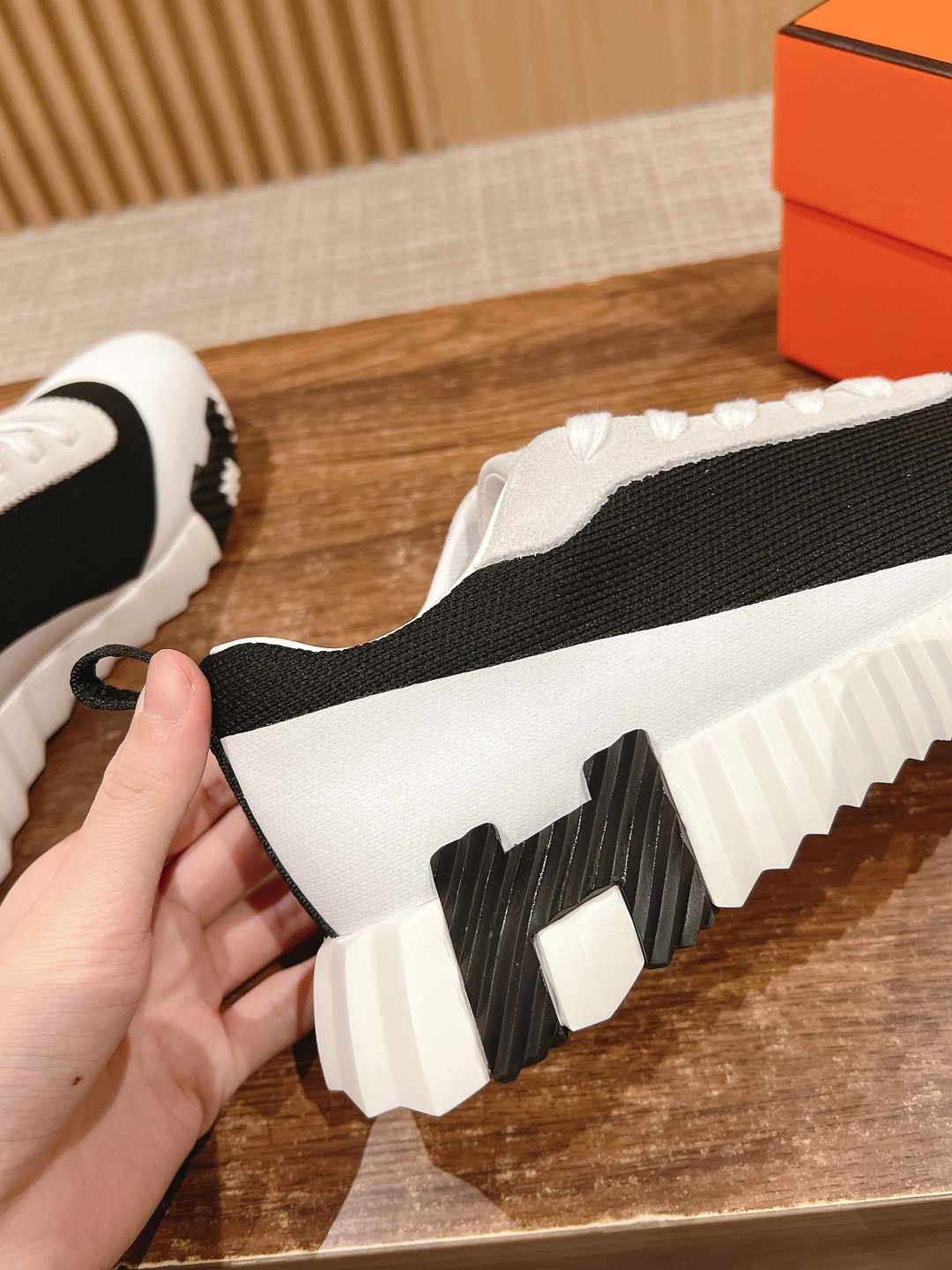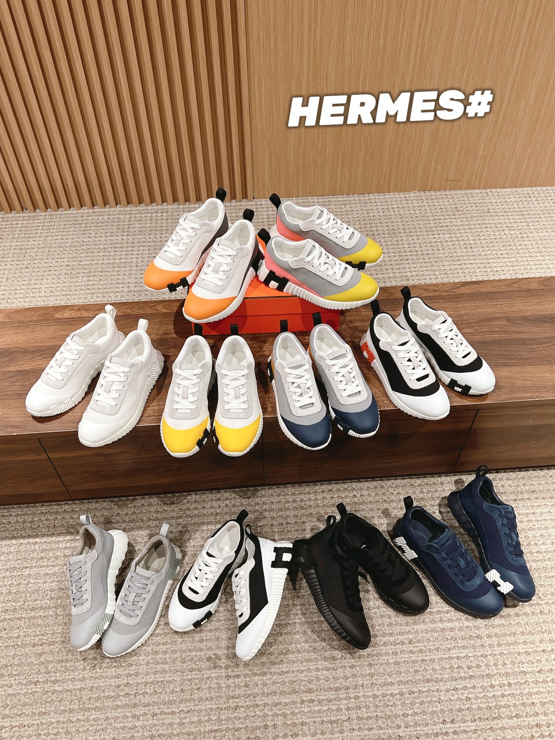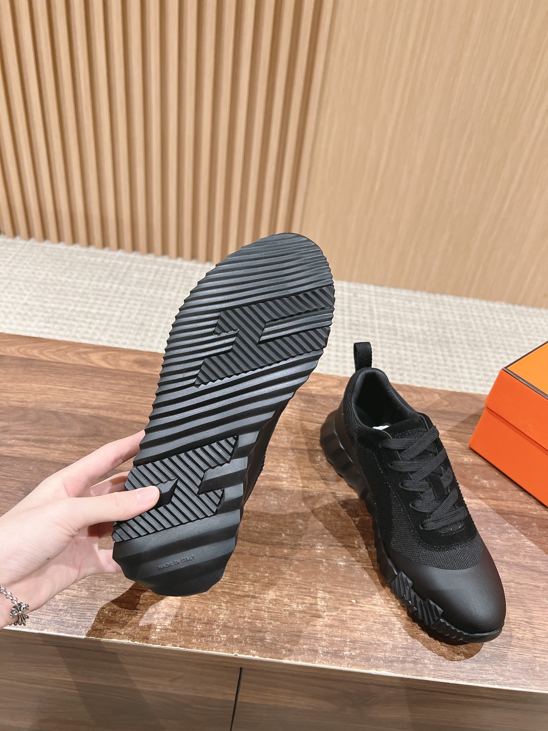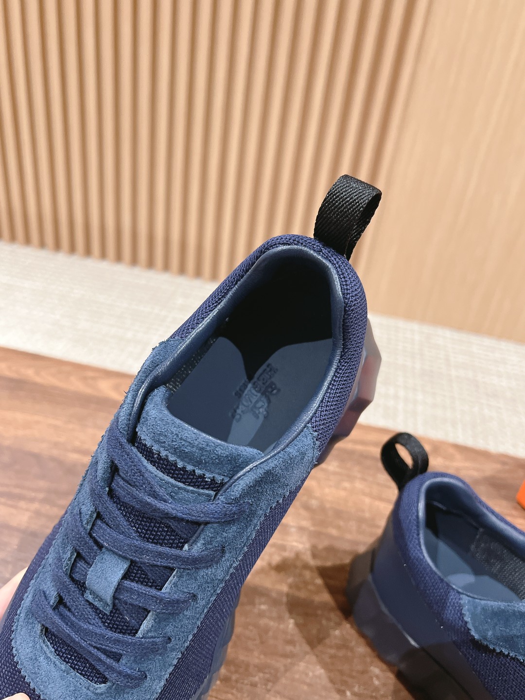 爱马*情侣款休闲鞋 麂皮搭拼接网布运动鞋。