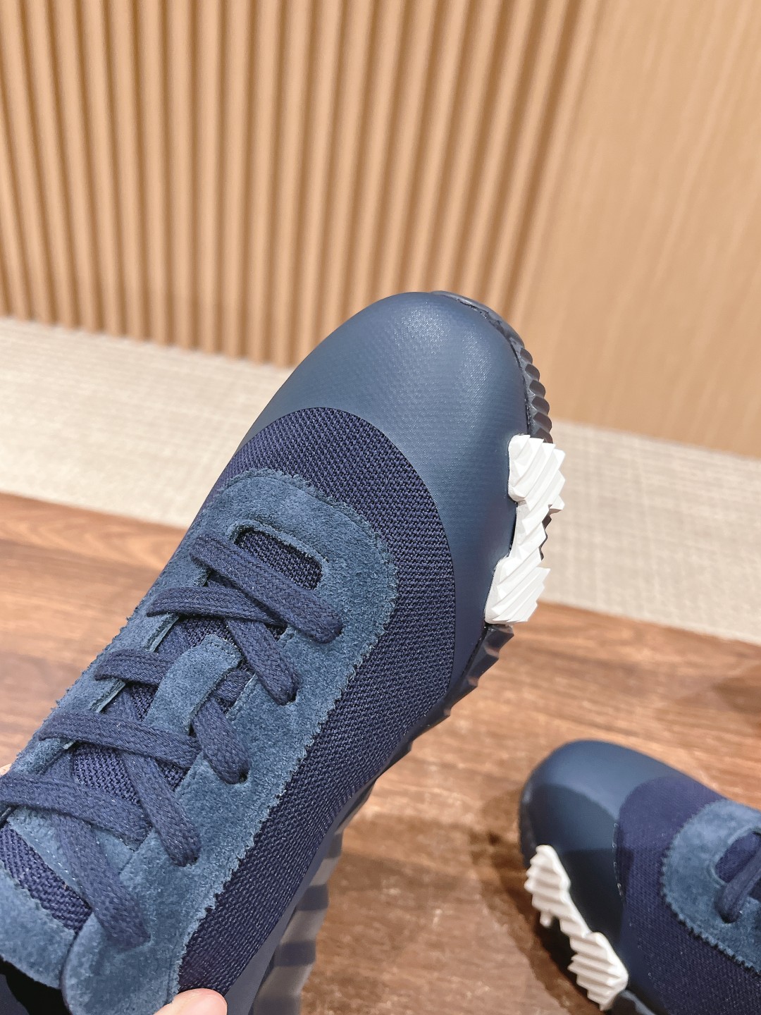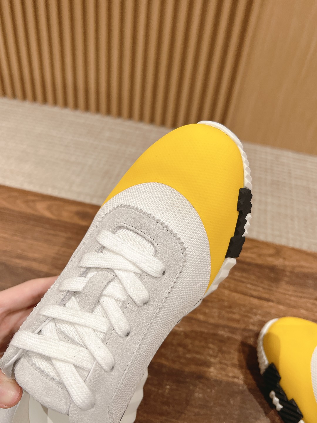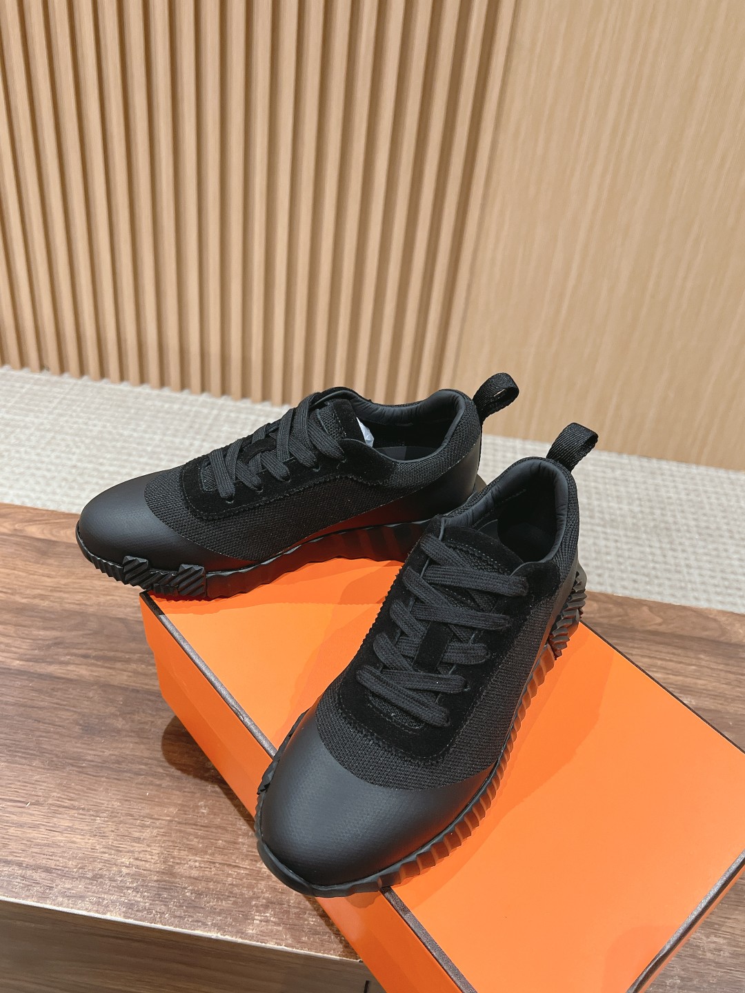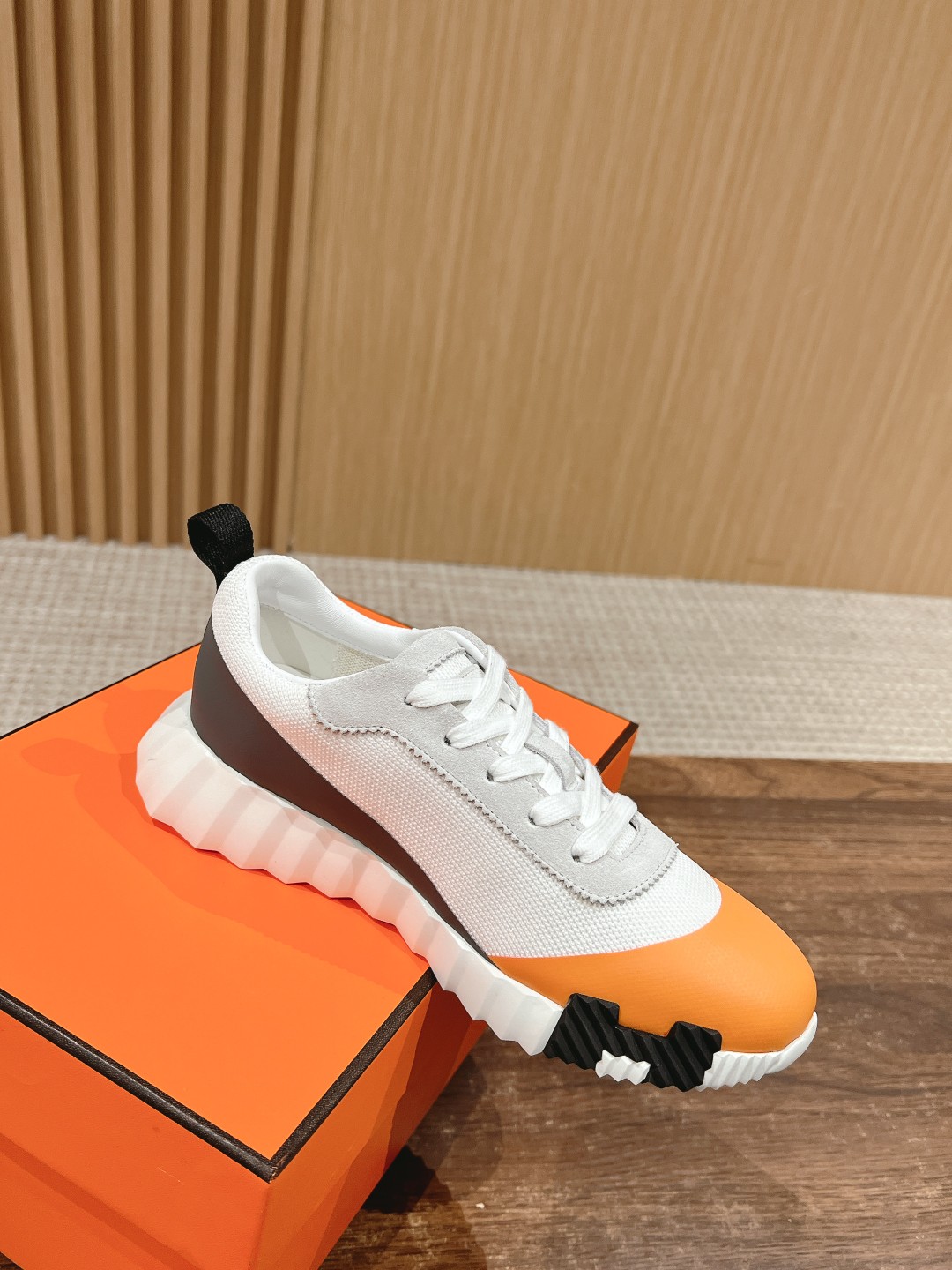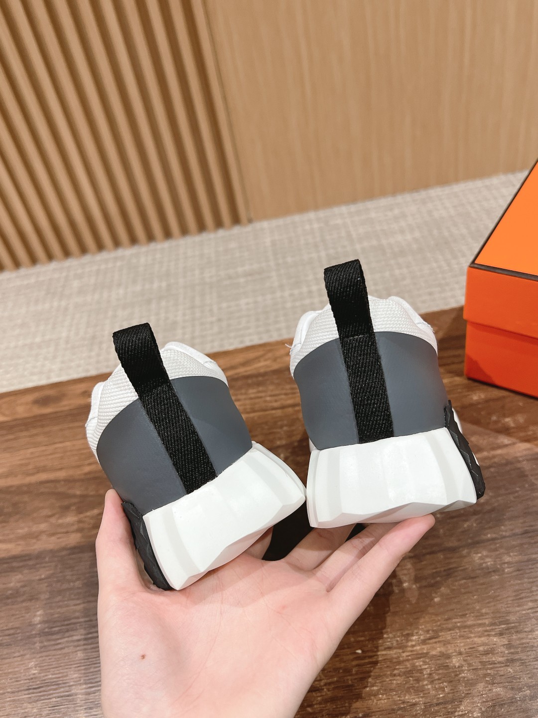 爱马*情侣款休闲鞋 麂皮搭拼接网布运动鞋。