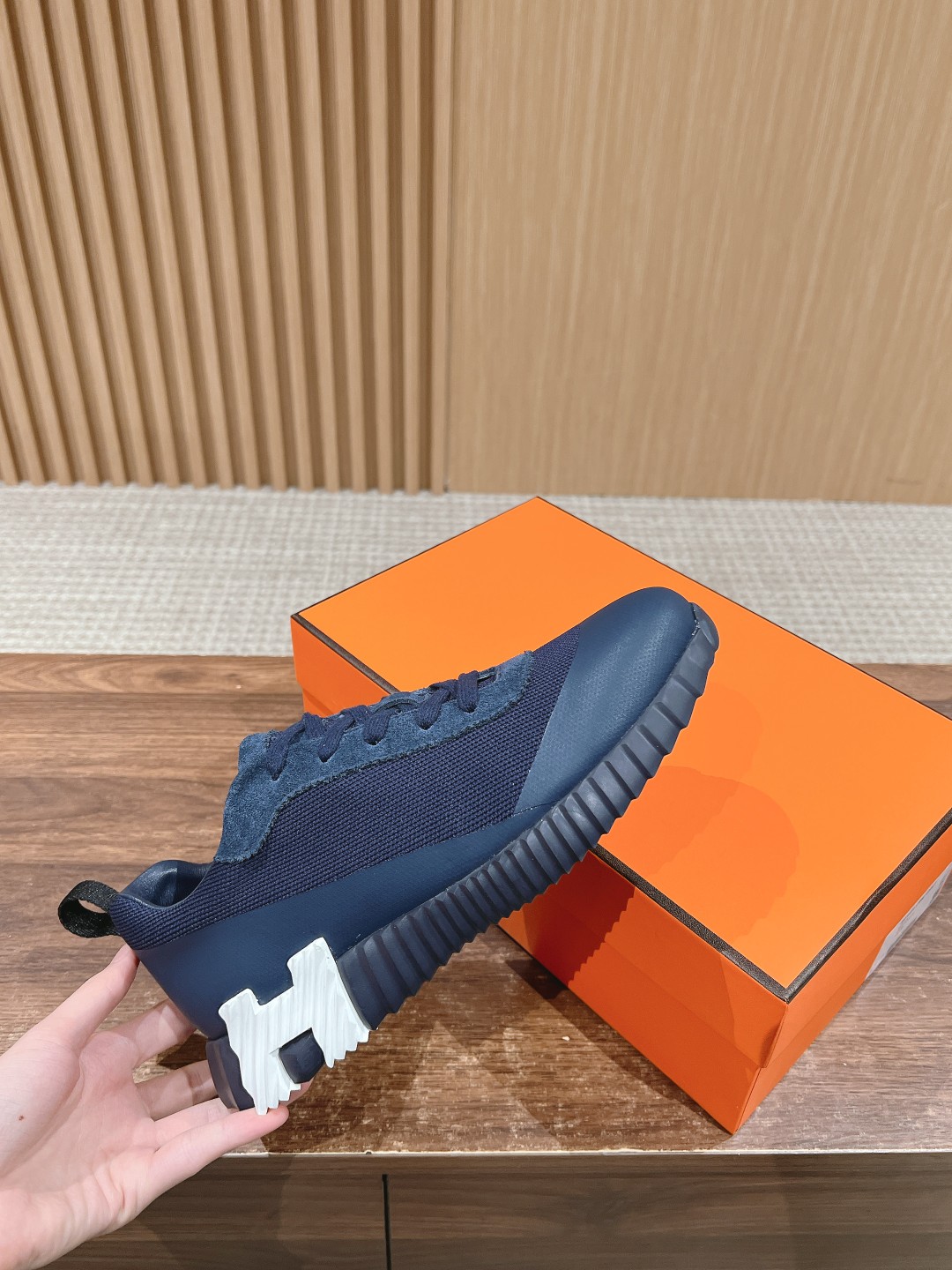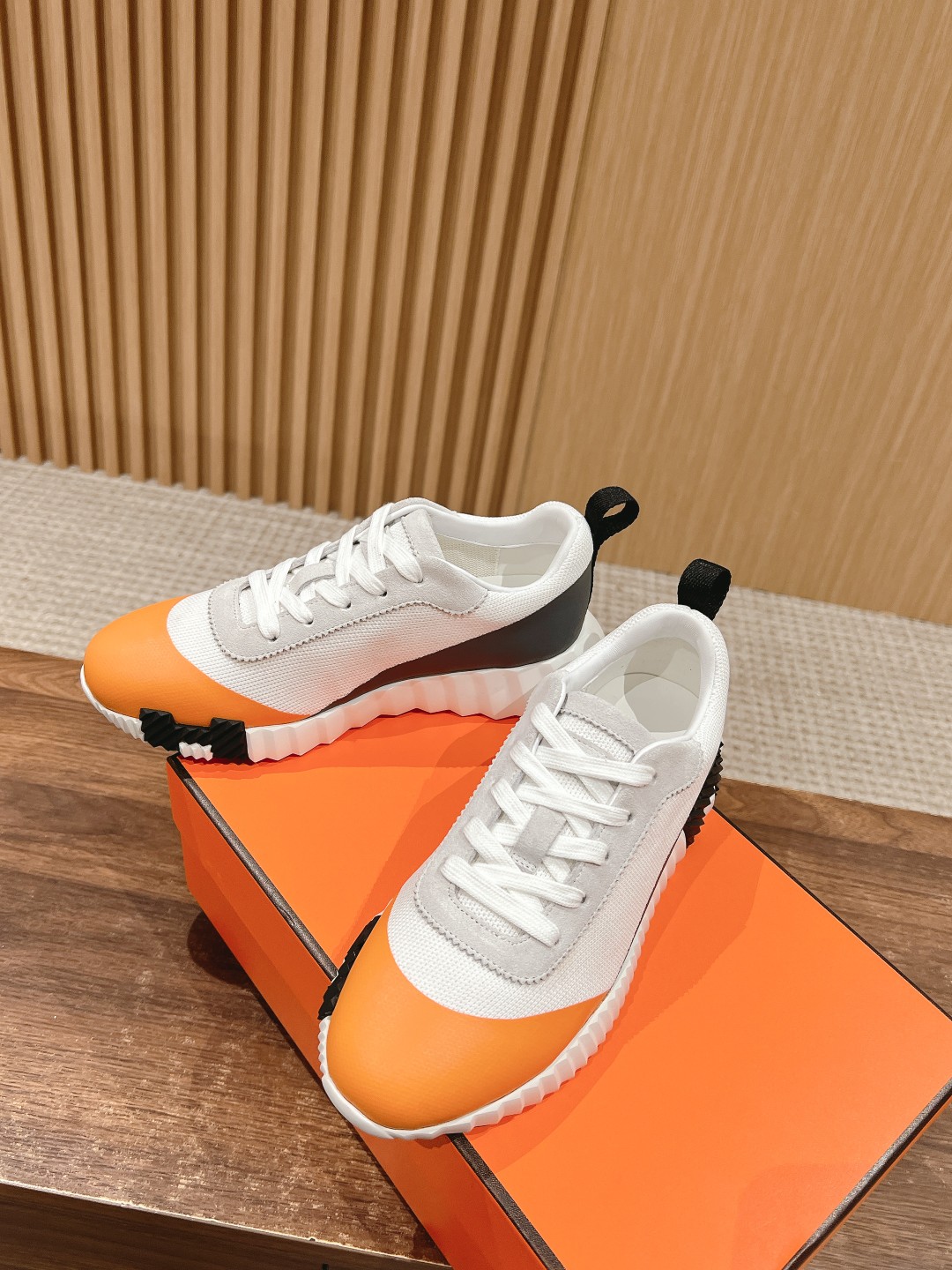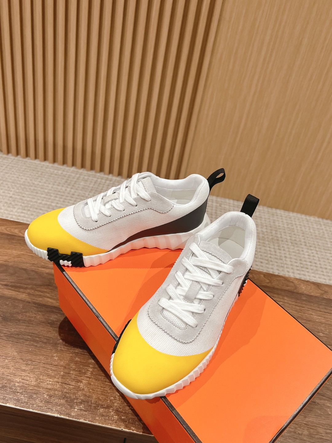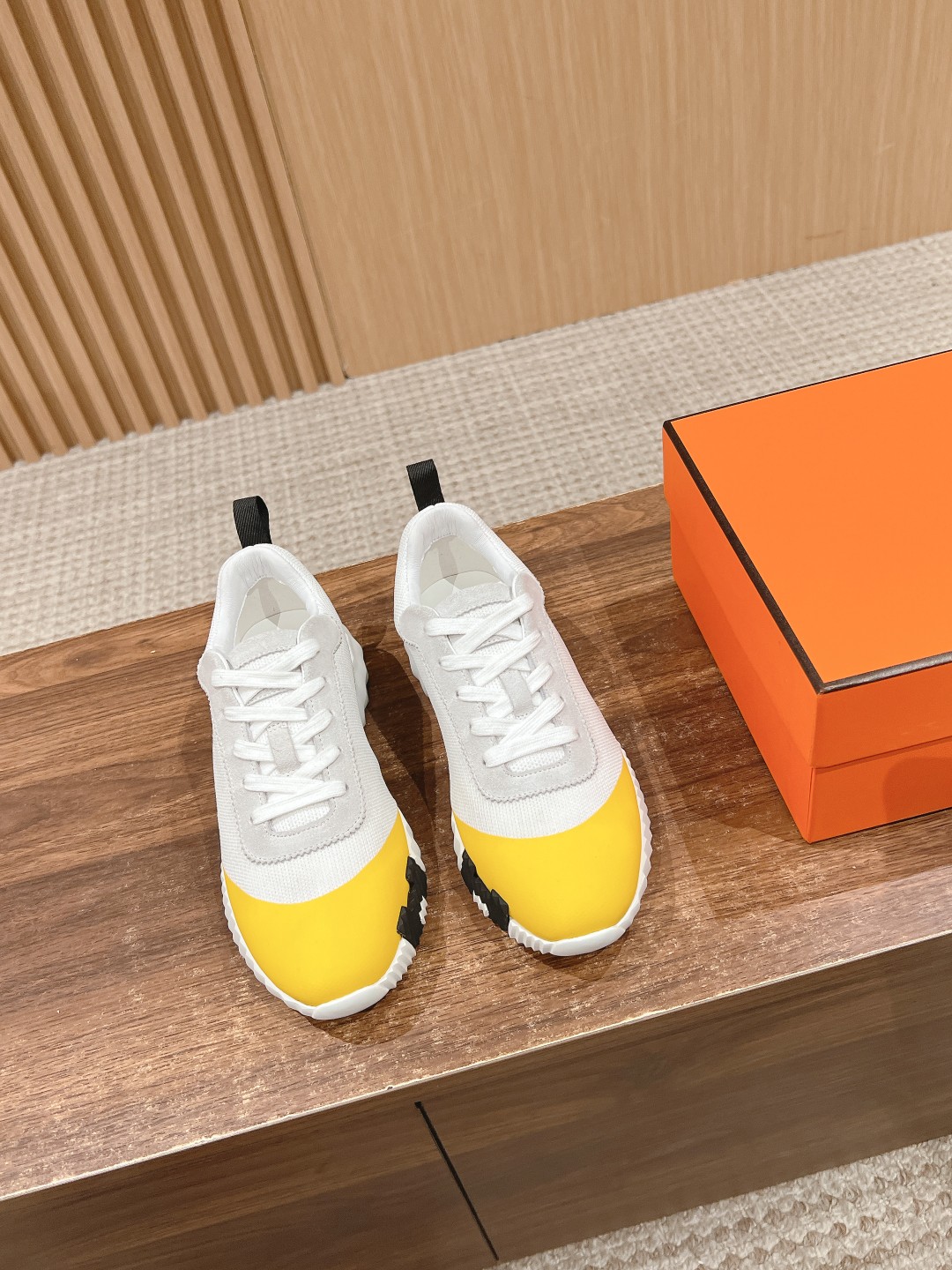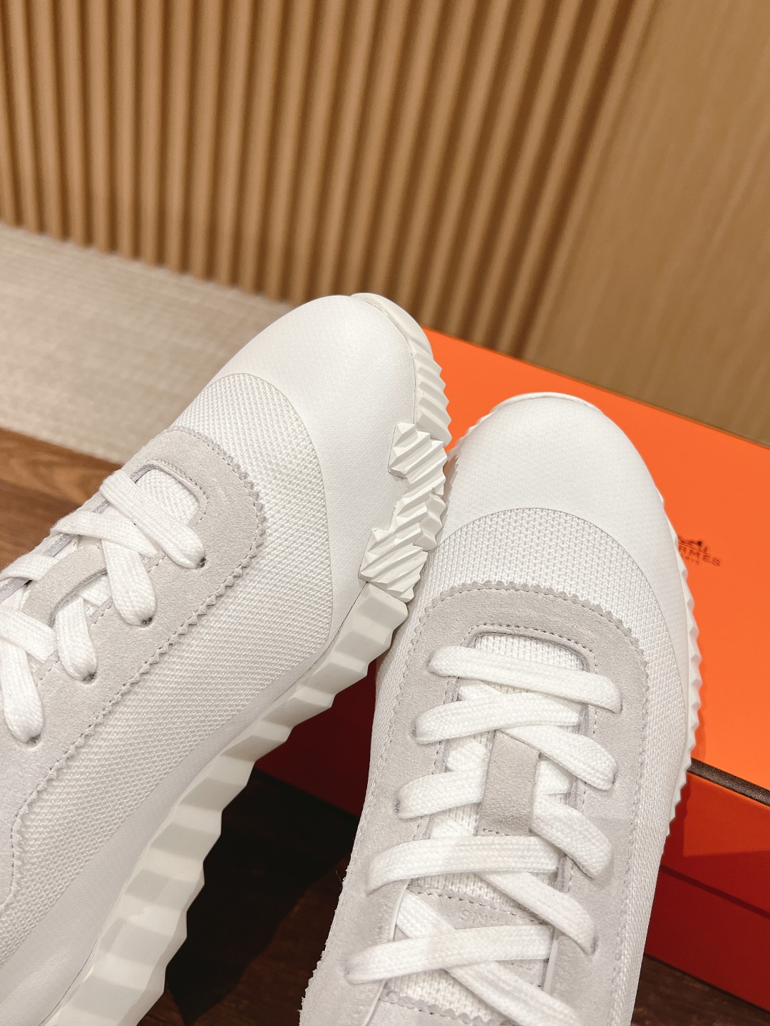 爱马*情侣款休闲鞋 麂皮搭拼接网布运动鞋。