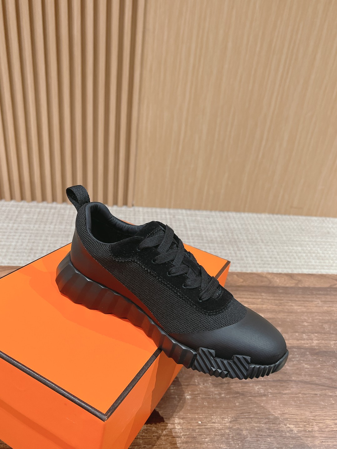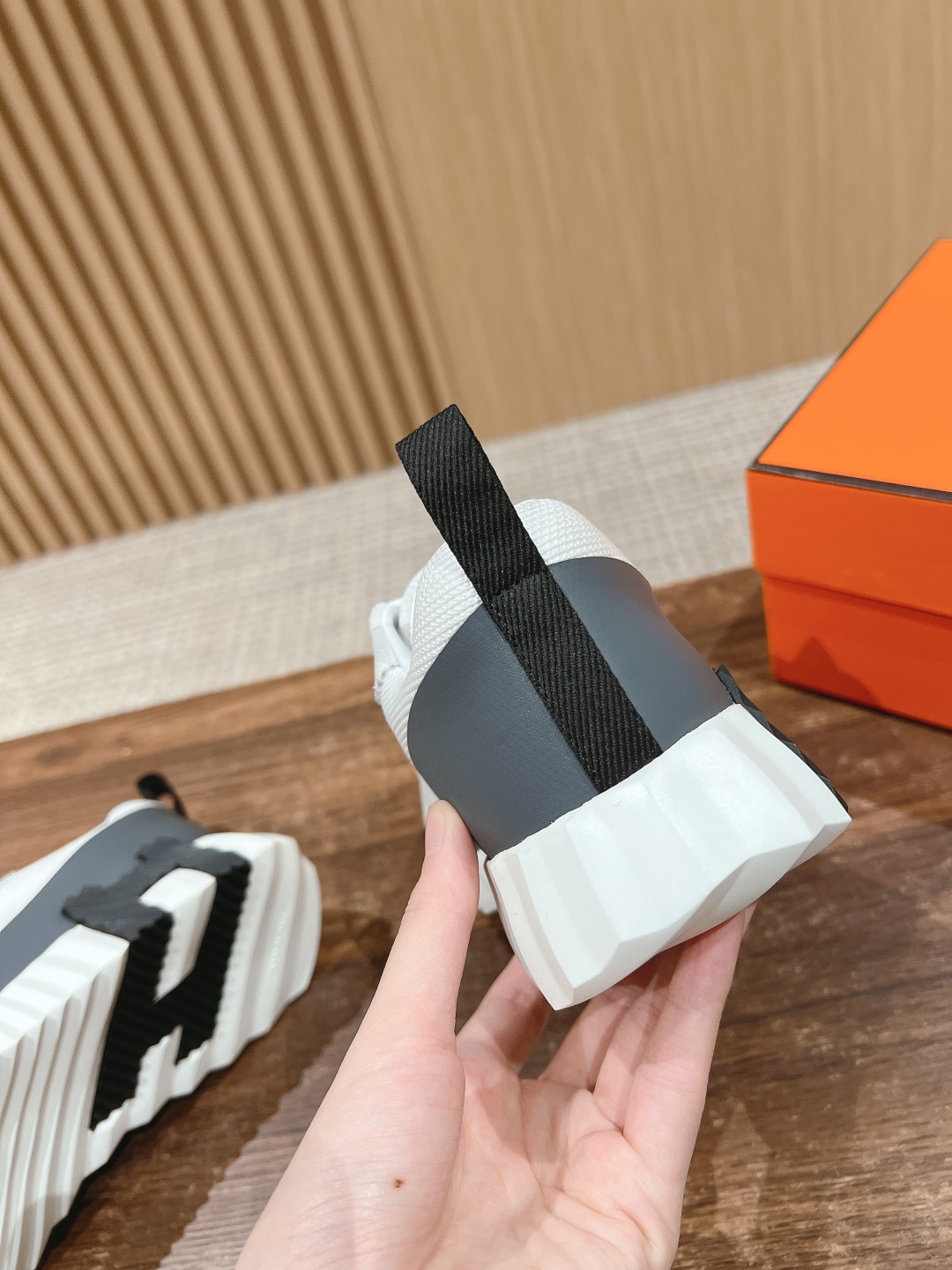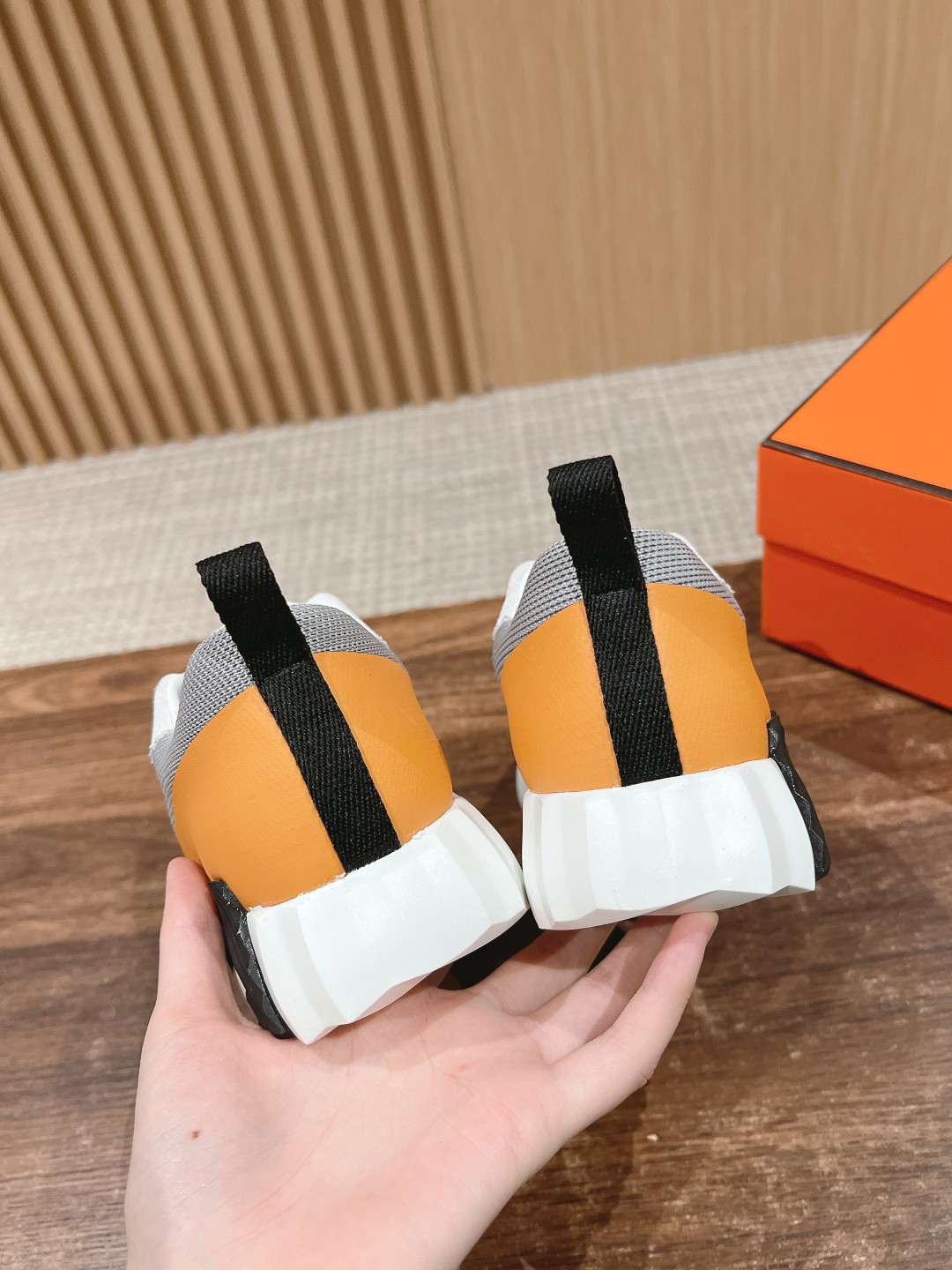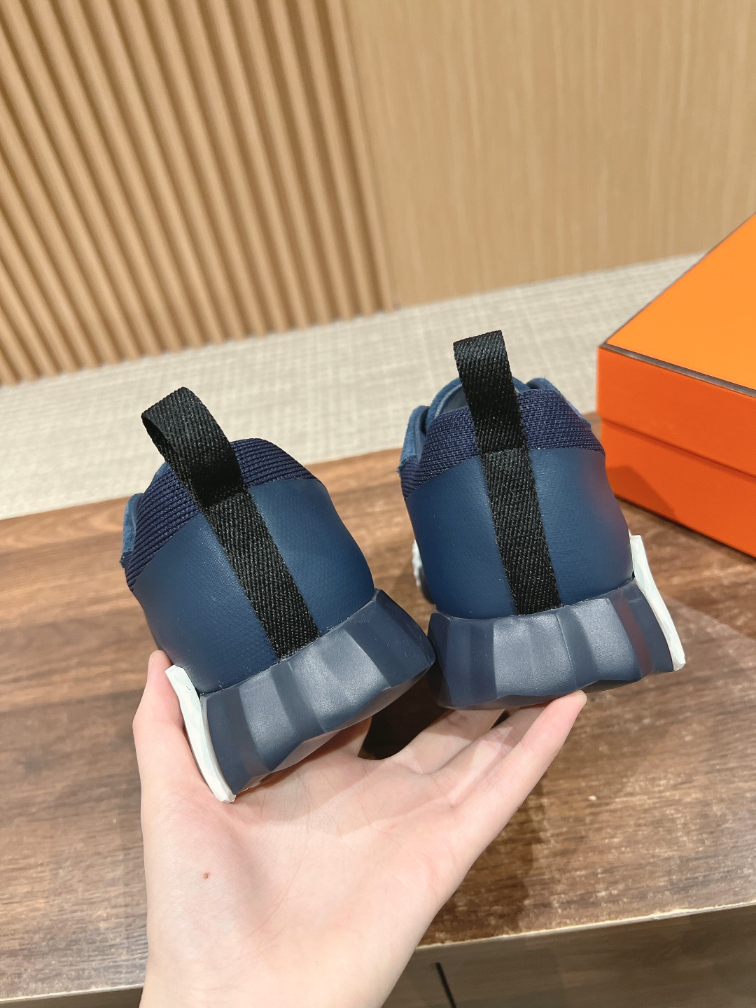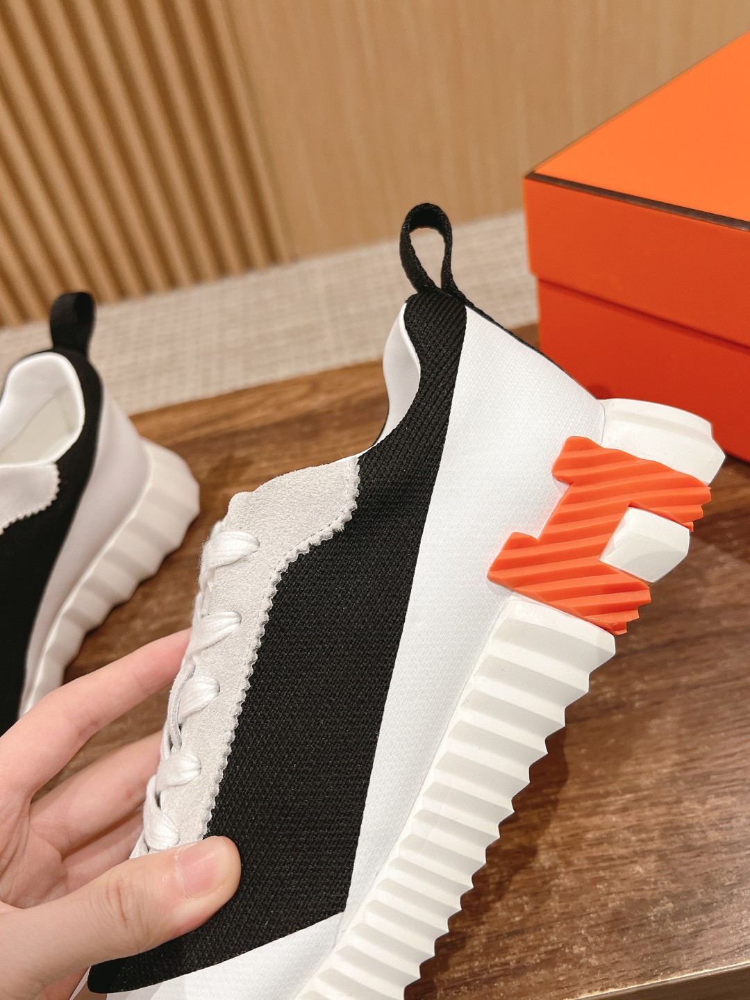 爱马*情侣款休闲鞋 麂皮搭拼接网布运动鞋。