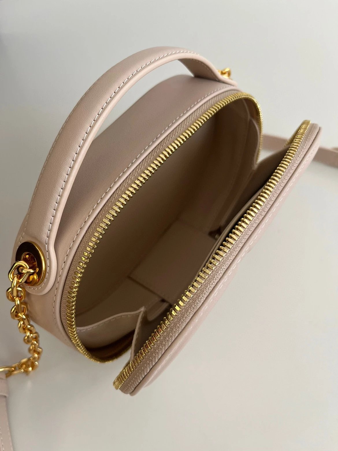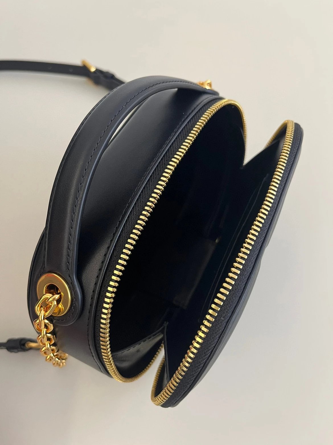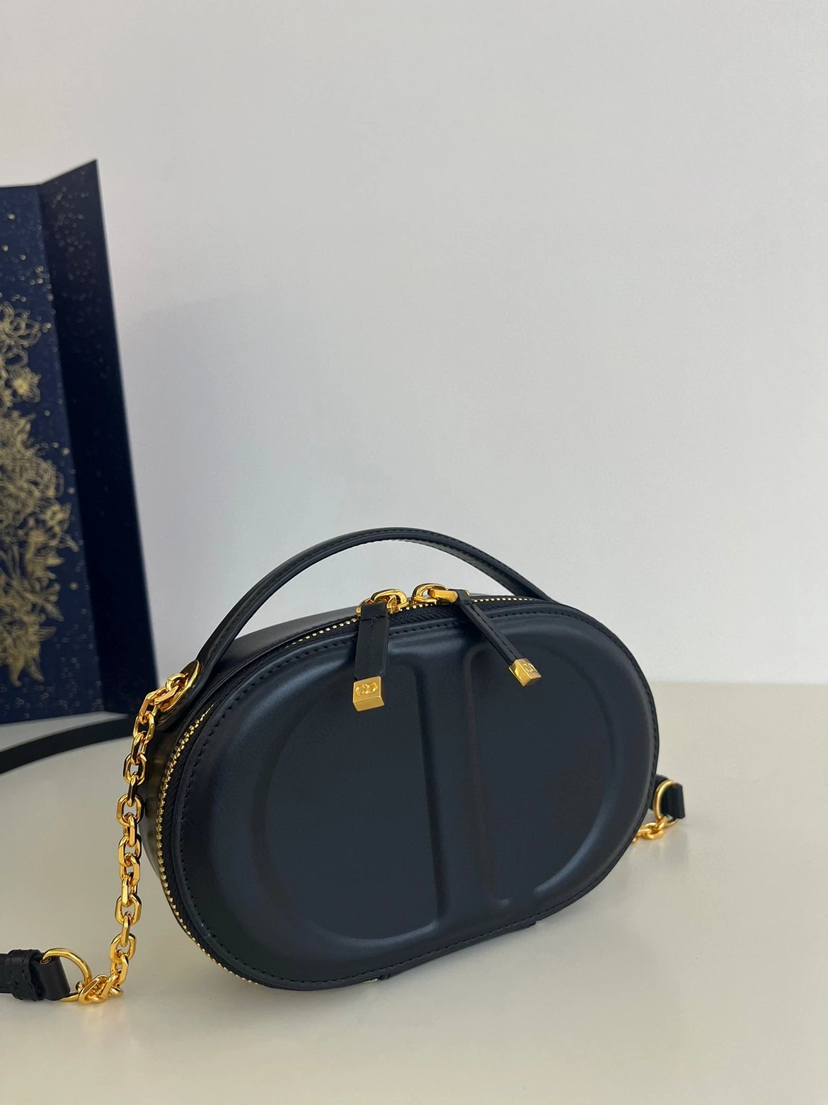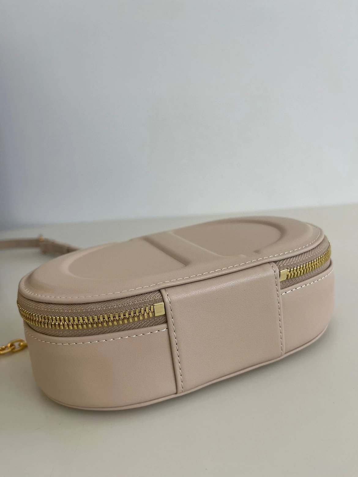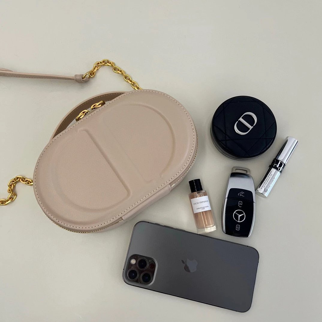 迪家|Signature系猪鼻子椭圆相机包|w Signature系列椭圆相机包,采用牛皮革精心制作,别具一格的字母压花标志,精湛的工艺,宽敞的隔层设计,搭配皮革顶部手柄和可调节、可拆卸的链条肩带,可手提、肩背或斜挎,是日常出行单品 size:18*6.5*11cm 全套包装