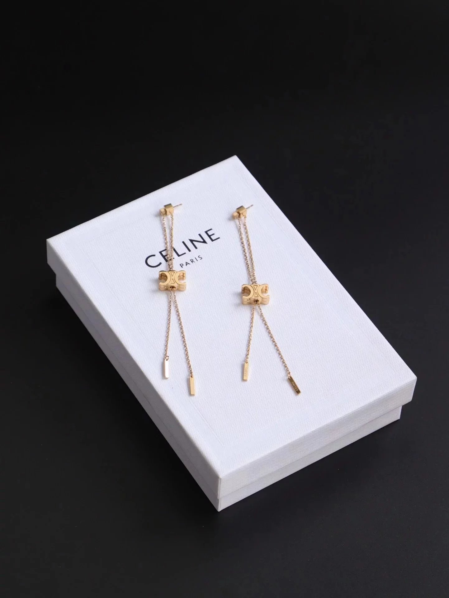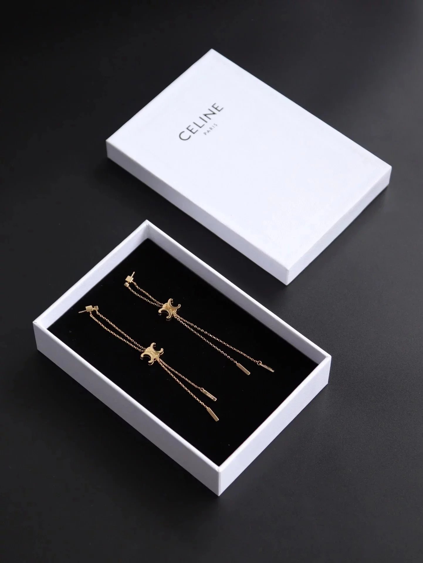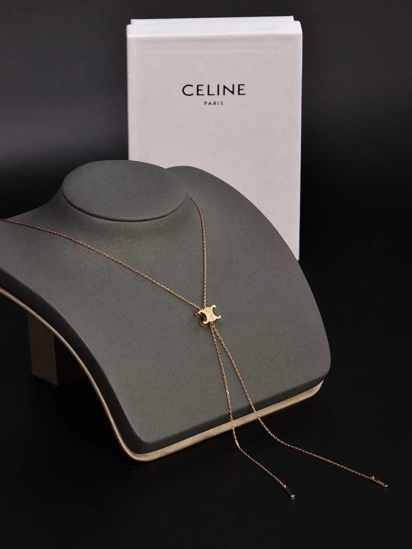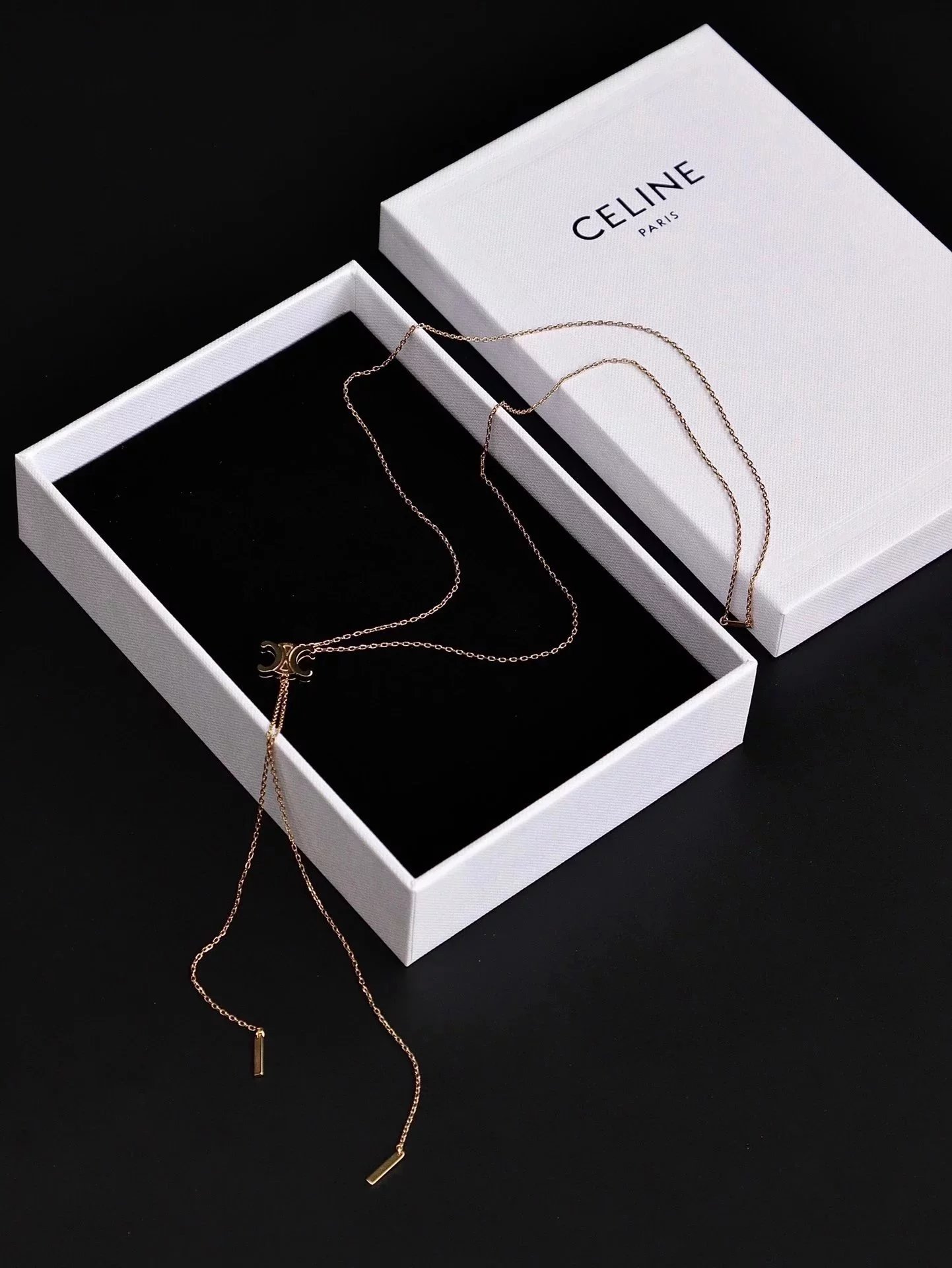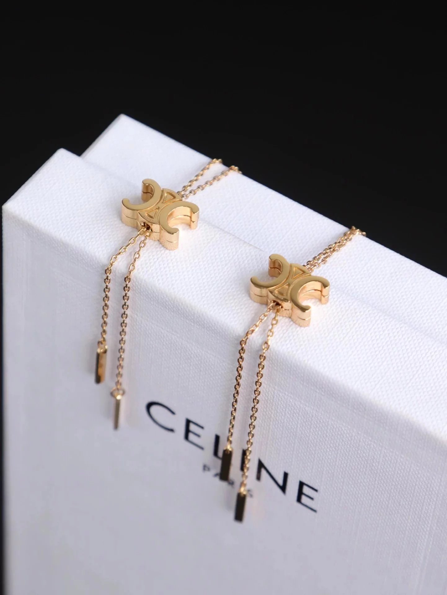 Celin*e赛琳 2022 *凯旋门系列,耳环+项链,搭配细长链条的悬落感,十分新颖又好看! SP(SJ)